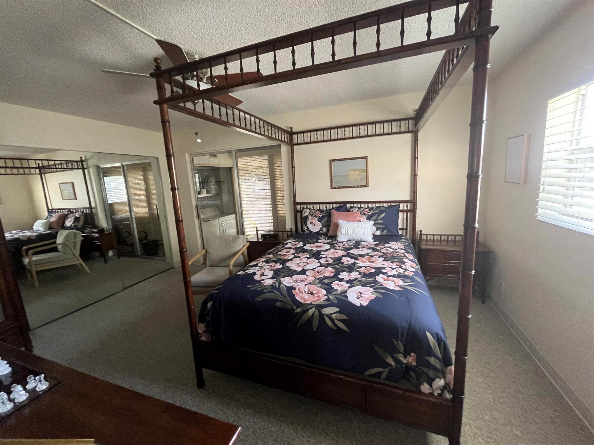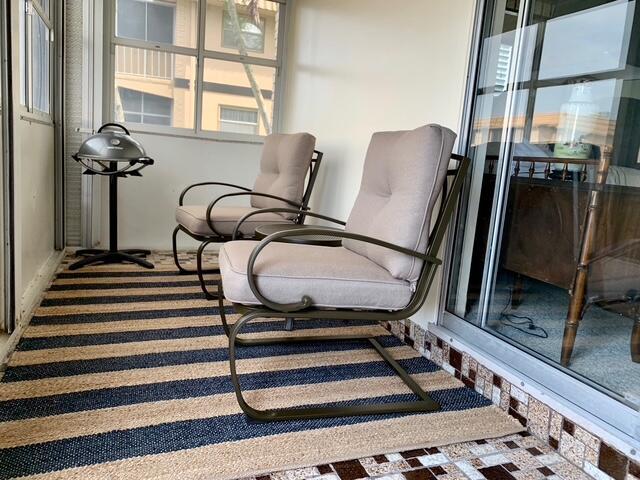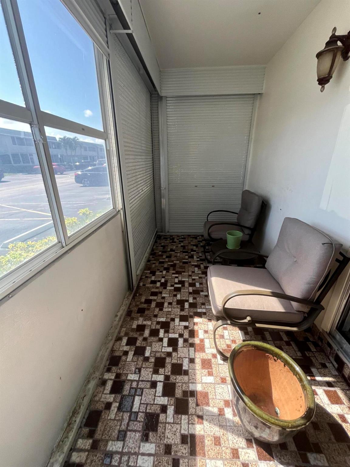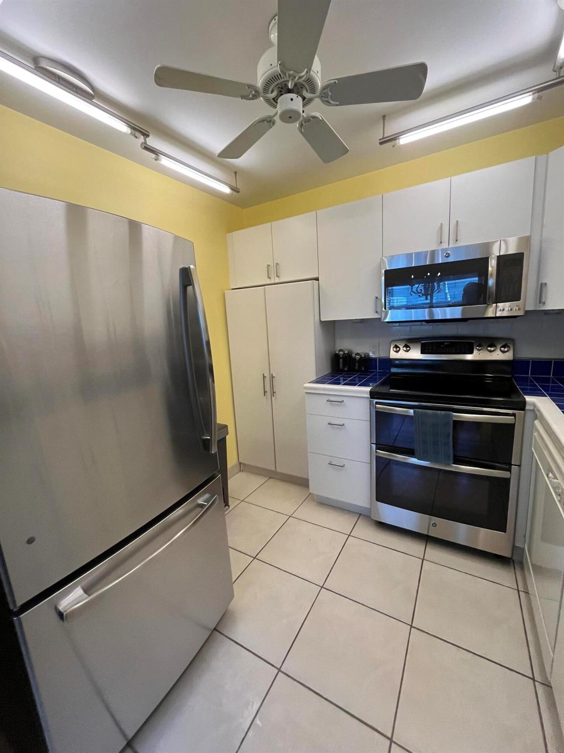 ready to move into TURNKEY...ground floor 1/1.5 unit in Monaco 'L' Very, very clean unit with updated kitchen and bathrooms. Nice neutral colored tiled flooring throughout, except for the berber carpeted primary bedroom. The kitchen boasts of stainless appl.'s with white cabinetry and white subway tiled backsplash. Bright blue tiled countertops. Additional storage cabinetry as well in that kitchen. Patio is enclosed with roll-down shutters and slider windows above that face morning sun east exposure. Park directly behind your unit and bring the groceries directly throught the patio door. No need to walk around here! Located very close to the Monaco pool and Clubhouse which houses the fabulous Bistro Restaurant (lunch and dinner). Not far from the Monaco entrance off Jog rd.