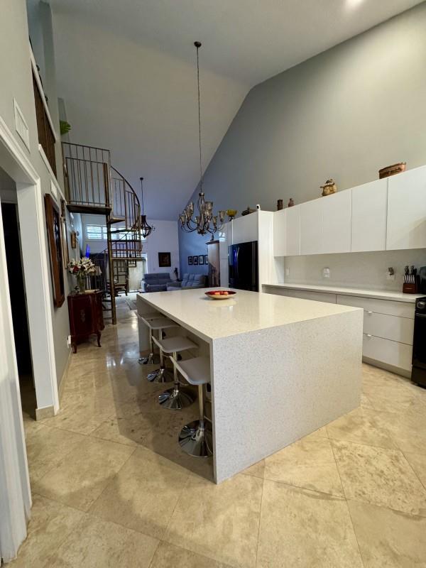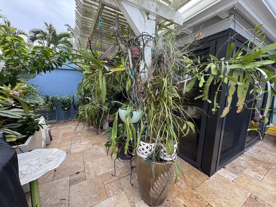 This is a unique & rare opportunity to own this immaculately completely renovated. 2-bedroom, 2-bath unit including a loft (Size 10'2" x 14'2") that could be used as an office, den or even a third bedroom. All impact windows and doors, vaulted ceilings, travertine flooring throughout, a 50K Renovated Gourmet kitchen (Size 13'3" x 21'2" that includes an island of 5' x 8'4" (8 people seating). Updated baths, custom closets & yard completely done w/Travertine, it's peaceful, private, perfect for relaxation