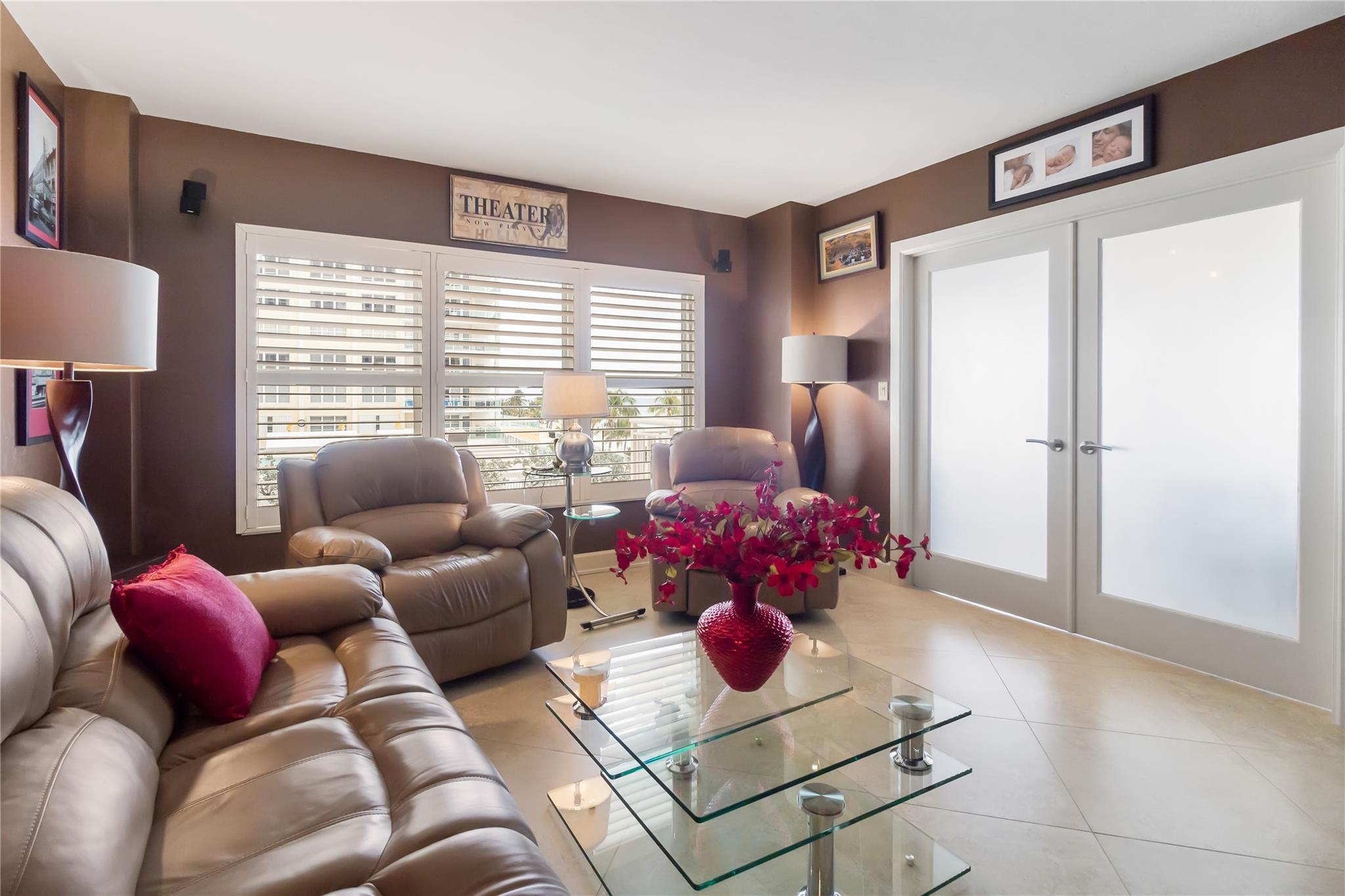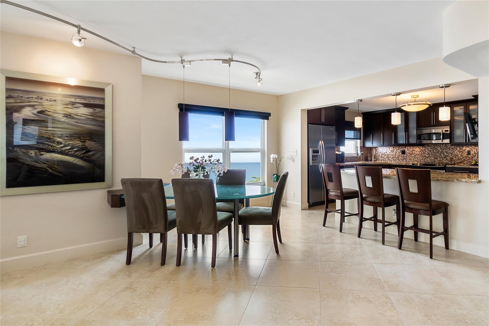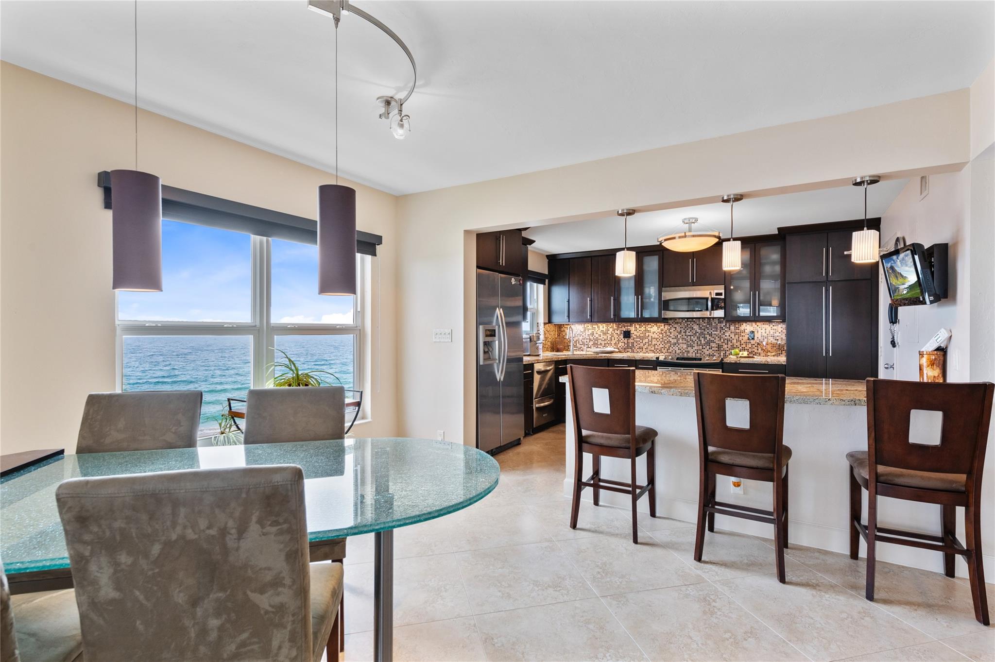 Stunning Oceanfront Condo! 2,150 SF unit with panoramic beach views from an expansive east-facing wraparound balcony—perfect for sunrise coffee or evening cocktails. High-end finishes throughout: custom cabinetry, granite peninsula (89"x40") ideal for prep or entertaining, alabaster lighting, Bose surround sound, and sleek porcelain tile. Plush carpet in bedrooms for added comfort. Enormous master suite with his & hers walk-in closets. Media room can convert back to a 3rd bedroom with ease. Immaculate and move-in ready! Includes 2 premium tandem garage spots 97 & 111 (a $120K value). Resort-style living with unbeatable ocean views—schedule your private tour today! Located in a well-maintained building with secure entry, pool, gym, and easy beach access—this is coastal luxury at its best!