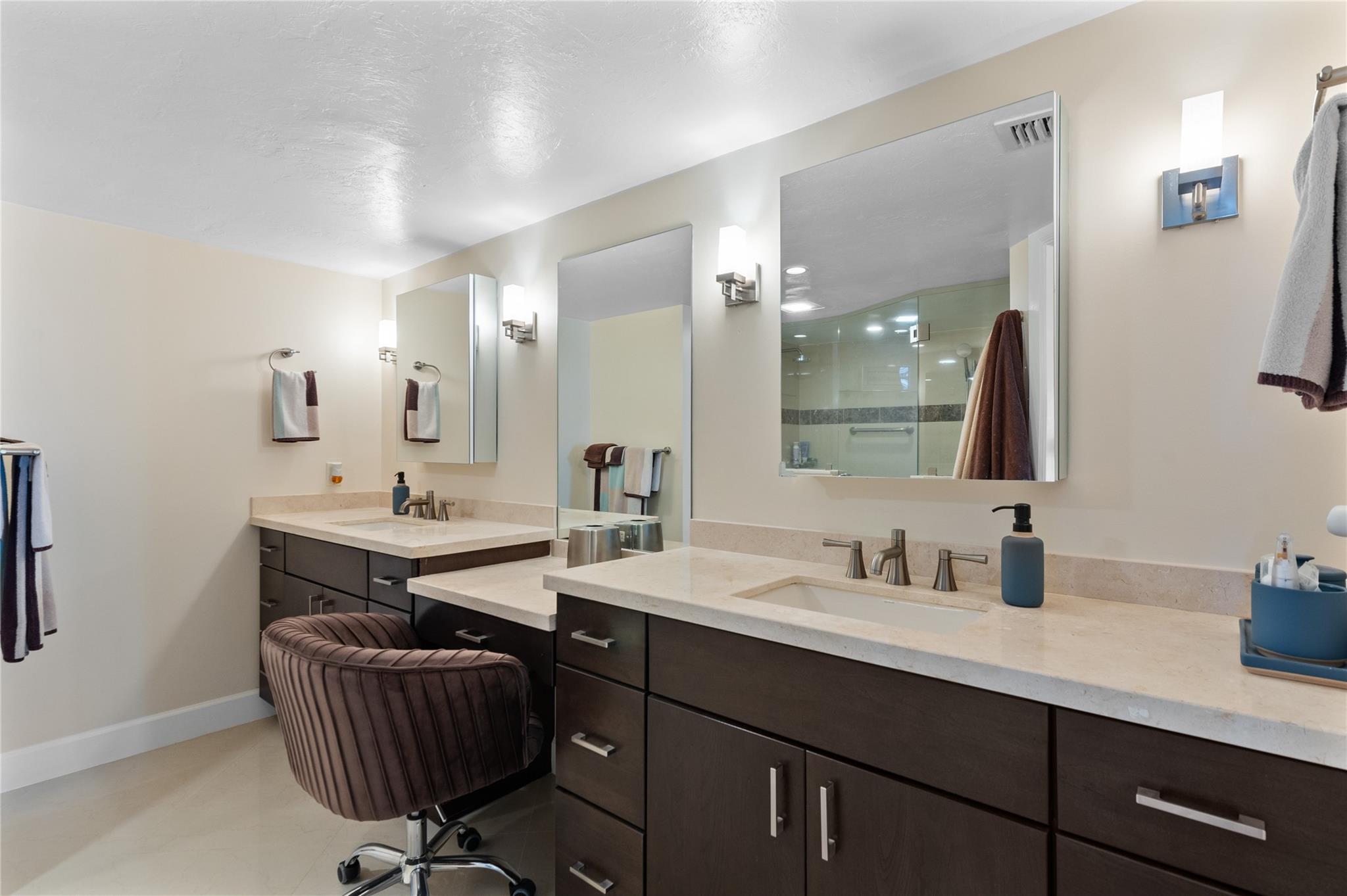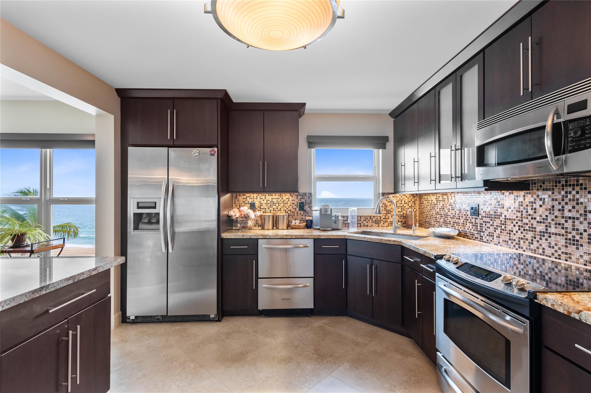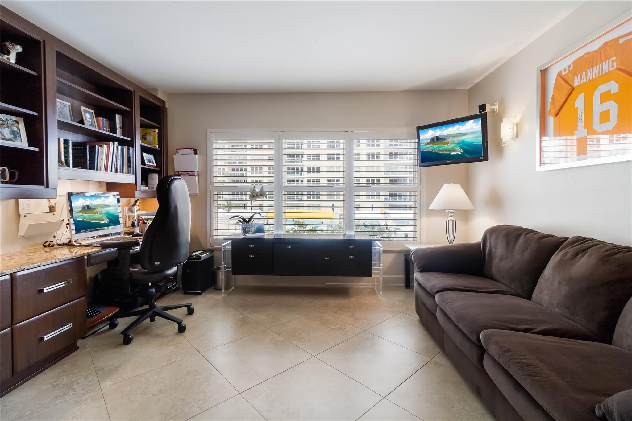Stunning Oceanfront Condo! 2,150 SF unit with panoramic beach views from an expansive east-facing wraparound balcony—perfect for sunrise coffee or evening cocktails. High-end finishes throughout: custom cabinetry, granite peninsula (89"x40") ideal for prep or entertaining, alabaster lighting, Bose surround sound, and sleek porcelain tile. Plush carpet in bedrooms for added comfort. Enormous master suite with his & hers walk-in closets. Media room can convert back to a 3rd bedroom with ease. Immaculate and move-in ready! Includes 2 premium tandem garage spots 97 & 111 (a $120K value). Resort-style living with unbeatable ocean views—schedule your private tour today! Located in a well-maintained building with secure entry, pool, gym, and easy beach access—this is coastal luxury at its best!