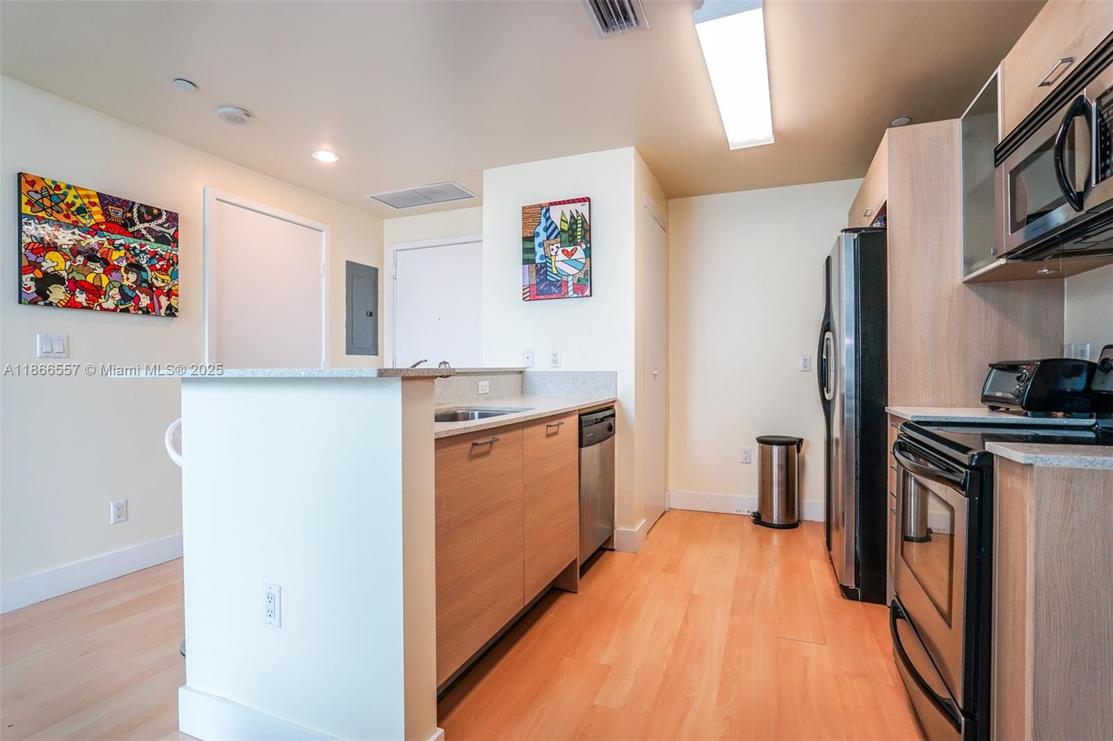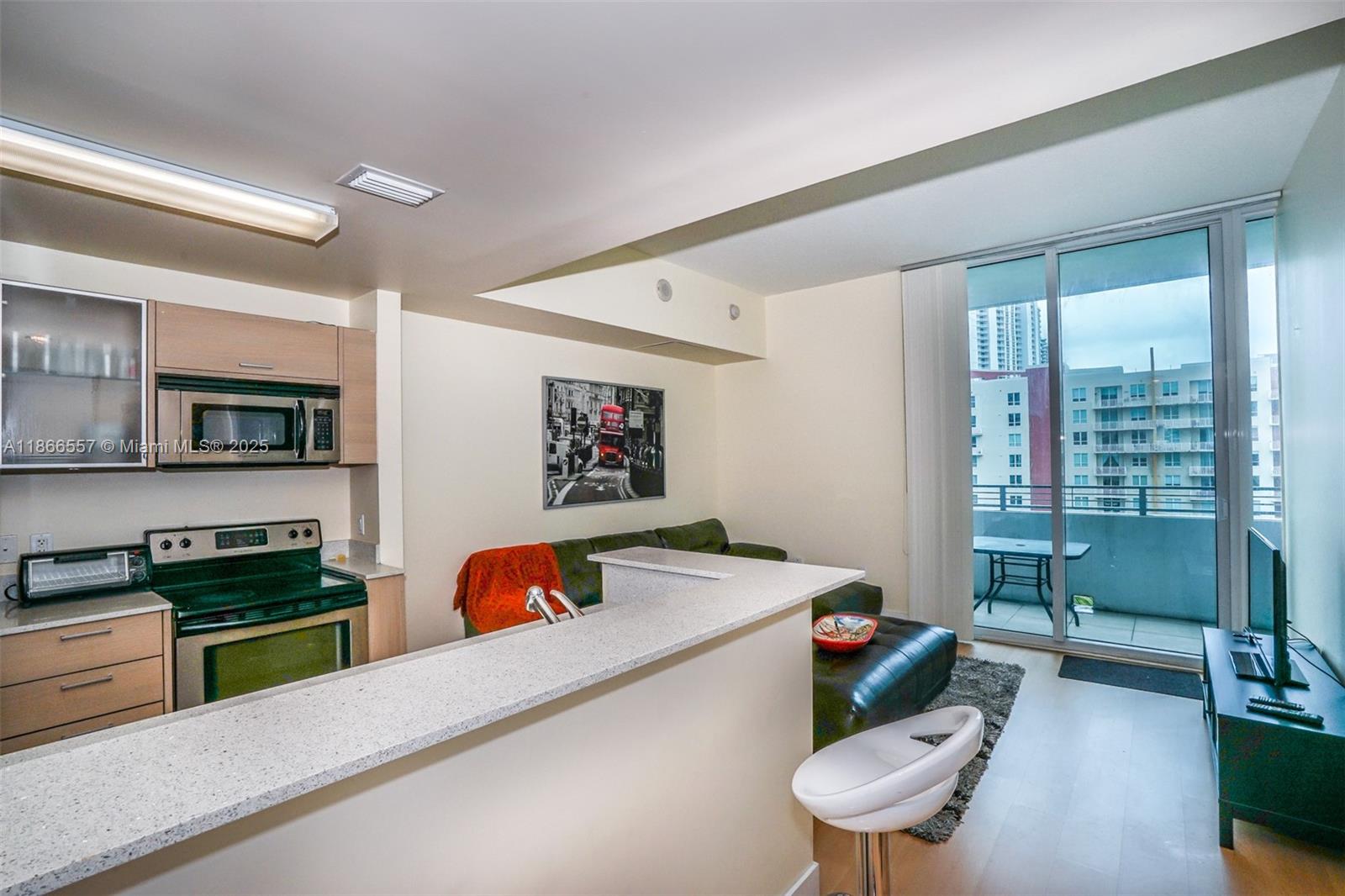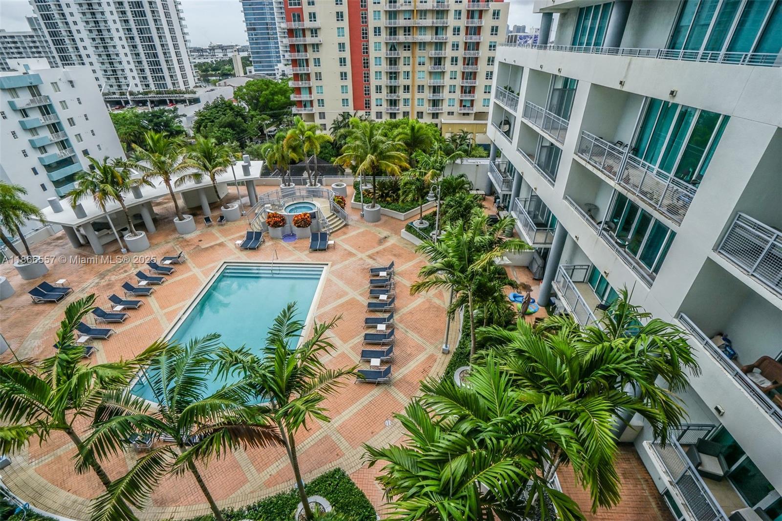 Panoramic views from this wonderfully kept apartment in a small young building in Edgewater! Step out to the oversized balcony overlooking the pool, courtyard, and Bay. Faux wood (tile) floors, recently installed black out shades, new washer/dryer in unit, high ceilings. 24 hour lobby attendant, gymnasium, dry sauna, jacuzzi, billiard and activity room. Close to restaurants, public transportation, minutes to Downtown, Design District, Mid town, Wynnwood, and Beaches. Investor and Pet friendly