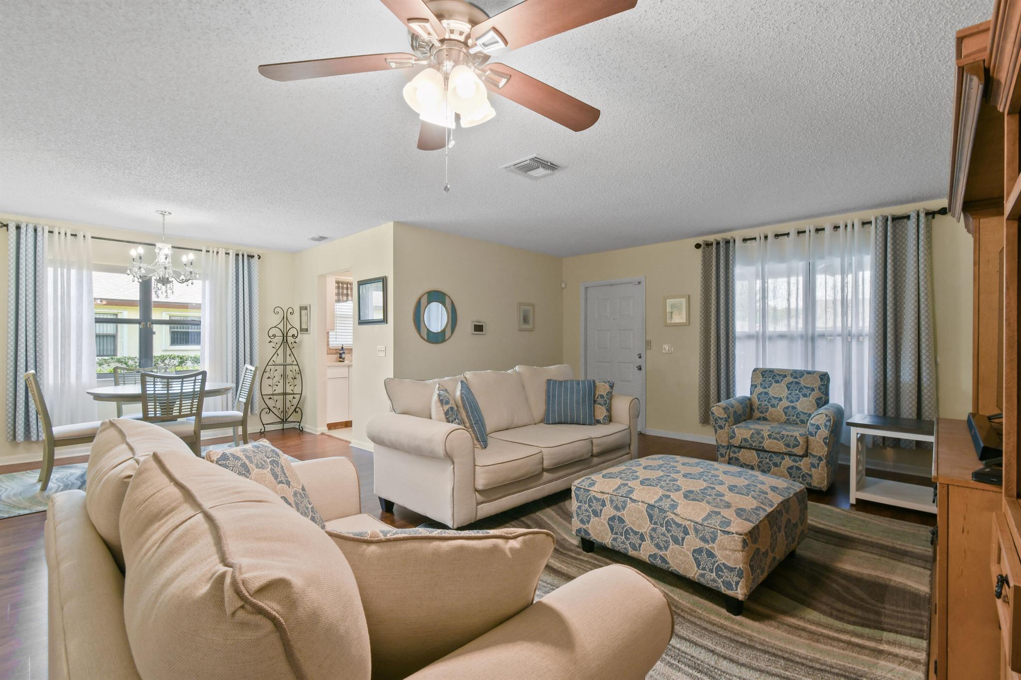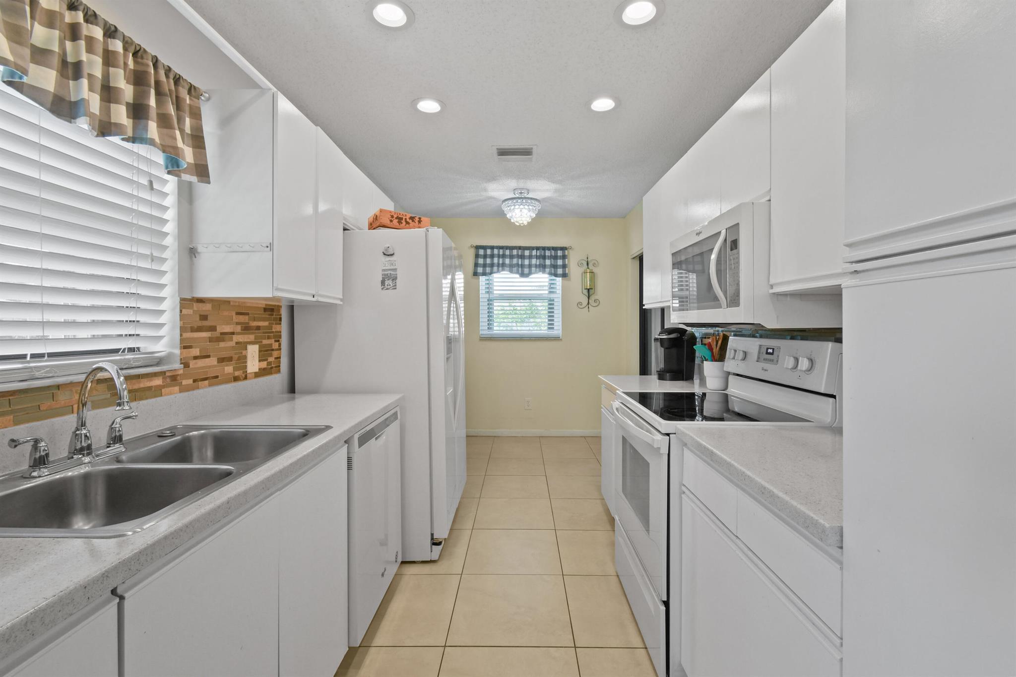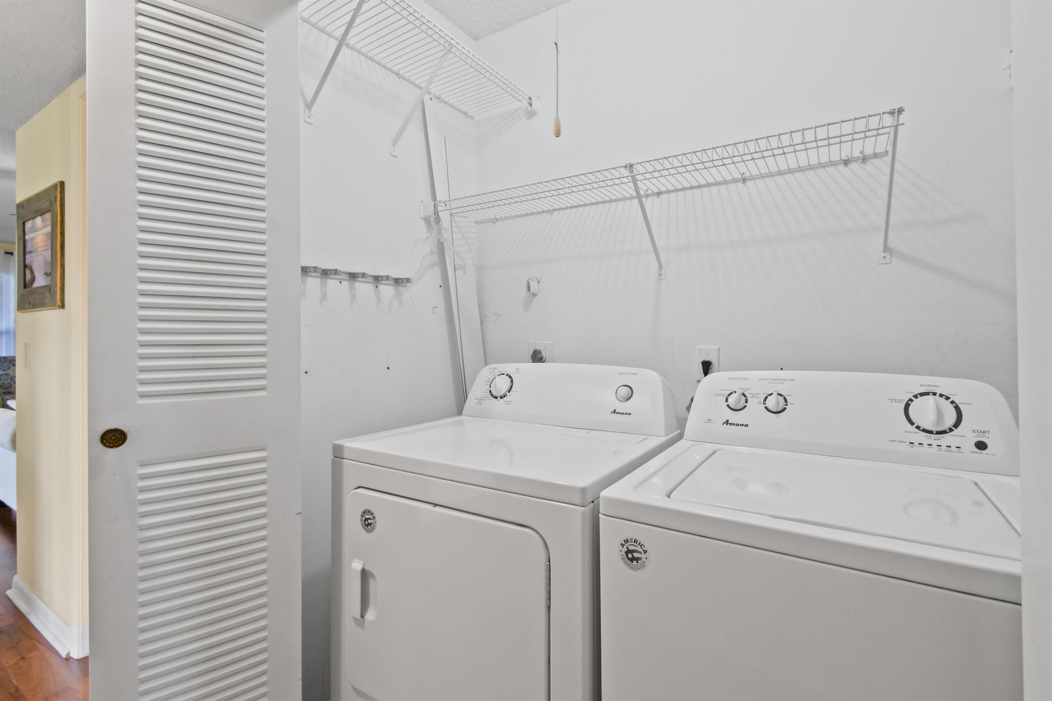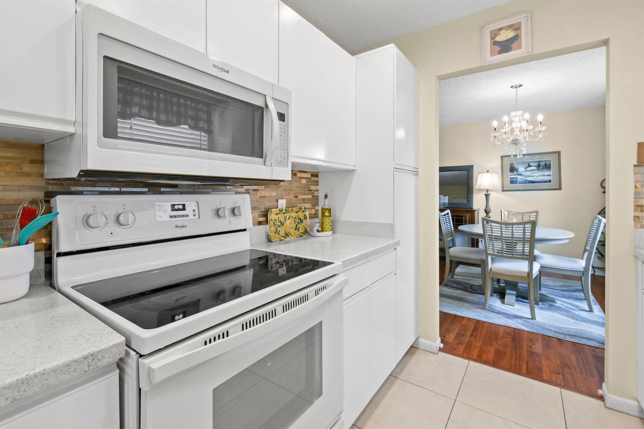 This clean and well-maintained unit in the Savannahs Condominium offers a screened front porch, 2 bedrooms and 2 full bathrooms, with a thoughtful mix of finishes throughout. The kitchen and bathrooms feature tile flooring, while the living room is accented with warm laminate wood, and the bedrooms are comfortably carpeted. Recent updates include a newer A/C system installed in 2020 and a roof replacement completed the same year, and Newer Kitchen Appliances providing peace of mind for years to come. Partial accordion shutters add an extra layer of storm protection, making this unit both practical and inviting.