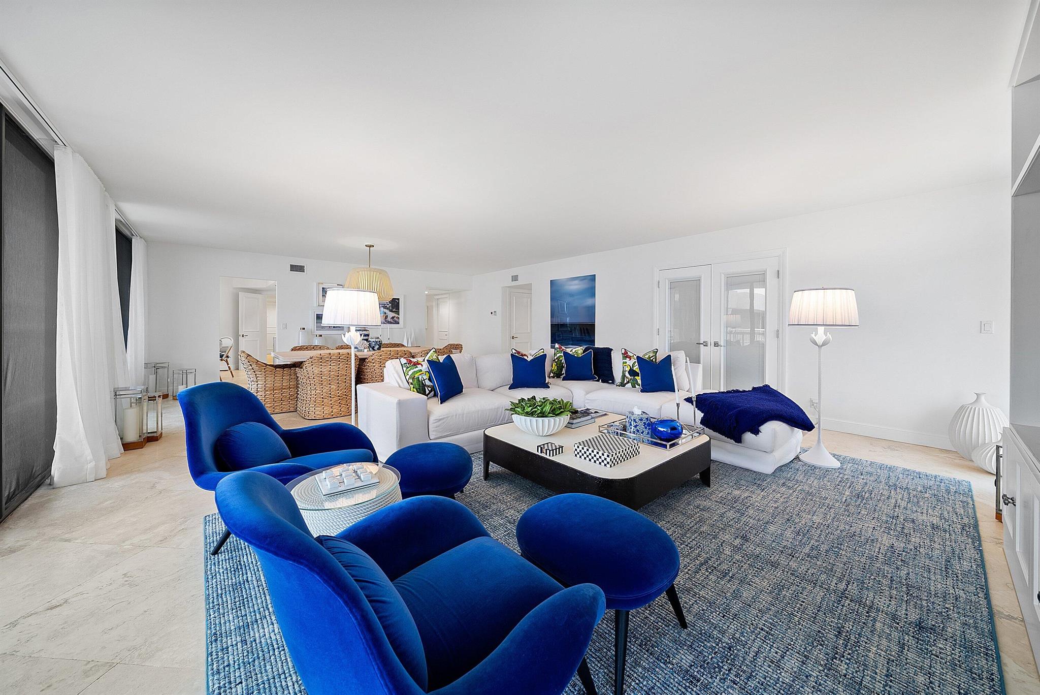 Ocean Front Penthouse with the water views everyone wants! This 3 bedroom, 2.5 bath residence is spacious and gracious & renovated, with 2 balconies that provide east and west exposures offering an abundance of light to showcase the beautiful, colorful interiors furnished by an international interior designer and is offered fully furnished/''turnkey''. The outdoor seating on the balconies offers additional living areas to enjoy the ocean views, breezes and westerly sunsets. The Meridian has completed the Milestone requirements, has a newly renovated pool area and spa on the ocean with a stairway to the beach, Entry gate is manned 24 hours, full time manager, tennis courts, garage parking. Meridian offers the best of luxury living!