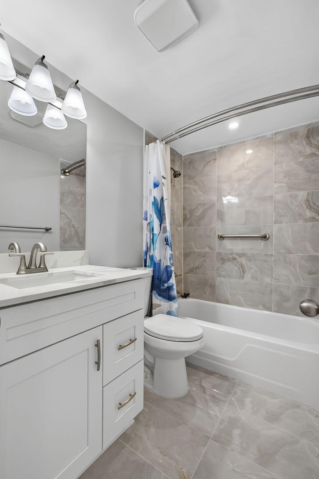Stunning Fully Renovated Condo in Premier 55+ Community ~ Step into luxury with this beautifully renovated 2-bedroom, 1-bath condo showcasing high-end finishes throughout. From the moment you enter, you'll appreciate the sophisticated open design, featuring top-tier woodgrain plank laminate flooring that seamlessly flows through every room. The open-concept kitchen with separate dinette area is a showstopper, offering brand-new stainless steel appliances, custom cabinetry with gleaming quartz countertops, and a spacious island--perfect for entertaining or casual dining. The bathroom has designer tile with a modern vanity and light fixture. The open and airy layout is bathed in natural light, enhancing the serene, upscale atmosphere of the home. Located in one of the area's most desirable