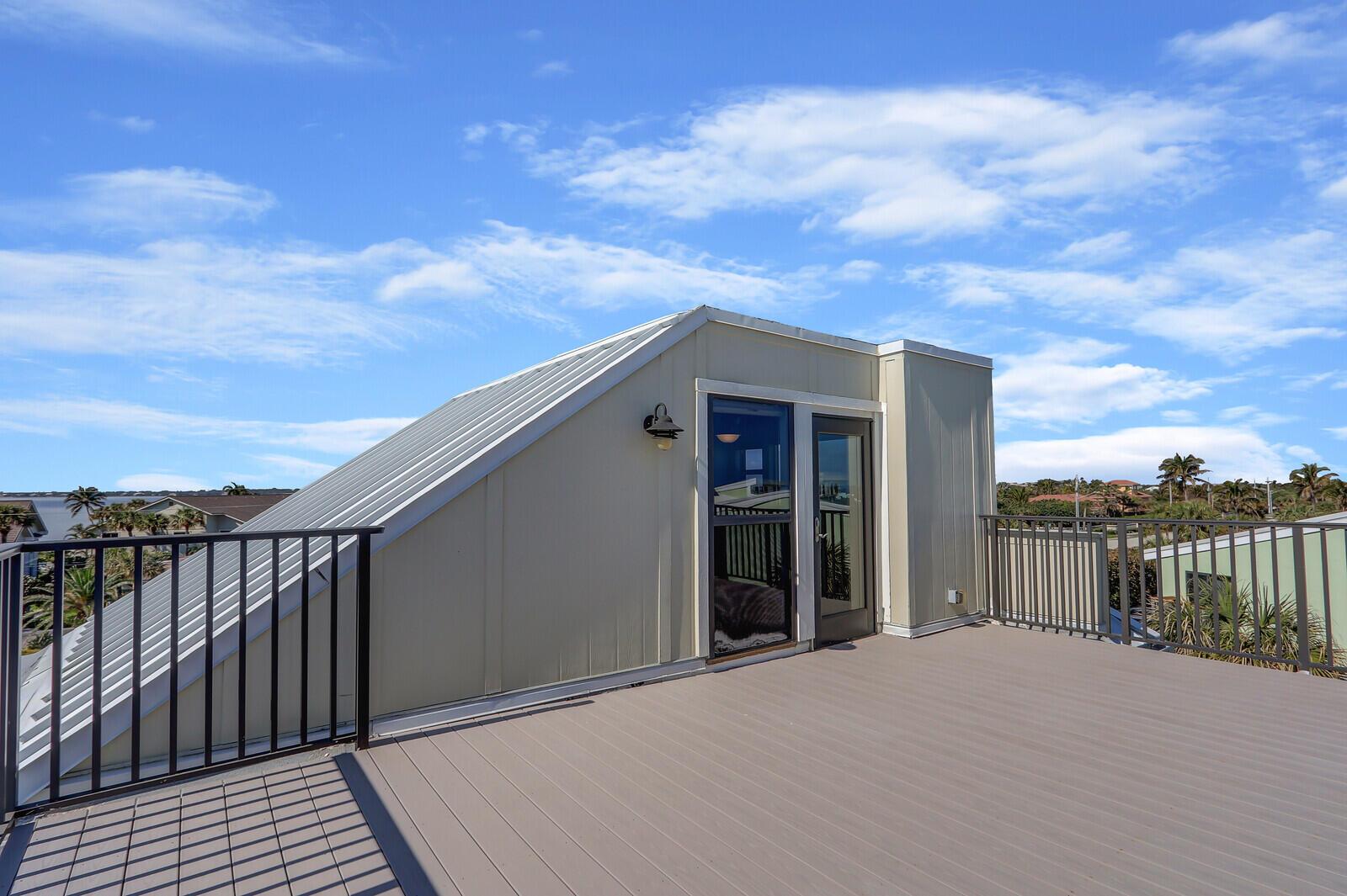 Wake up to breathtaking sunrises over the ocean and wind down with stunning sunsets over the river-all from your private expansive rooftop deck, featuring new composite decking. The beautiful 2 story, beachfront condo offers a large main bedroom, guest room, and bonus loft with 1/2 bath. Step inside to find an elegantly remodeled kitchen with new Kitchen-aid stainless steel appliances, induction stovetop, high end cabinetry, eat-in nook, & counter with seating. The open concept living area boasts new LVP flooring, while the hallways and bathrooms showcase timeless travertine. Custom closets throughout with plenty of storage. Maritimes community offers private beach access, 2 heated pools, pickleball/ tennis court, beach on river side to launch kayaks and paddle boards, beach chair storage