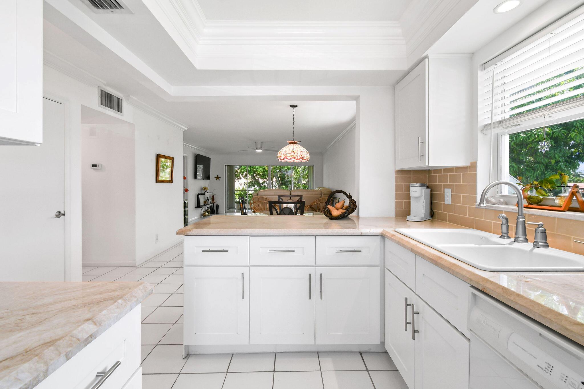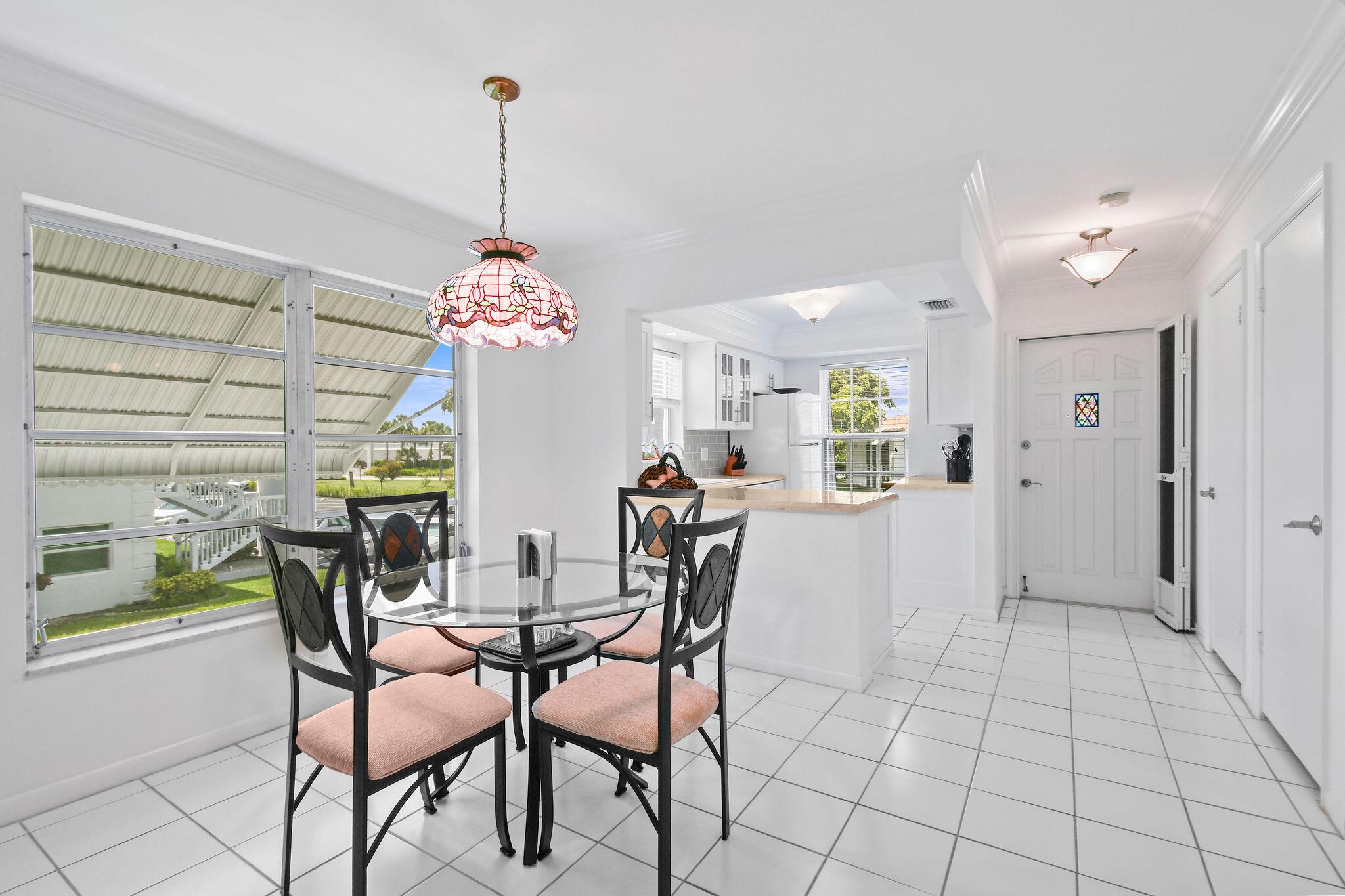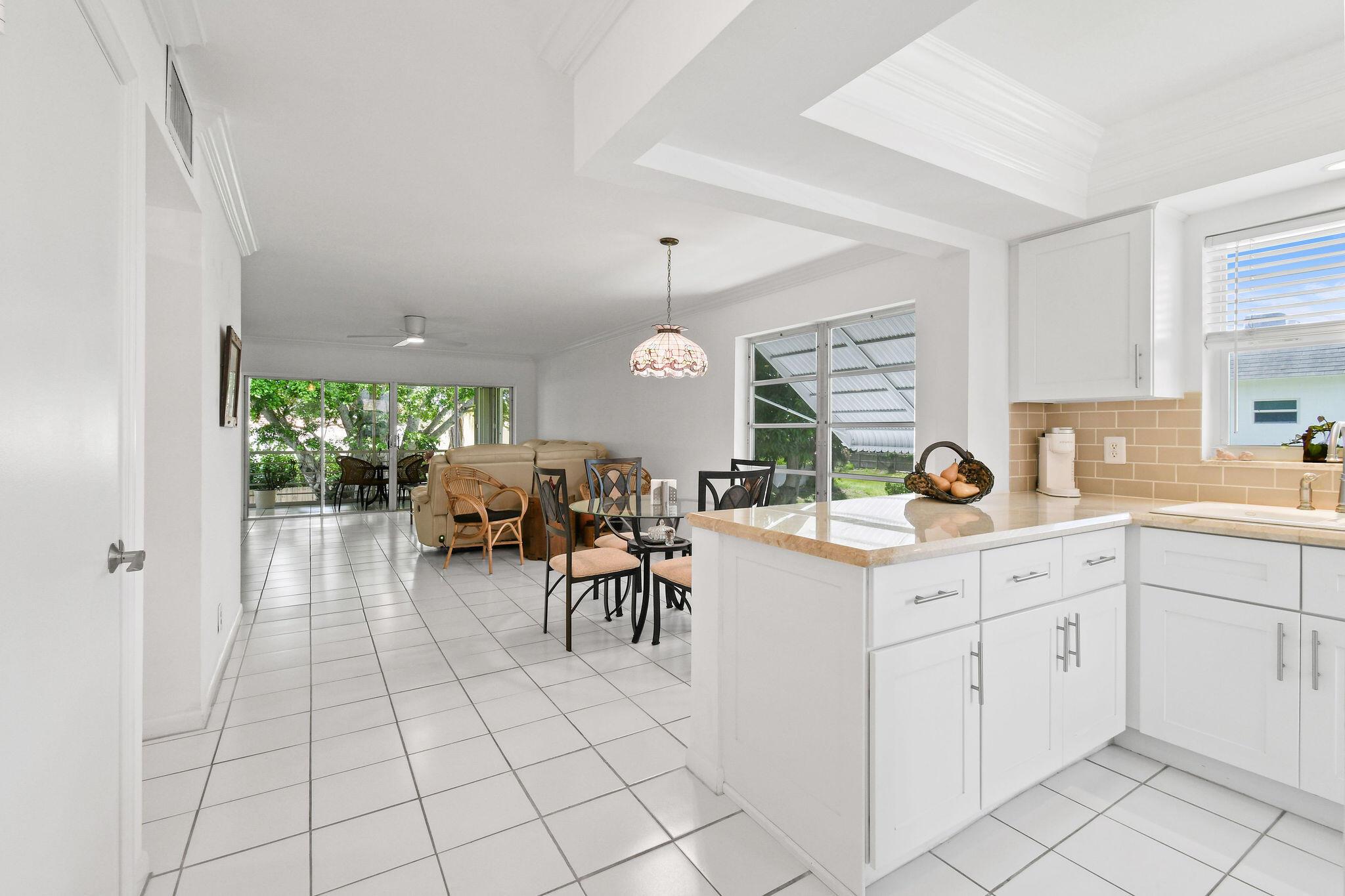 Step into comfort and style with this beautifully updated residence! Featuring a private corner entry and serene tree-top views, this home blends elegance and functionality. The renovated kitchen and baths shine with modern finishes, while crown molding and tasteful updates add a touch of sophistication, & plenty of storage. The perfect home for relaxing and entertaining with a blend of lifestyle and value. Located in a friendly 55+ community offering, pool, club house, billiards table, & many activities. It is walkable to Promenade Plaza, many restaurants, Newest Publix, Planet Fitness. and a short drive to Beaches, Airport and Medical Centers.