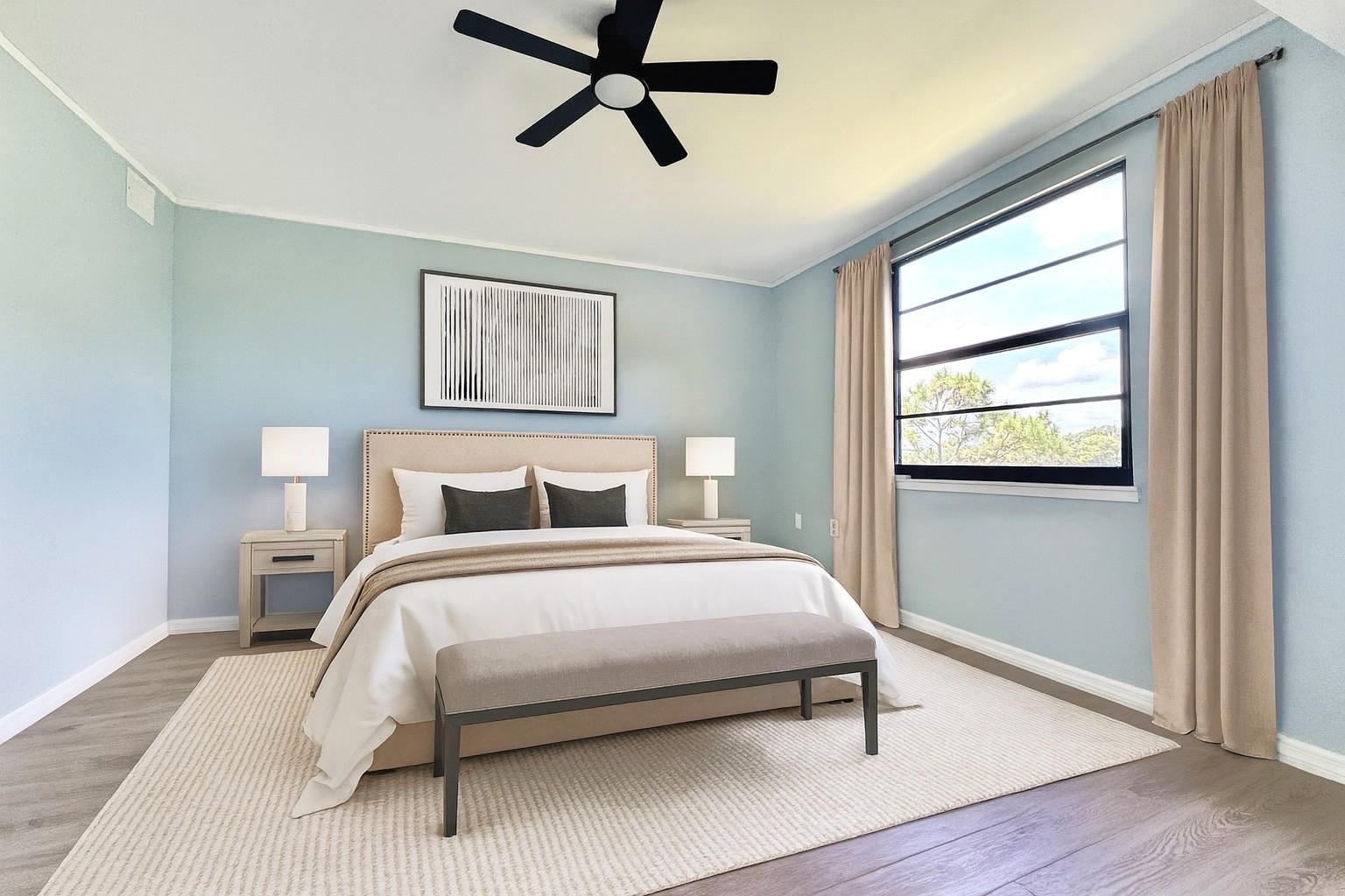 SPECTACULAR REMODEL...NO EXPENSE SPARED! INVESTORS WELCOME...No waiting to rent! Don't miss this beautiful MOVE-IN READY large 2bd/2bth unit in much sought-after Whitehall in the Village, with 1,437 sqft LIVING AREA with ALL NEW HURRICANE IMPACT WINDOWS THROUGHOUT! NEW KITCHEN, NEW BATHROOMS, NEW HIGH-END APPLIANCES, NEW FLOORS, NEW LIGHTING, NEW A/C & WATERHEATER, NEW WASHER & DRYER, NEW ELECTRICAL PANEL, LARGE WALK-IN CLOSET IN MASTER BEDROOM. SO MANY FEATURES...Tons of storage, Oven/Air Fryer, 5-Burner Stove, Solid Wood Cabinets with soft close, Quartz Countertops, Disposal, Walk-in Closet, Sound-dampening Flooring, Coffered Ceilings...TOO MUCH TO LIST! Check out the BEAUTIFUL VIEW of the GOLF COURSE, LAKE & FOUNTAIN.