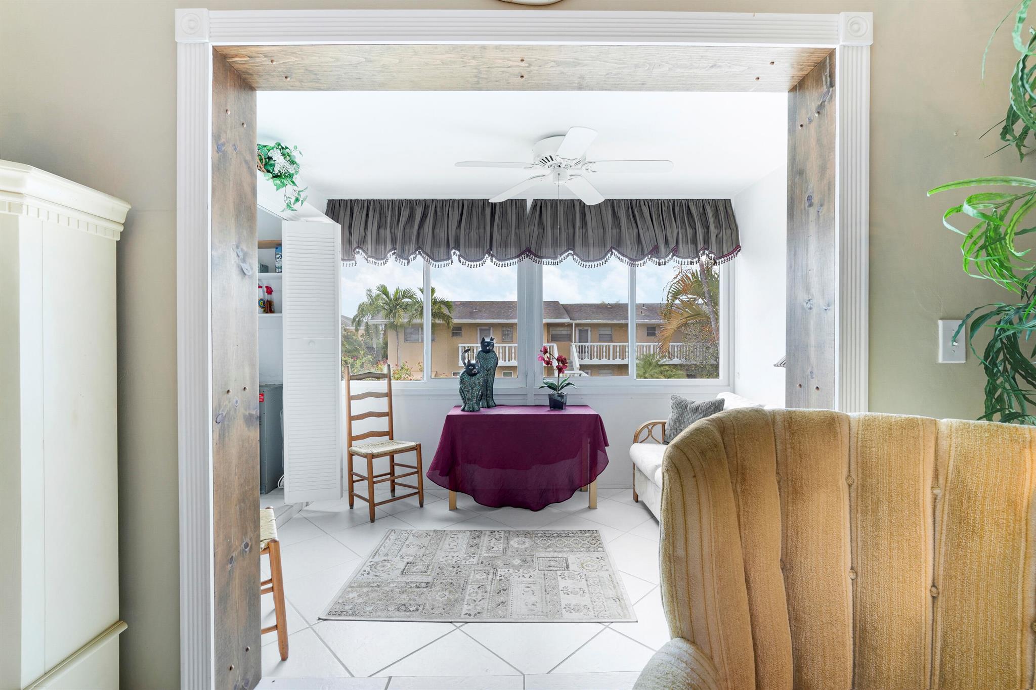 Welcome home to this tastefully furnishedand incredibly maintained 2 bedroom, 2 full bathroom condo in the desirable 55+ community of Village Royale, East Boynton. This END unit offers extra windows, full impact glass, crown moulding, and tiled floors throughout. Both bathrooms are beautifully renovated. Florida room includes a full sized washer and dryer and lots of windows for a light and bright space to enjoy a book and coffee. Seller is leaving all furniture and housewares--just bring your toothbrush and move right in to this turn key condo! Steps from the community pool. Association dues include water, sewer, trash, cable, and internet. Conveniently located near I-95, Publix, shopping, and the beaches.