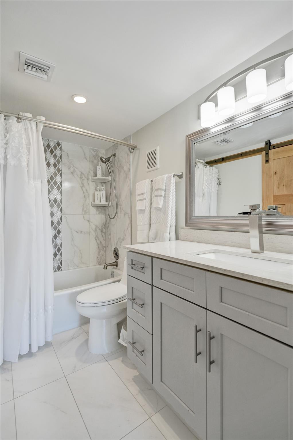 No Special Assessments/ the Most affordable condo fees! Your new custom renovated home has amazing indoor / outdoor flow through floor to ceiling sliding glass doors to your large screened balcony where you can enjoy the best view in all of Pine Island Ridge. Custom Kitchen with Quartz countertops. Plenty of kitchen cabinets and drawers for storage and enough countertops for meal preparation. Glass pantry barn door with lighten pantry and pull out shelves. Oversized Quartz Island to meet your dining needs for six people. All new matching appliances. Refrigerator has built-in Keurig coffee maker. Both bathrooms have quartz countertops and plenty of storage space. Barn Doors in both bedrooms & bathrooms. Walk-in master closet. Luxury vinyl floors throughout home. No popcorn ceilings