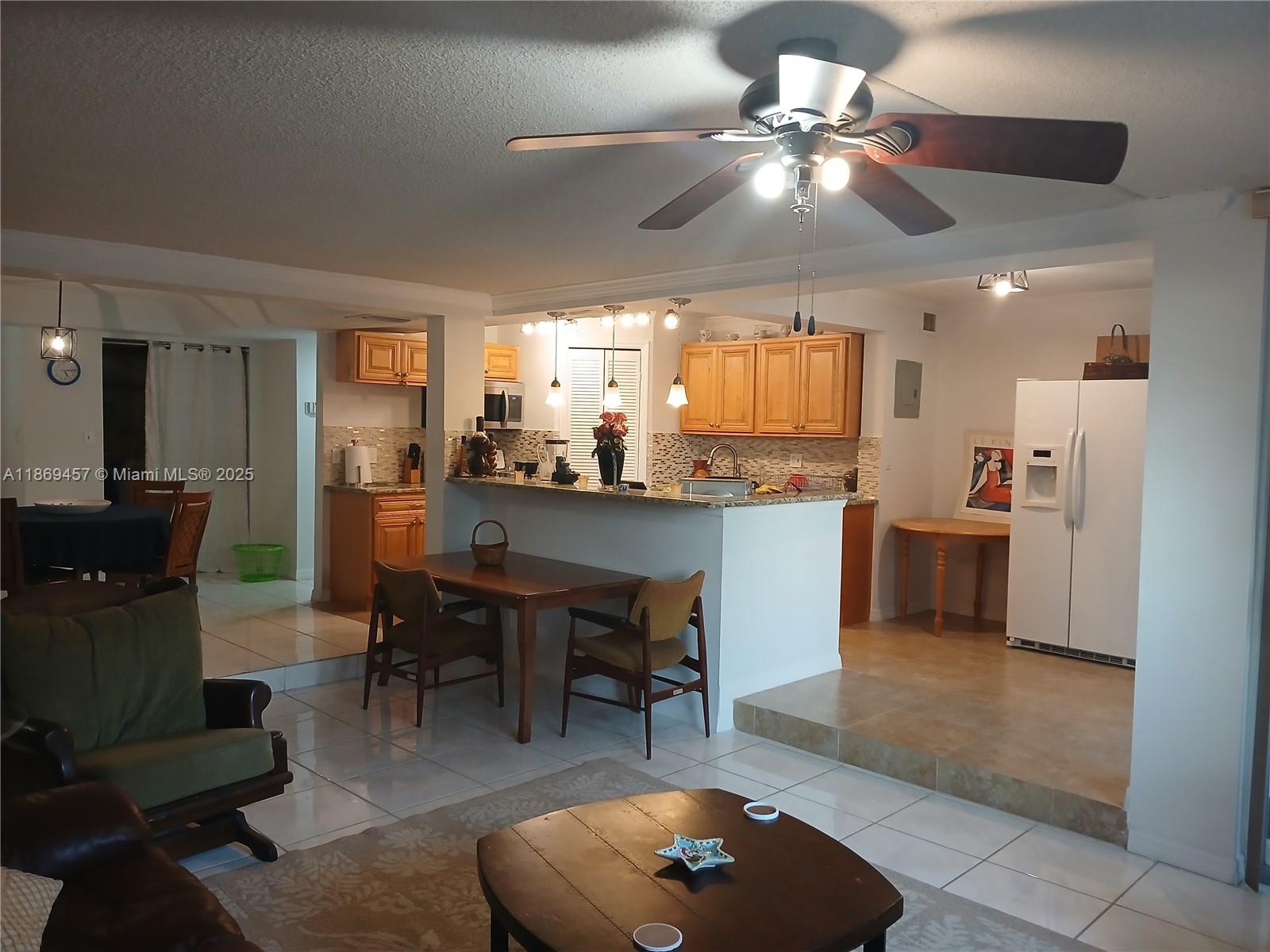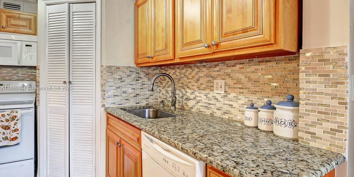 Step into this beautifully upgraded corner unit featuring enhanced ceramic tile flooring throughout the living areas and both bedrooms. The sunken living room flows seamlessly into an open-concept layout, accented by detailed crown molding and professionally painted walls for an elegant touch. The updated kitchen boasts gorgeous granite countertops, a neutral tiled backsplash, and a full suite of appliances. Both bedrooms feature spacious walk-in closets and an additional oversized pantry closet with washer/dryer offers exceptional storage. Enjoy a perfectly maintained AC and water heater Located in a secure gated community, residents enjoy premium amenities including indoor and outdoor pools, spa, five tennis courts, gym, saunas, putting range, racquet courts, and a BBQ area.