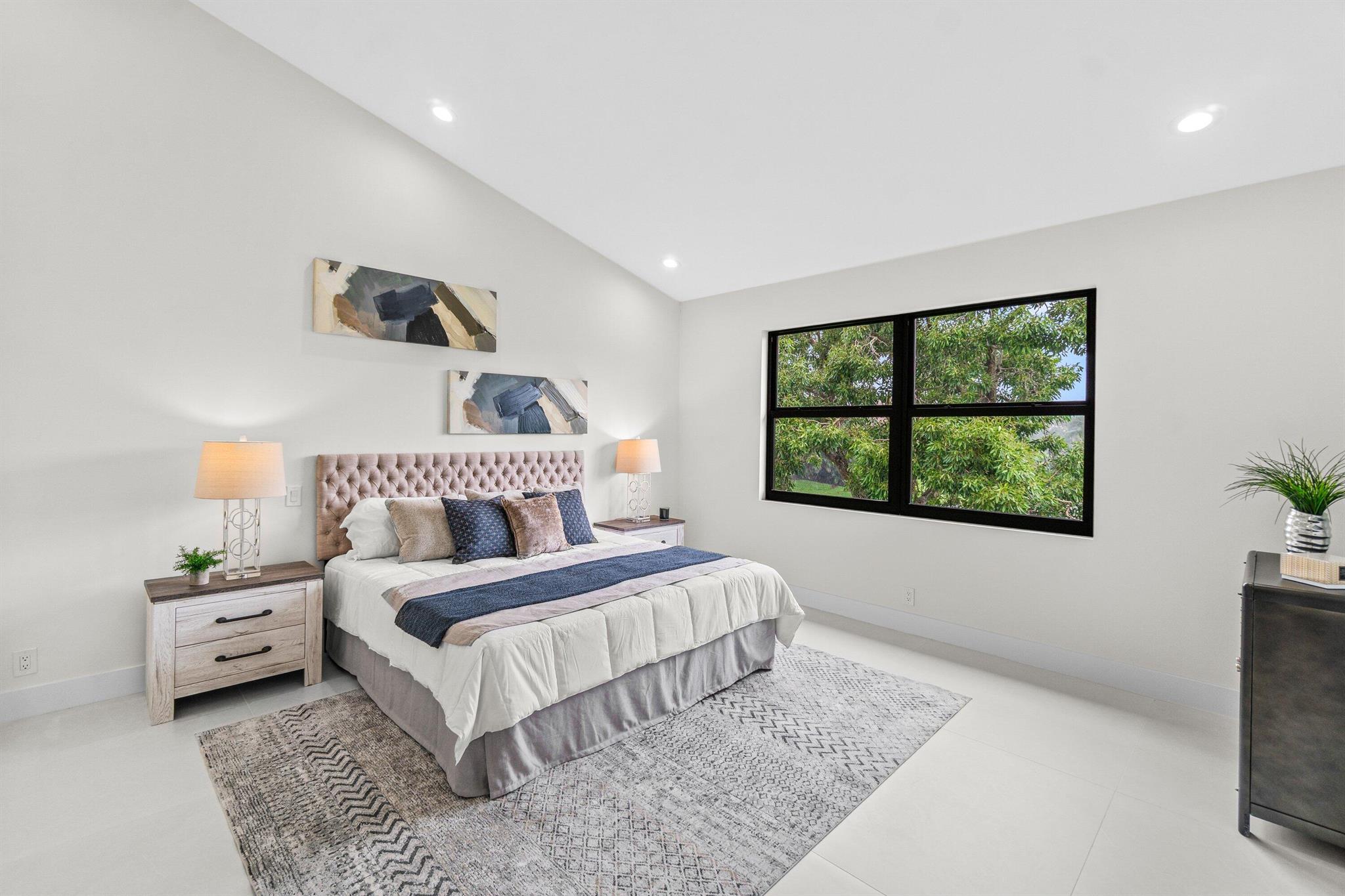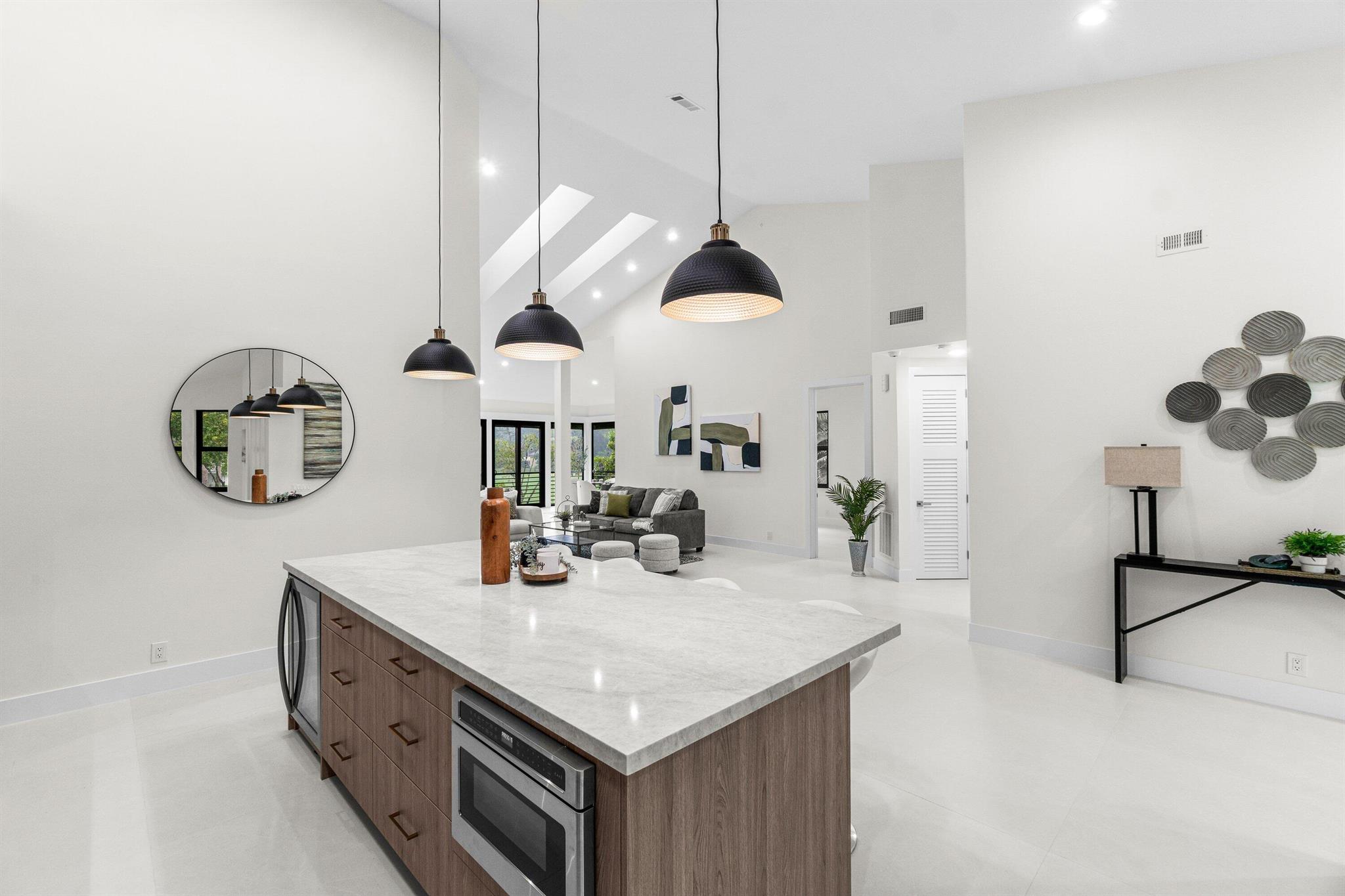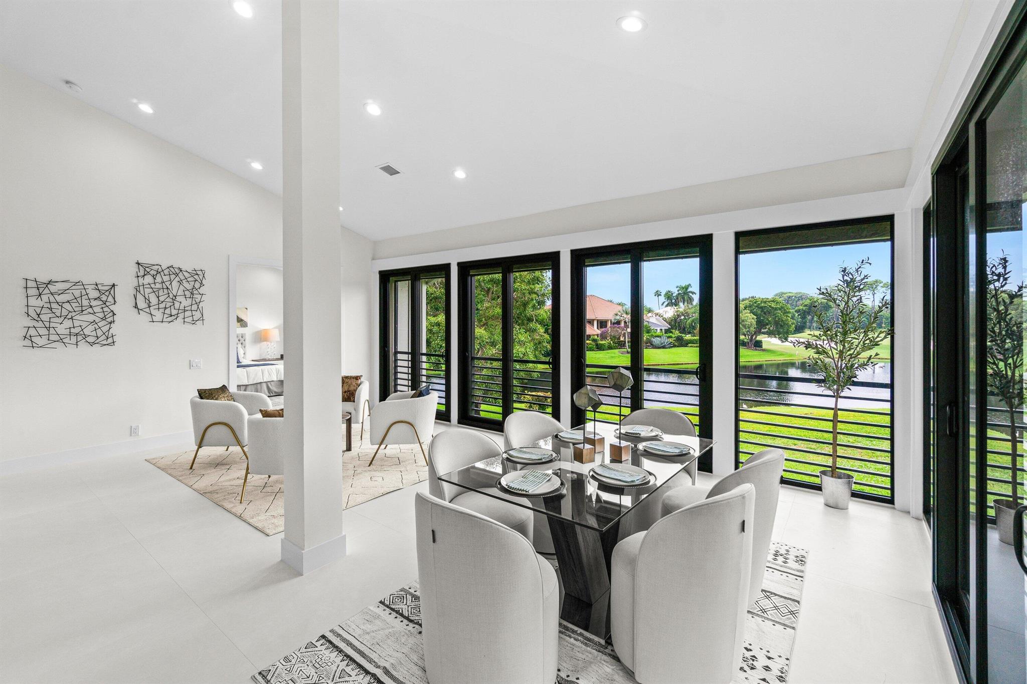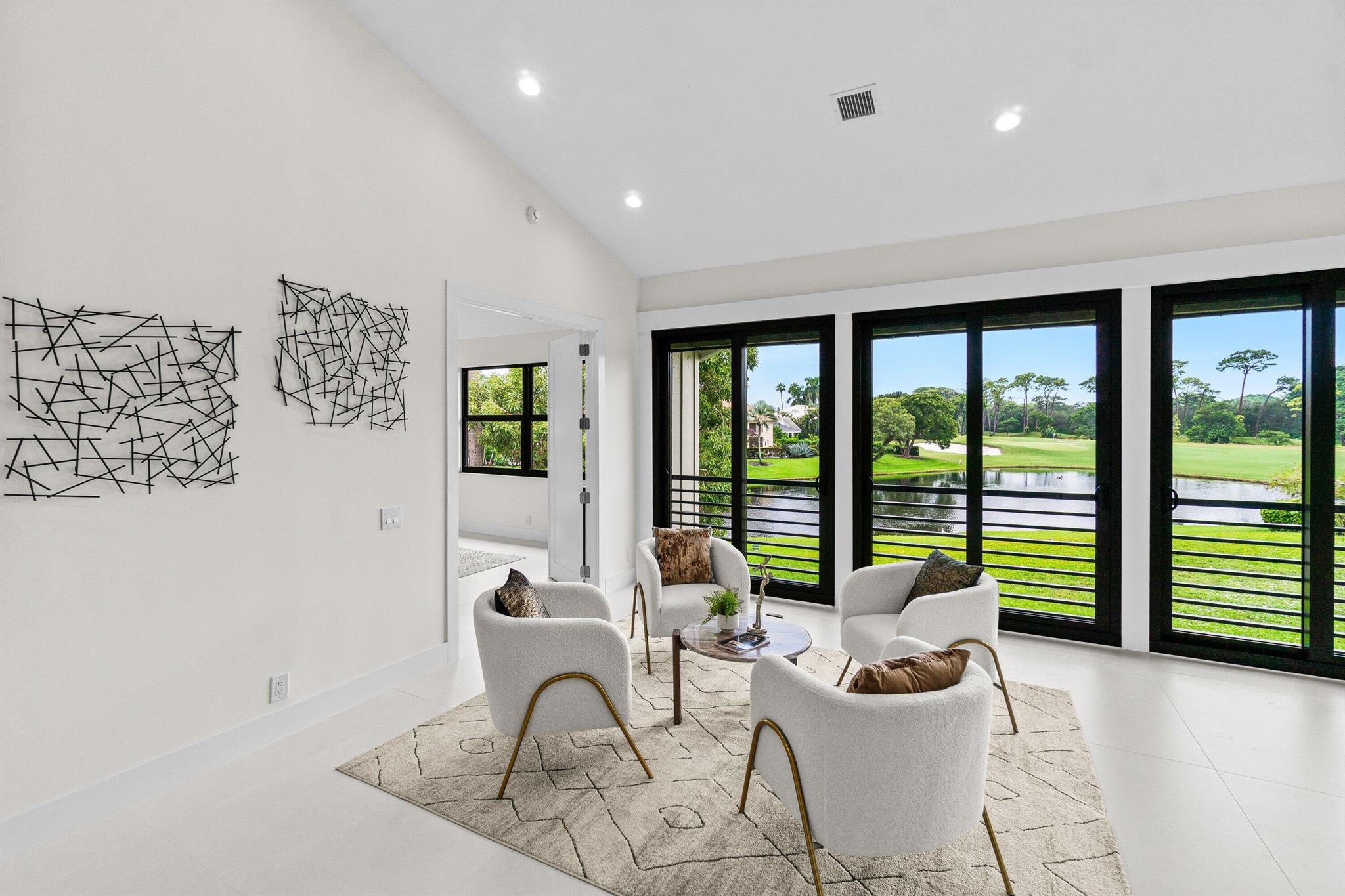 With a spectacular picture-perfect view of the lake and golf course, this fully renovated second-floor condo was just completed. The residence features 3 bedrooms, 2.5 bathrooms, and a custom designer chef's kitchen with Cafe appliances, abundant cabinet and storage space, and a wine cooler. High-end finishes include 48'' x 48'' porcelain tile flooring, impact windows and doors, LED lighting, and backlit and front-lit mirrors in the bathrooms. The home also offers the convenience of a private interior elevator, LG washer and dryer, 2024 roof, and a 2017 AC unit.