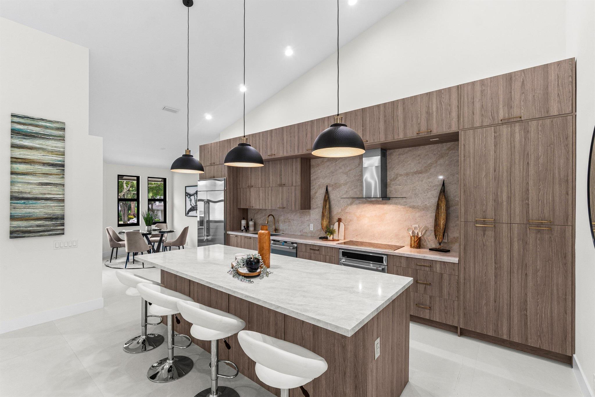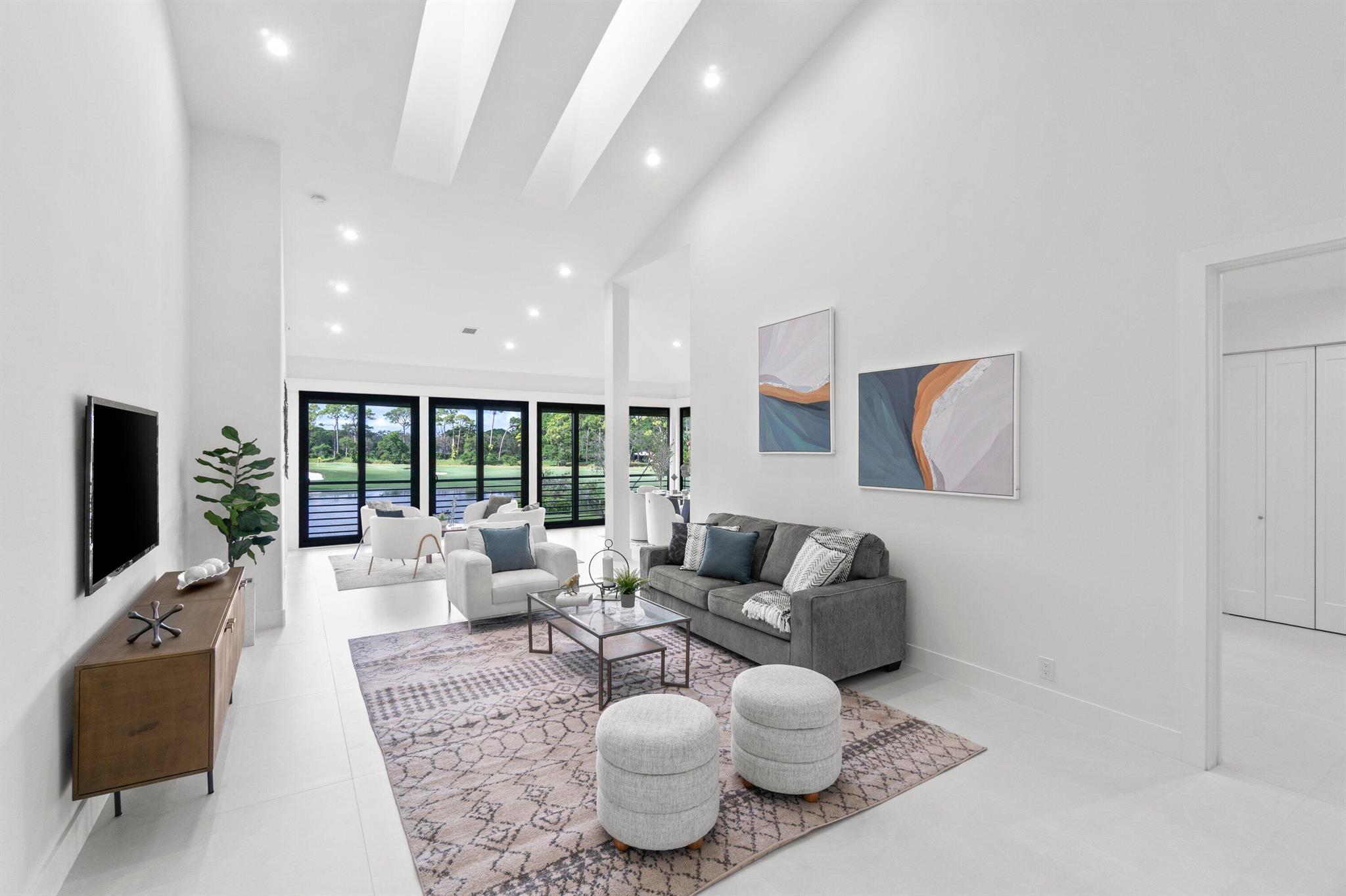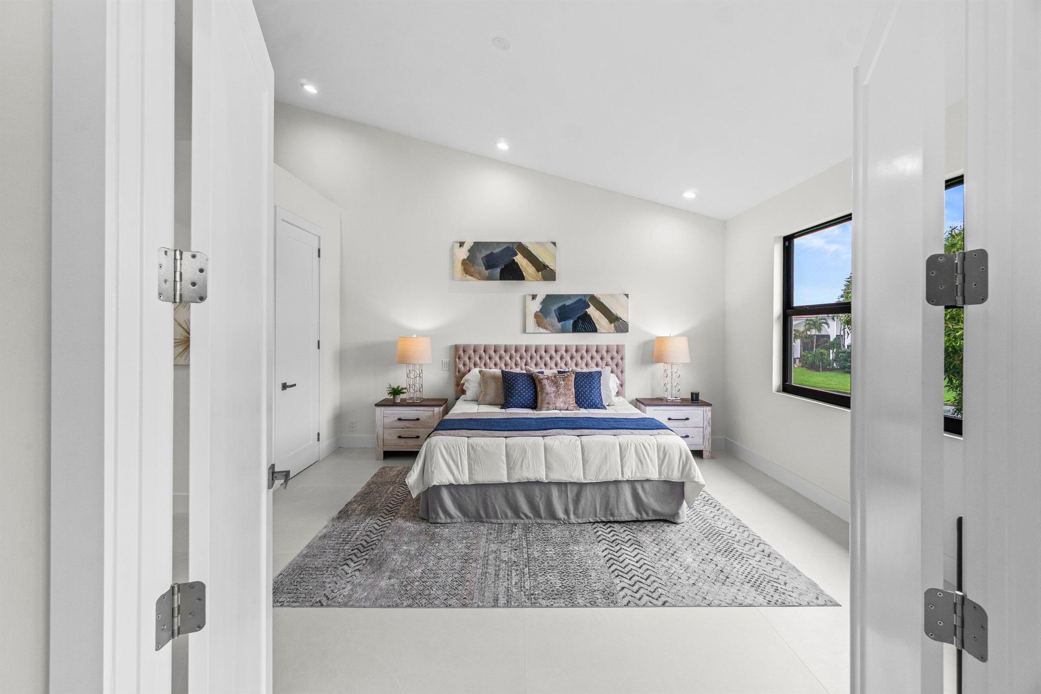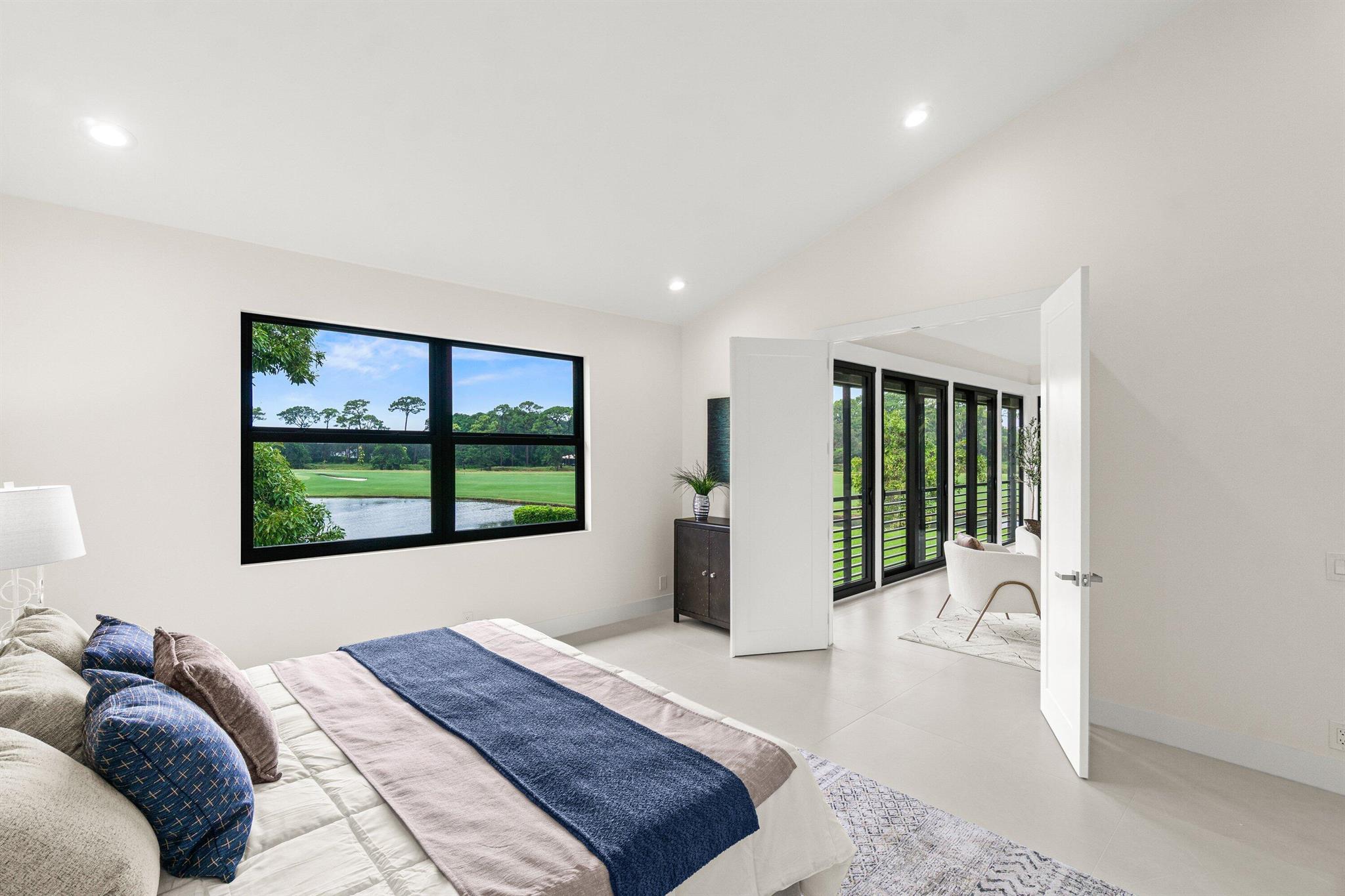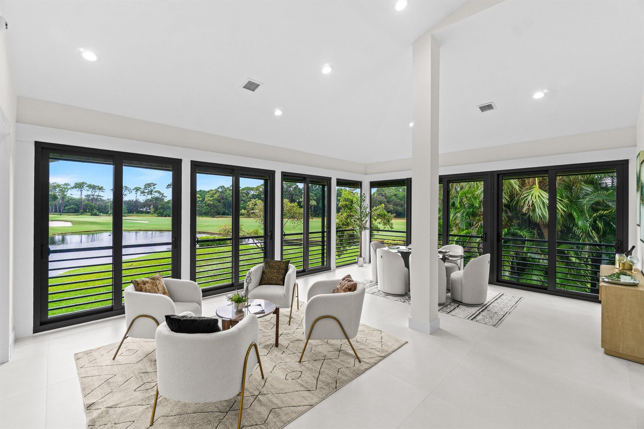 With a spectacular picture-perfect view of the lake and golf course, this fully renovated second-floor condo was just completed. The residence features 3 bedrooms, 2.5 bathrooms, and a custom designer chef's kitchen with Cafe appliances, abundant cabinet and storage space, and a wine cooler. High-end finishes include 48'' x 48'' porcelain tile flooring, impact windows and doors, LED lighting, and backlit and front-lit mirrors in the bathrooms. The home also offers the convenience of a private interior elevator, LG washer and dryer, 2024 roof, and a 2017 AC unit.