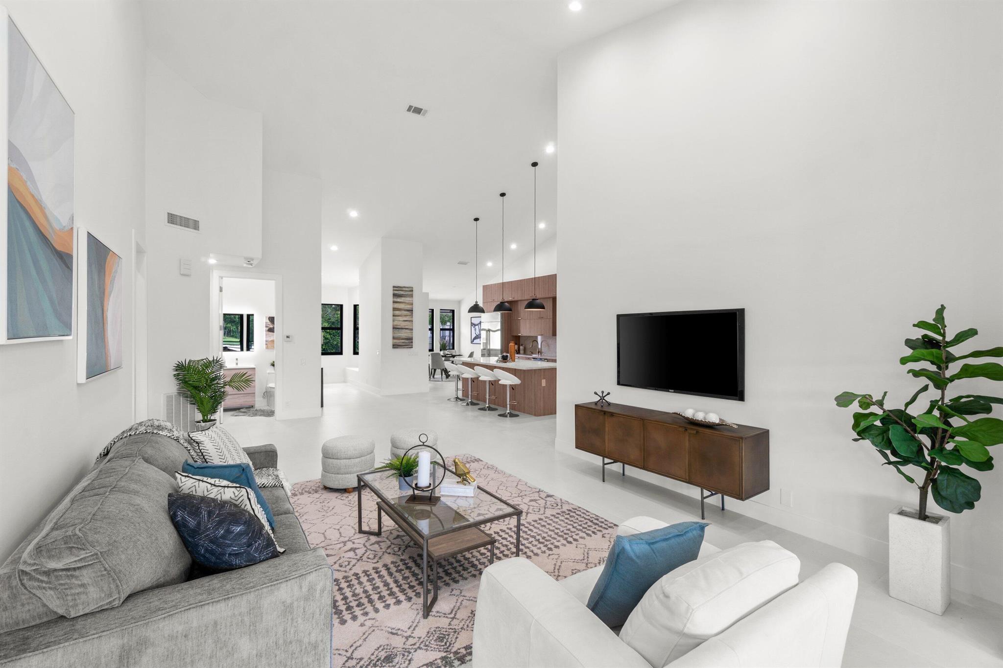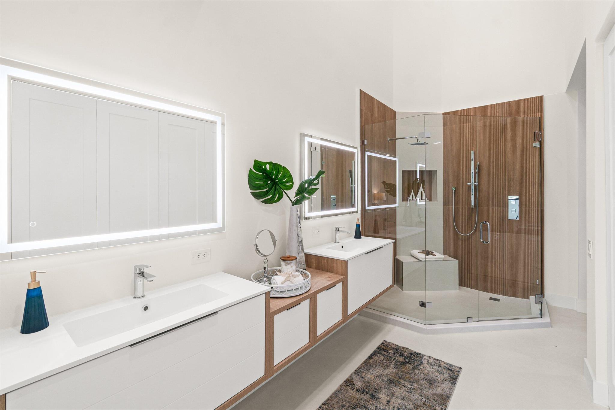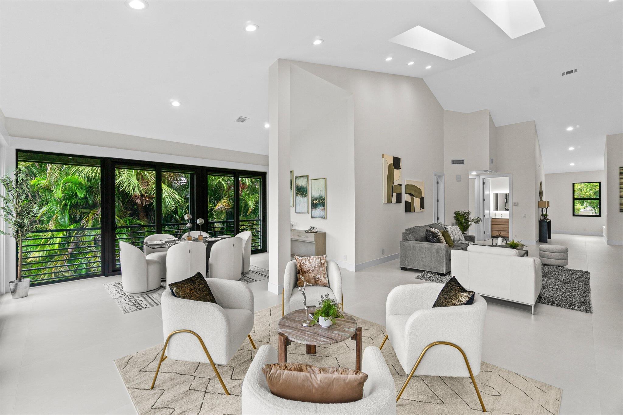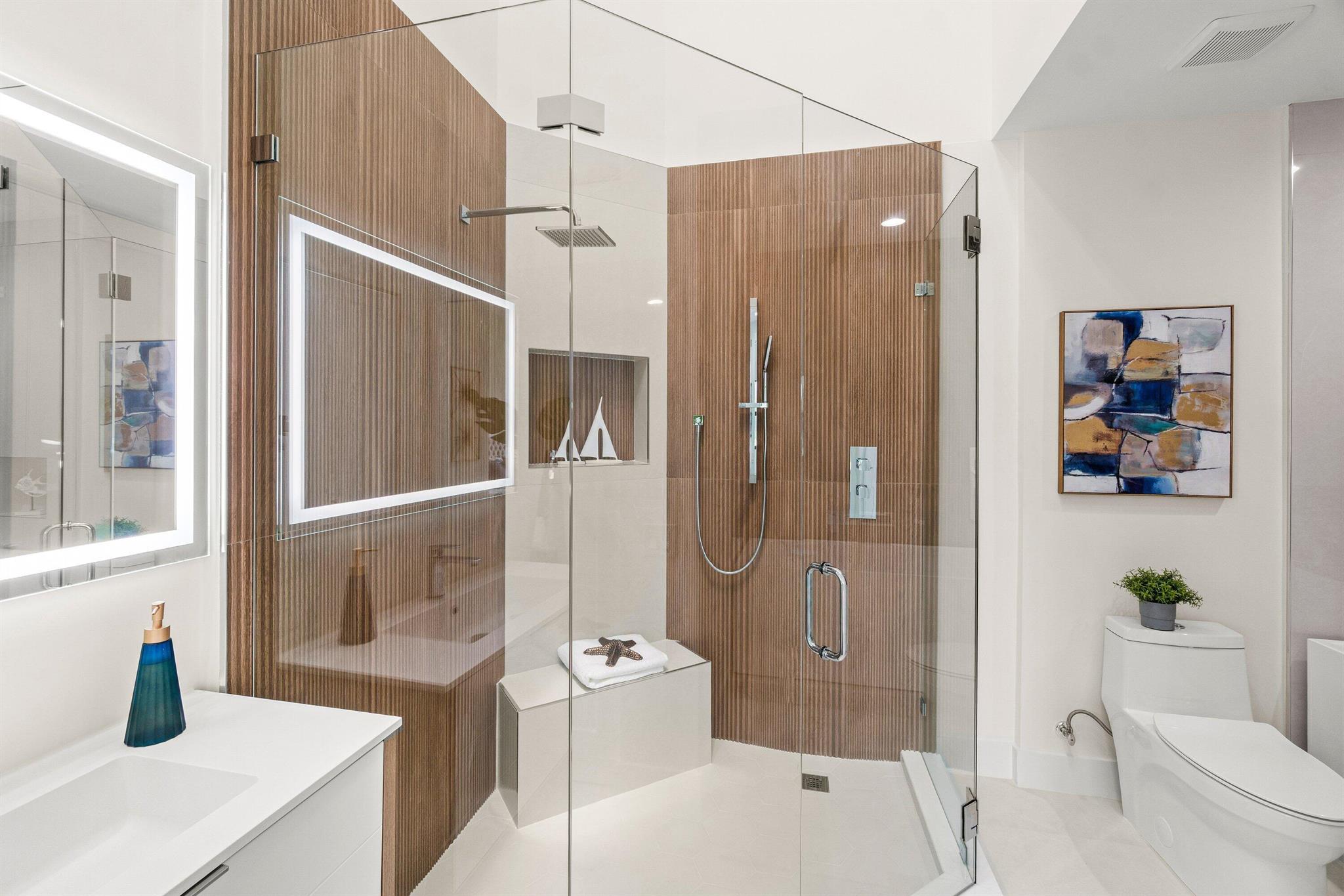 With a spectacular picture-perfect view of the lake and golf course, this fully renovated second-floor condo was just completed. The residence features 3 bedrooms, 2.5 bathrooms, and a custom designer chef's kitchen with Cafe appliances, abundant cabinet and storage space, and a wine cooler. High-end finishes include 48'' x 48'' porcelain tile flooring, impact windows and doors, LED lighting, and backlit and front-lit mirrors in the bathrooms. The home also offers the convenience of a private interior elevator, LG washer and dryer, 2024 roof, and a 2017 AC unit.