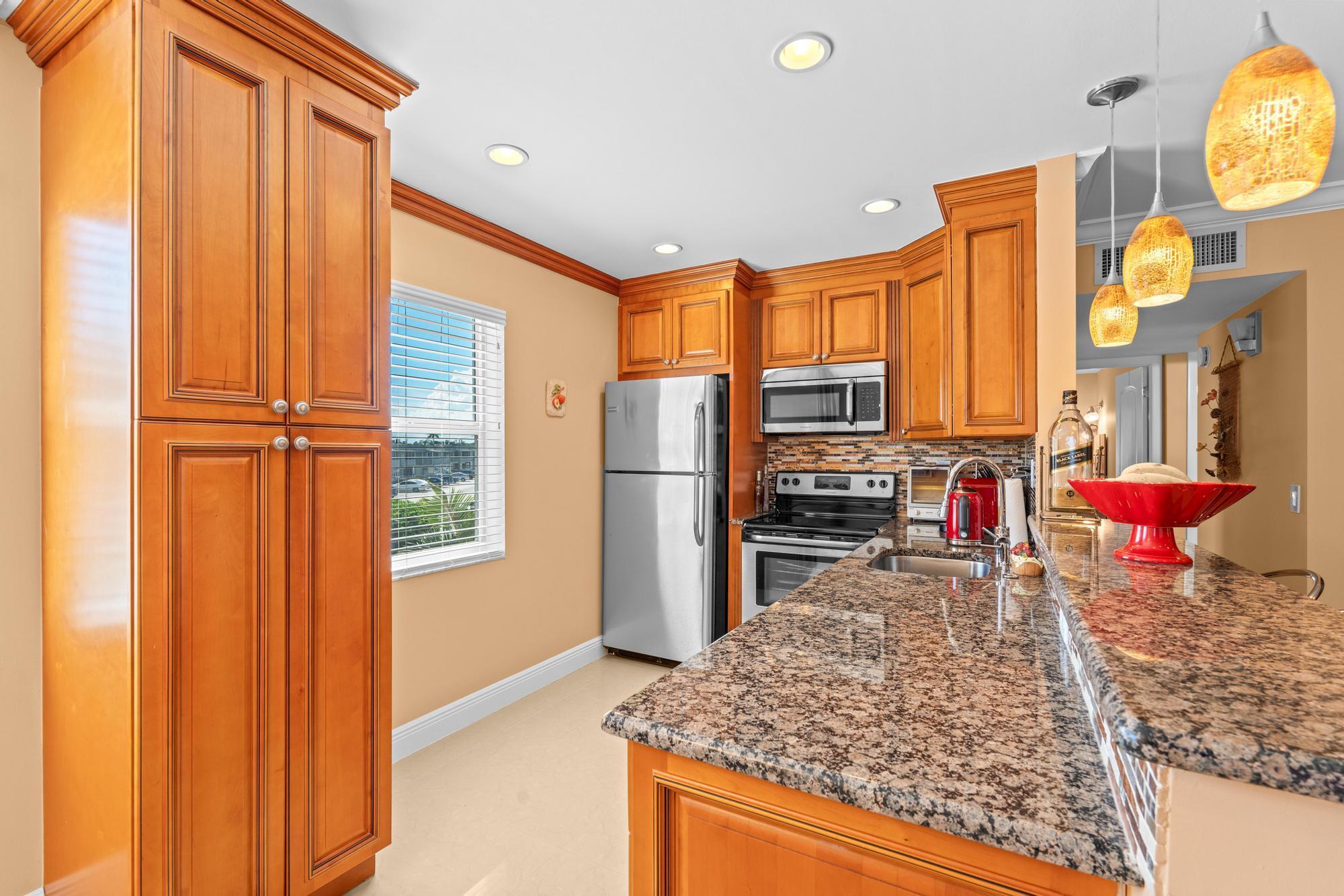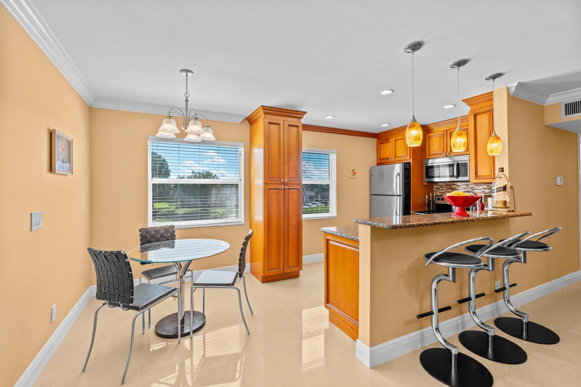 Stunning 2 Bed, 2 Bath Corner Unit with Breathtaking Views! Experience exceptional luxury in this fully renovated corner unit featuring high-end appliances, premium materials, and exquisite furniture. Enjoy gorgeous golf and canal views from the large balcony, which includes a rare convenience: a new laundry and sink. This bright, airy apartment boasts extra side windows for ample natural light and privacy, with no neighbors on one side. All windows are impact-rated, offering peace of mind and elegance. Don't miss this unique opportunity to own a luxurious, private retreat! Take the chance to own this gem with unparalleled views and top-tier amenities! Best location near the main entrance--walking distance to the clubhouse and nearby stores. Just See it and love it!