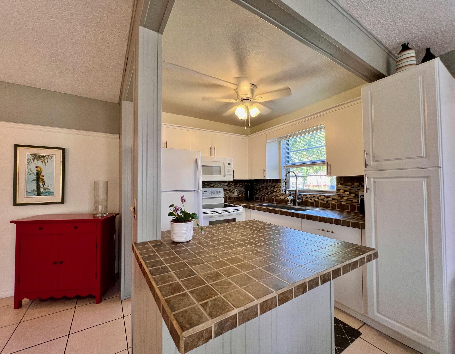 UPDATED & OPEN IN 55+ CENTURY VILLAGE! Light, Bright, and Lovely FIRST FLOOR CORNER 1/1.5 With Open Concept Living Area. Pretty Updated Kitchen Featuring Crisp White Cabinets, Breakfast Bar, and Window for Natural Light Overlooks the Living Area. Updated Baths. Neutral Tile Flooring Flows Throughout. Spacious Bedroom Suite W/ Wall of Closets, Access to the Enclosed Lanai, and Full Updated Ensuite Bath with Tub/Shower. Well Maintained; Water Heater 2024, AC & Electrical Panel -5 years, and Roof 2020. Quiet Tucked Away Location Yet Close to the Dorchester Pool & Hastings Fitness Center. Sold Furnished As Shown With Tasteful Gently Used (Seasonally) Furnishings. Century Village Is A Vibrant Community Centrally Located in Highly Desirable Palm Beach County! Enjoy An Active 55+ Lifestyle......