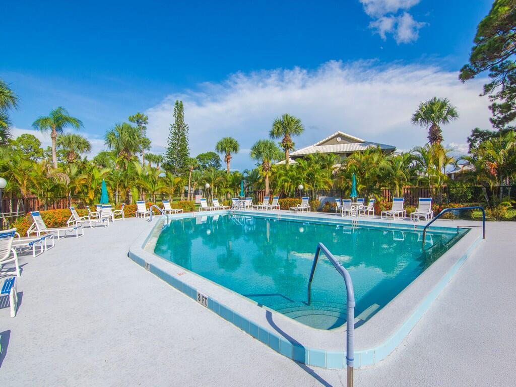 Discover a rare opportunity to own a spacious 1,688 sq. ft. condo perfectly situated next to the pool in the desirable Camelot Gardens community. This 2-bedroom, 2.5-bathroom home offers a versatile blank canvas ready for your personal touch. Both bedrooms feature private balconies, providing a relaxing retreat with views of the landscaped grounds. The main living area opens to a screened patio, ideal for enjoying the Florida lifestyle year-round. Residents enjoy a wide array of amenities including a clubhouse, library, pickleball, tennis, shuffleboard, and a sparkling pool - all just steps from your door. Conveniently located near shopping, dining, parks, and beaches, this property combines comfort, space, and exceptional community living . All measurements are a approximate
