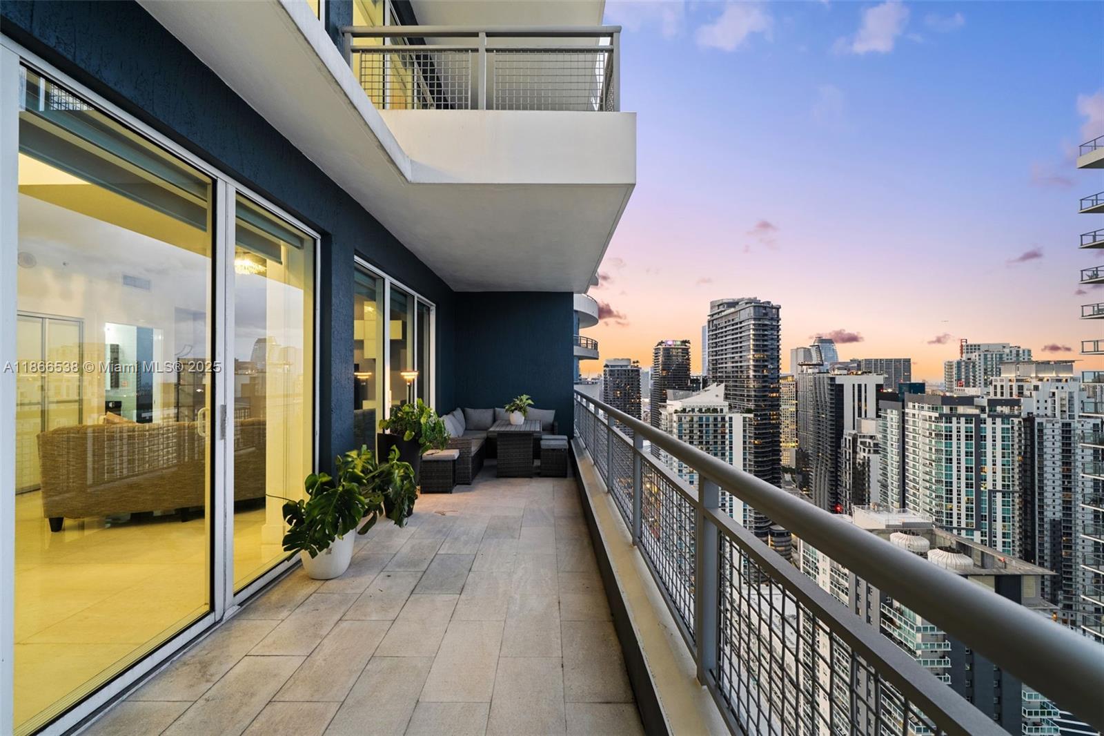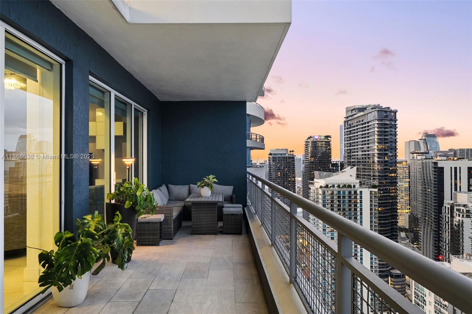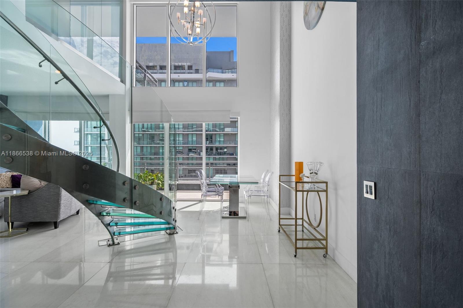 Welcome to this beautiful 2-Bed/3-Bath fully furnished loft-style residence at Infinity Brickell. Perched on the 46th floor, this home offers both volume and versatility, with double-height ceilings, floor-to-ceiling impact windows, creating a light-filled atmosphere and showcasing views of the city skyline and Bay. Spacious open-concept living and dining areas feature marble flooring throughout, custom glass staircase, and two private terraces that extend the living space outdoors. The primary suite offers a spa-like bath, while the lofted 2nd bedroom provides flexibility to serve as a guest room, office, or media lounge. Each of the bathrooms have been tastefully renovated. Full-service building with rooftop sundeck, jacuzzi, pool, gym, spa, party room, & 24/7 security. 1 parking.