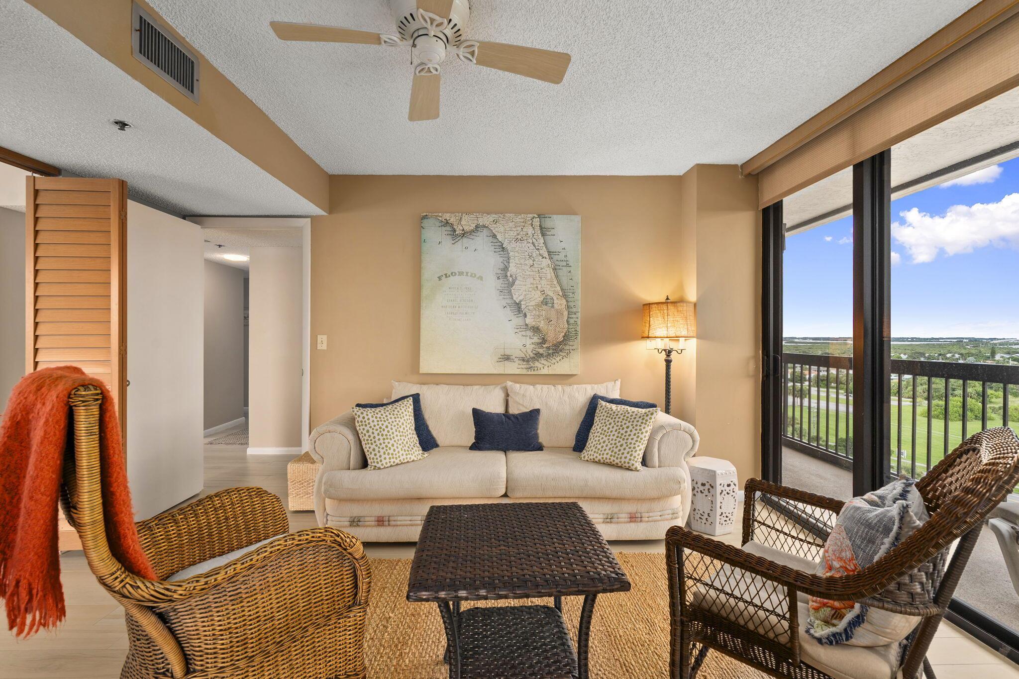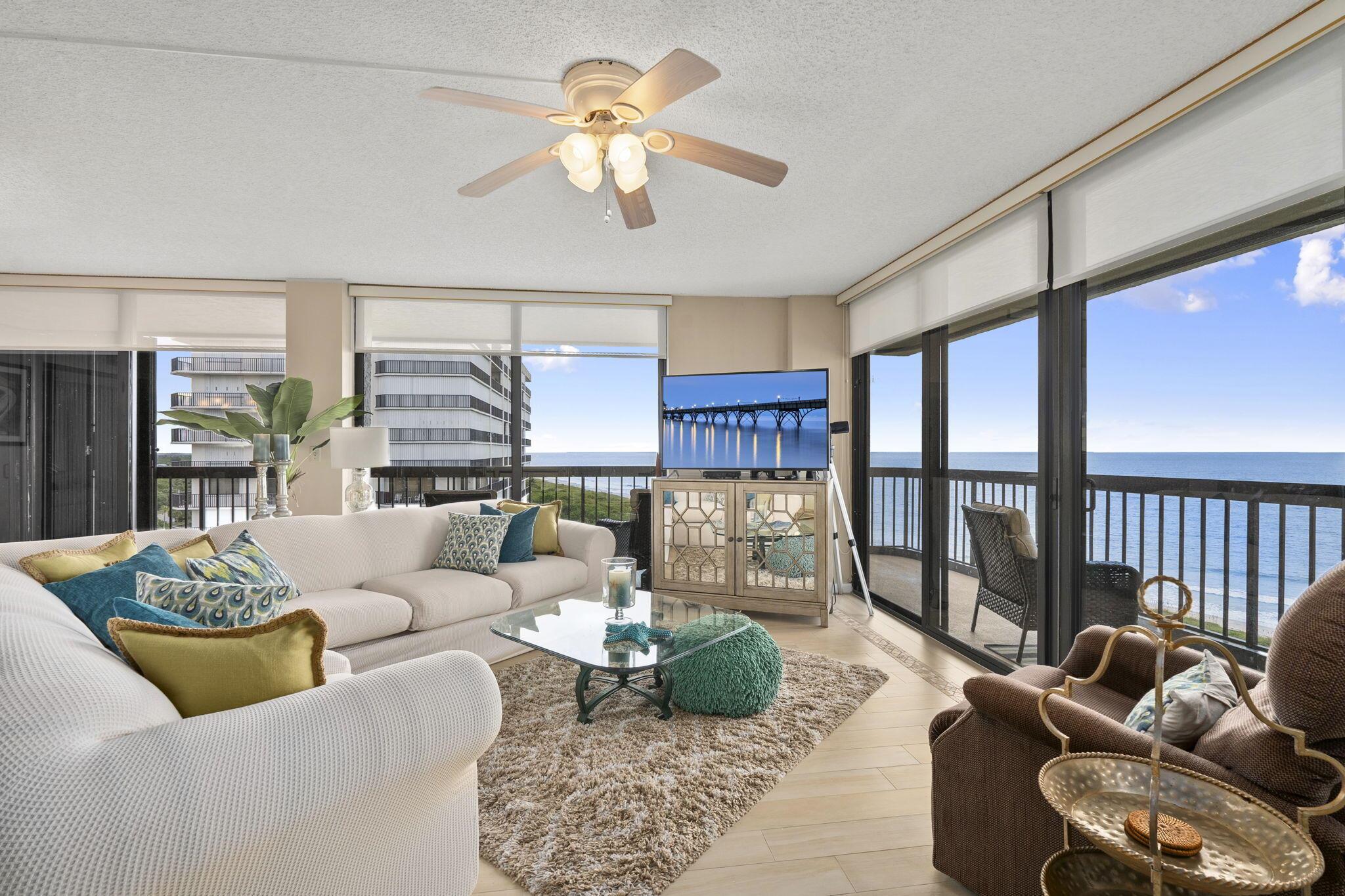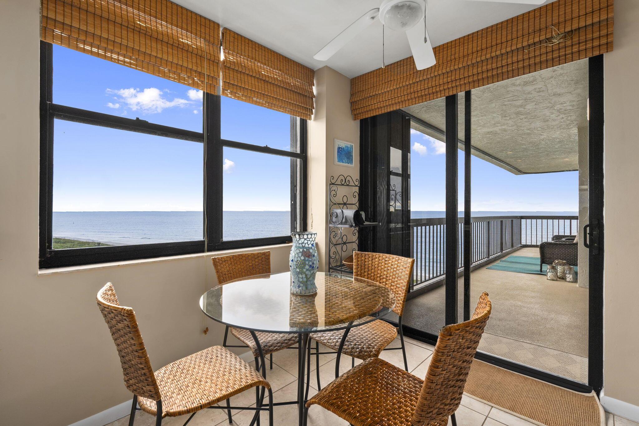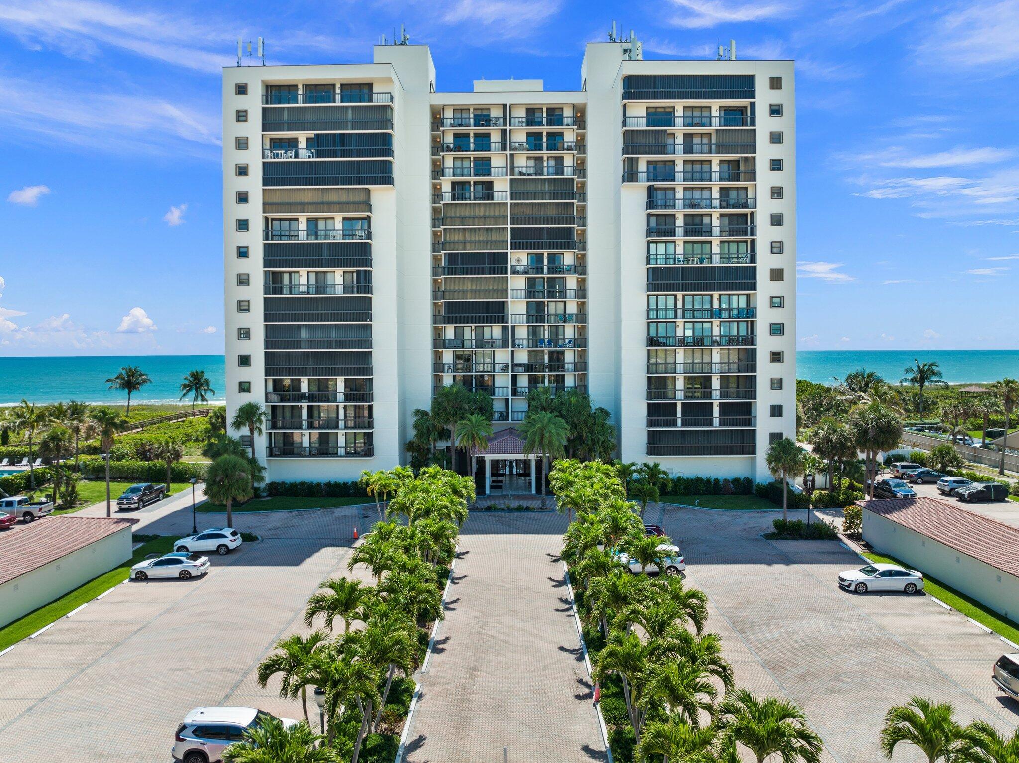 WOW! Breathtaking views from this 12th-floor corner unit with wraparound balcony access from every room! Enjoy sunrises, sunsets, and a virtually private beach in a gated community. Spacious 2BR + den (or 3rd BR) with over 1,600 sq ft, Italian porcelain plank tile, large kitchen, impressive storage, and in-unit laundry. 60-day rentals allowed + 2 small pets! One assigned parking, extra storage, county-only taxes, and all milestone/SIRS work completed. Minutes to Vero Beach & Downtown Fort Pierce. Affordable coastal living on an accreting (growing!) beach. Don't miss this rare find!