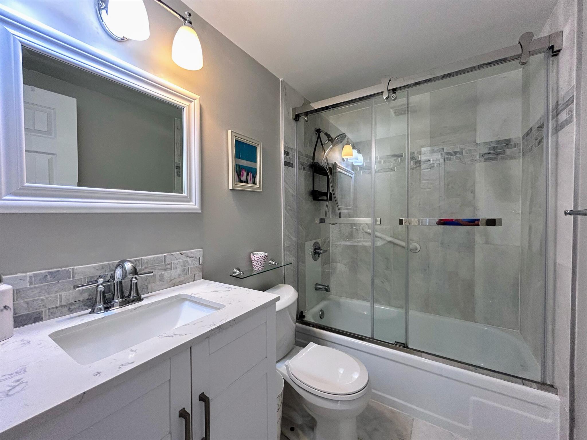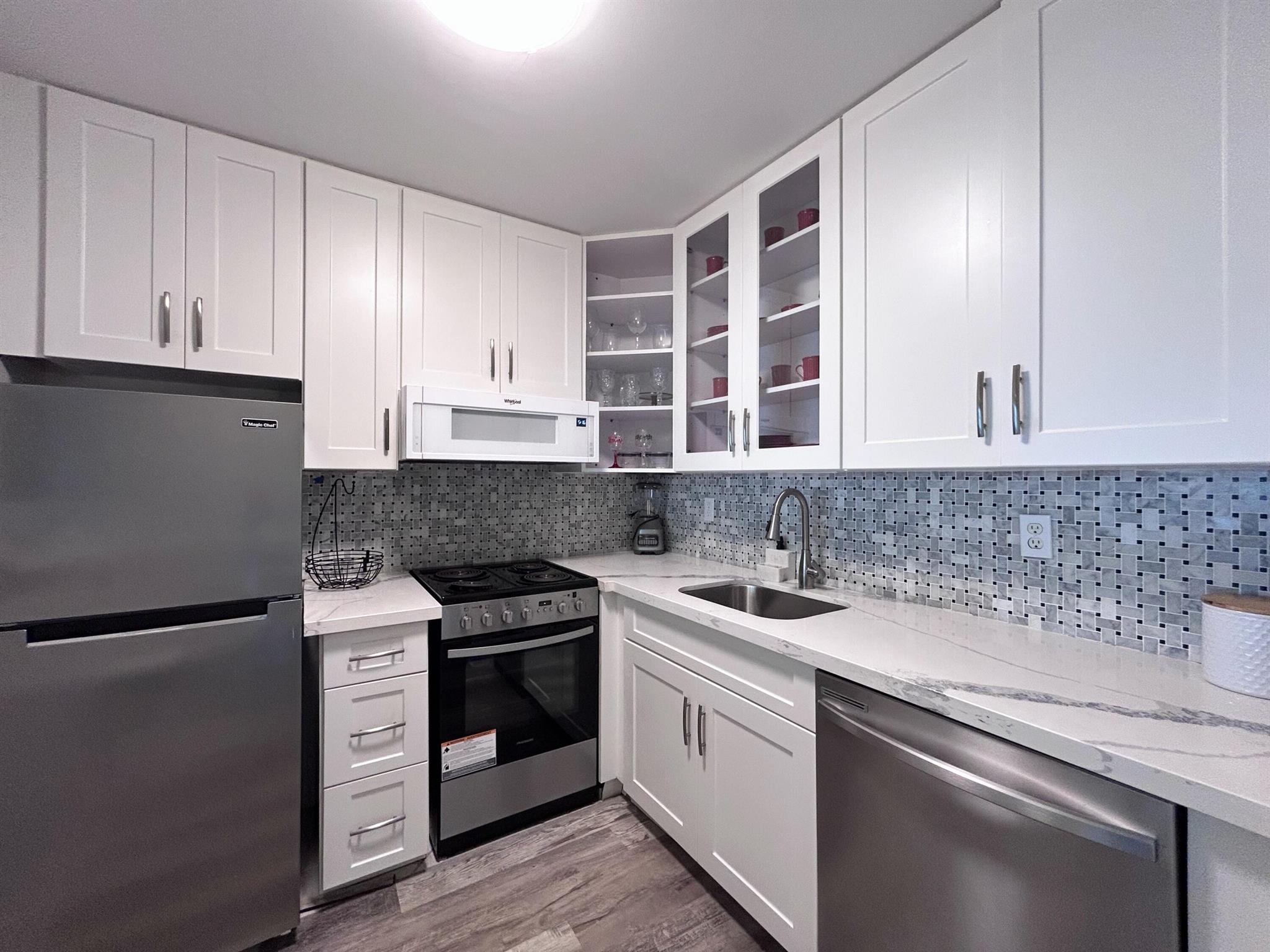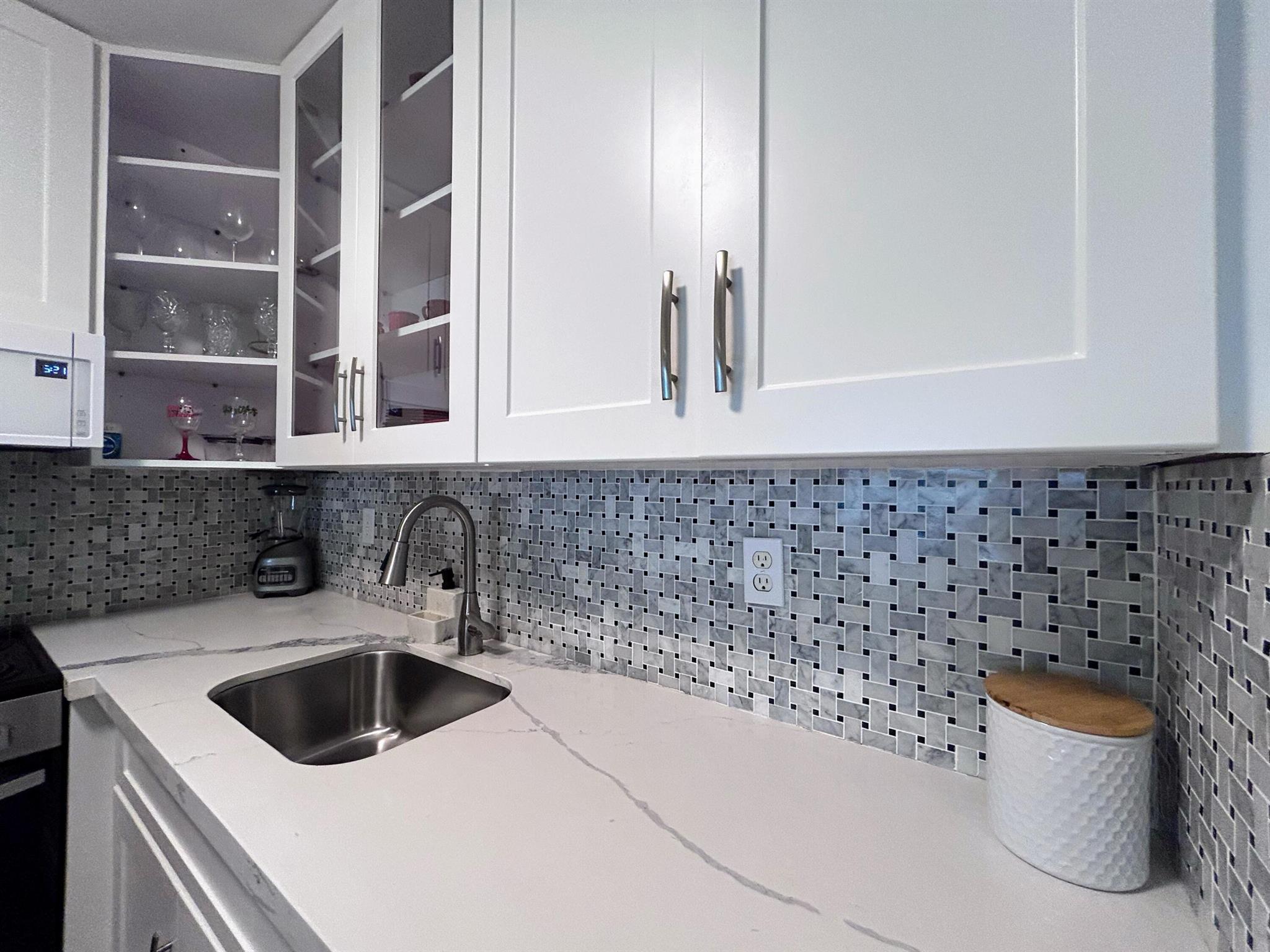 REALLY NICE REMODELED 3RD FLOOR CONDO IN 55+ STERLING VILLAGE. ELEVATOR AND ALL CONCRETE BUILDING ON NORTH END OF COMPLEX. PEDESTRIAN GATE AT END OF SIDEWALK LEADS TO BOYNTON MARINA 1/2 BLOCK AWAY THAT HAS WATERFRONT RESTAURANTS, BOAT CHARTERS, ETC. EASY WALK OR BIKE RIDE ACROSS DRAWBRIDGE TO BOYNTON OCEANFRONT PARK DIRECTLY ON THE ATLANTIC OCEAN. CONDO IS TASTFULLY STAGED WITH OWNER'S FURNITURE WHICH WILL BE MOVED AT CLOSING. BOTH WALL MOUNTED TV'S (IN LR & BR) WILL BE REMAINING WITH SALE. SOME OF UPGRADES INCLUDE NEW ELECTRIC PANEL, LUXURY VINYL PLANK FLOORING, WHITE SHAKER CABINETS TO CEILING, QUARTZ COUNTERS & DECORATIVE BACKSPLASH, APPLIANCES WHICH INCLUDE DISHWASHER, ENLARGED PASS THRU WINDOW FROM LR TO KITCHEN, BLING LR LIGHT, & MUCH MORE. BATH HAS LARGE 24''X 12'' TILES (TO PG 2