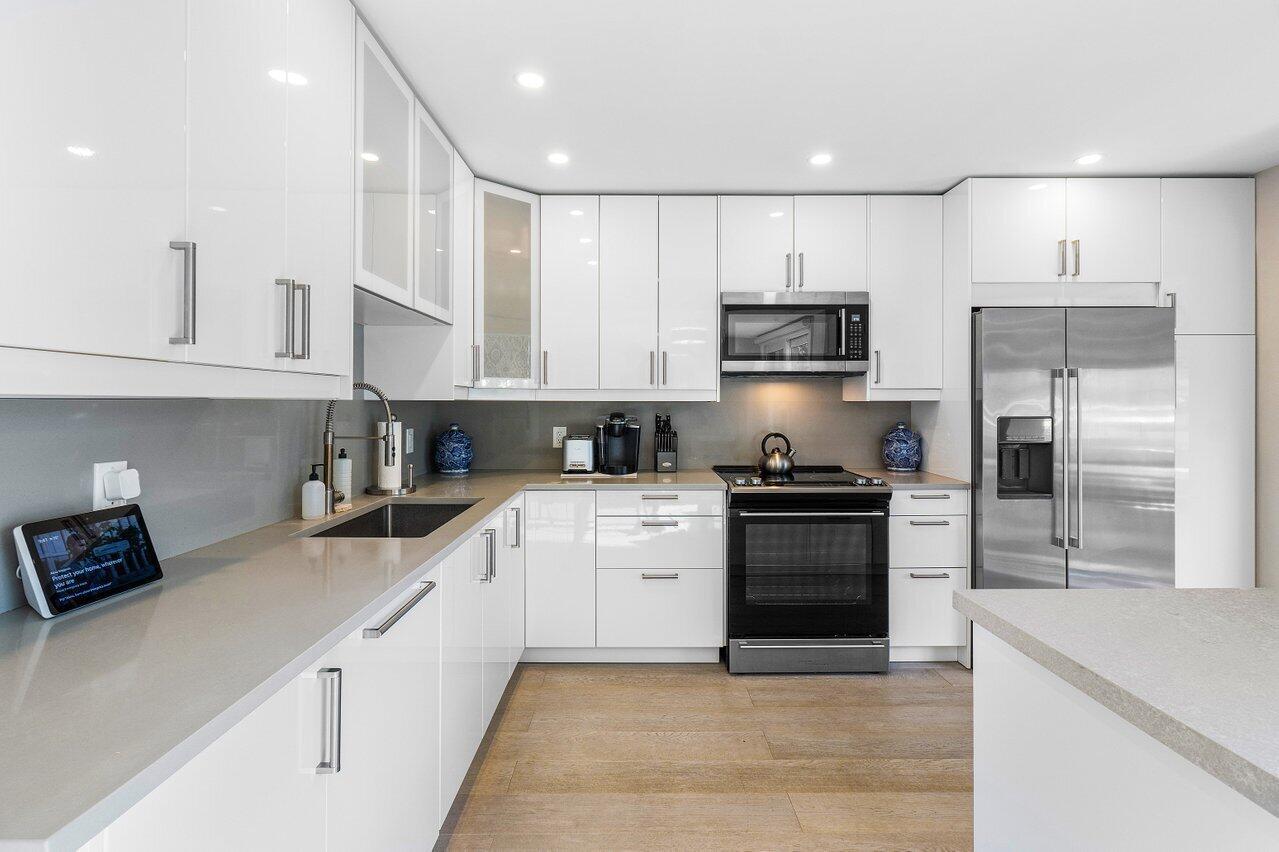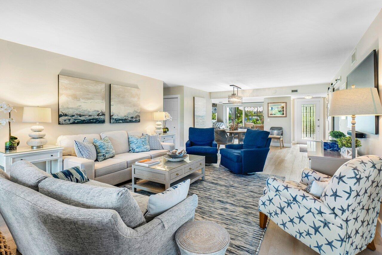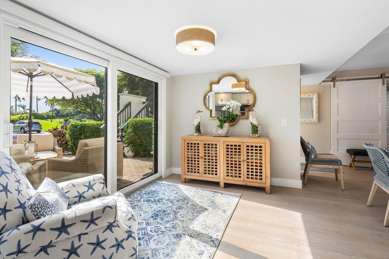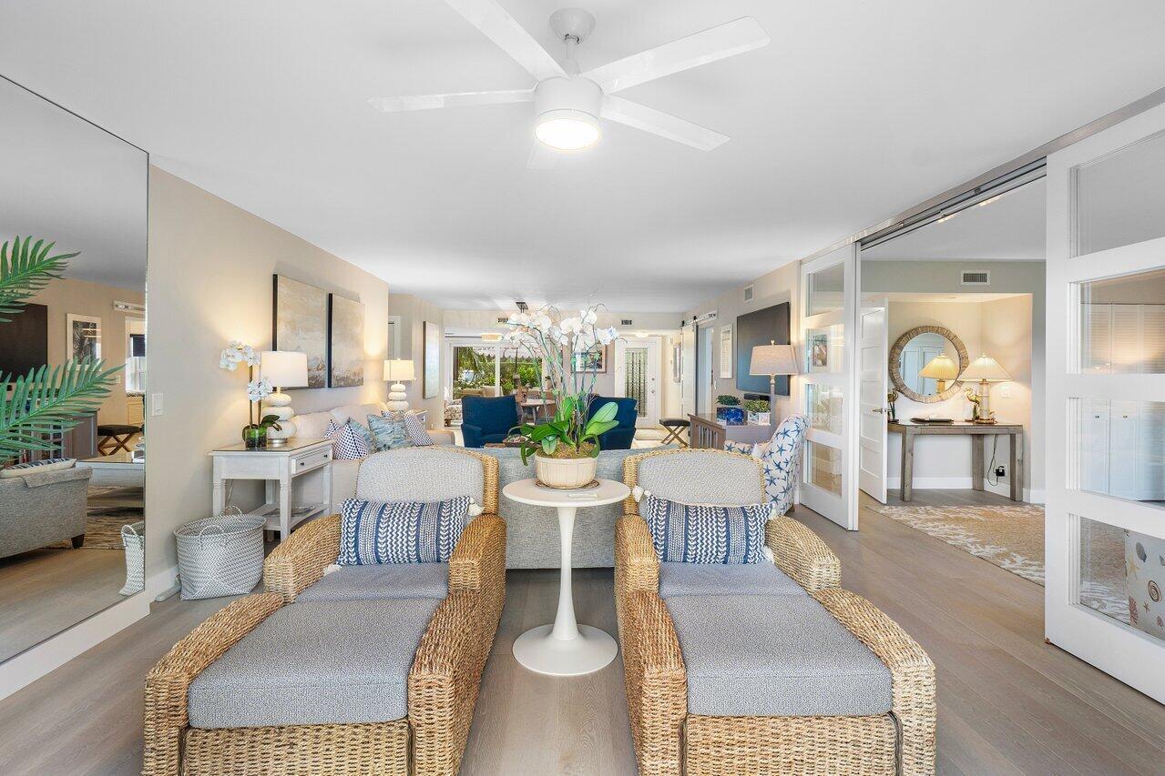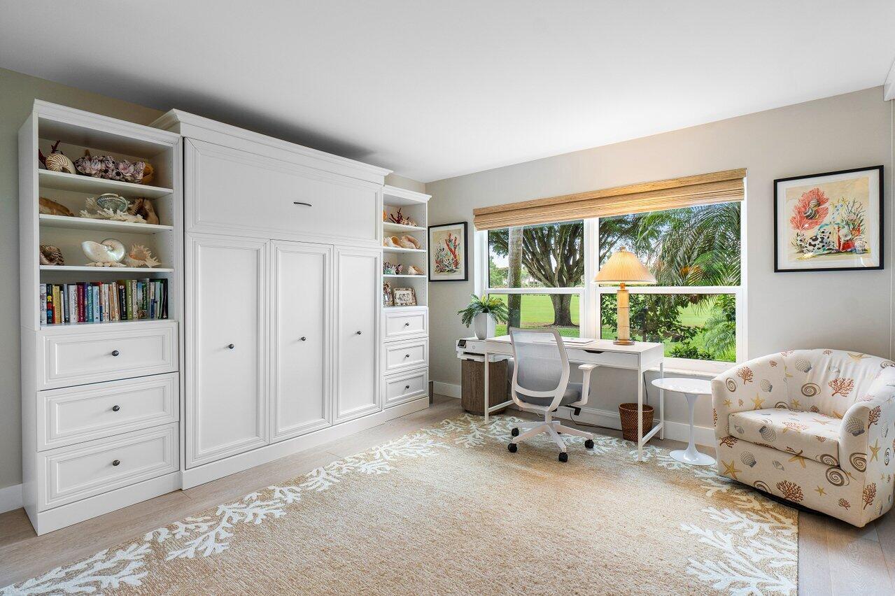 Beautifully renovated 3-bedroom, 2-bath first-floor residence, offering double fairway views of the newly renovated North course. With all impact glass windows, you'll enjoy peace of mind and energy efficiency. The open floor plan features a spacious living area that seamlessly flows into the updated kitchen, complete with sleek white cabinetry and elegant countertops. The kitchen also boasts a built-in banquette in the breakfast area. The den offers a convenient Murphy bed for added flexibility, whether used as a guest room or home office. Step outside onto your private open patio, perfect for relaxing and entertaining. Quail Ridge offers many upscale amenities - golf, tennis, pickle ball, clubhouse with dining and social events all in a vibrant community atmosphere.