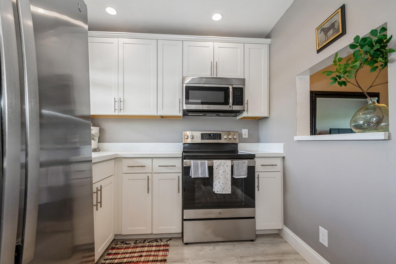 Beautiful one bedroom one bathroom lakefront condominium. This immaculate gem has been fully remodeled with tastefully finishes. Vinyl flooring throughout. Gorgeous kitchen with Quartz countertop and newer stainless steel appliances. Living area and screened balcony overlooking a beautiful peaceful lake. Spacious bedroom with walk-in closet. Enjoy the superb amenities this 55+ active community has to offer, such as a clubhouse, indoor & outdoor pools, fitness center, theater, library, golf and more. Well maintained building on a very private and quiet location, at walking distance to one of the community's pool. Easy access to shopping, restaurants, parks, medical facilities, and entertainment. Plenty of guest parking.