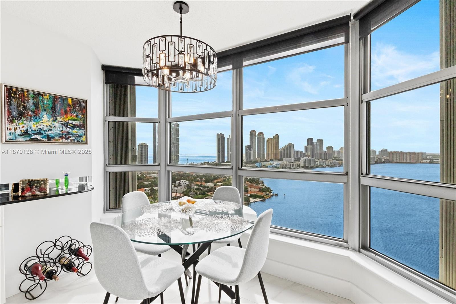 Outstanding views of the Ocean, Intracoastal, and south to downtown Miami. Wrap-around balcony, floor-to-ceiling windows with tons of natural light, beautiful porcelain floors throughout, beautiful upgrades, principal suite with tub and walk-in closet, laundry room with full-size washer and dryer. Hurricane shutters, Gated community with resort-style living: concierge, valet, pool, gym, full-service marina, wonderful restaurant, beauty salon, pickleball, and tennis courts. Walk around the complex while enjoying the Intracoastal view. Walking distance to Aventura Mall and Aventura Circle. Pet-friendly.