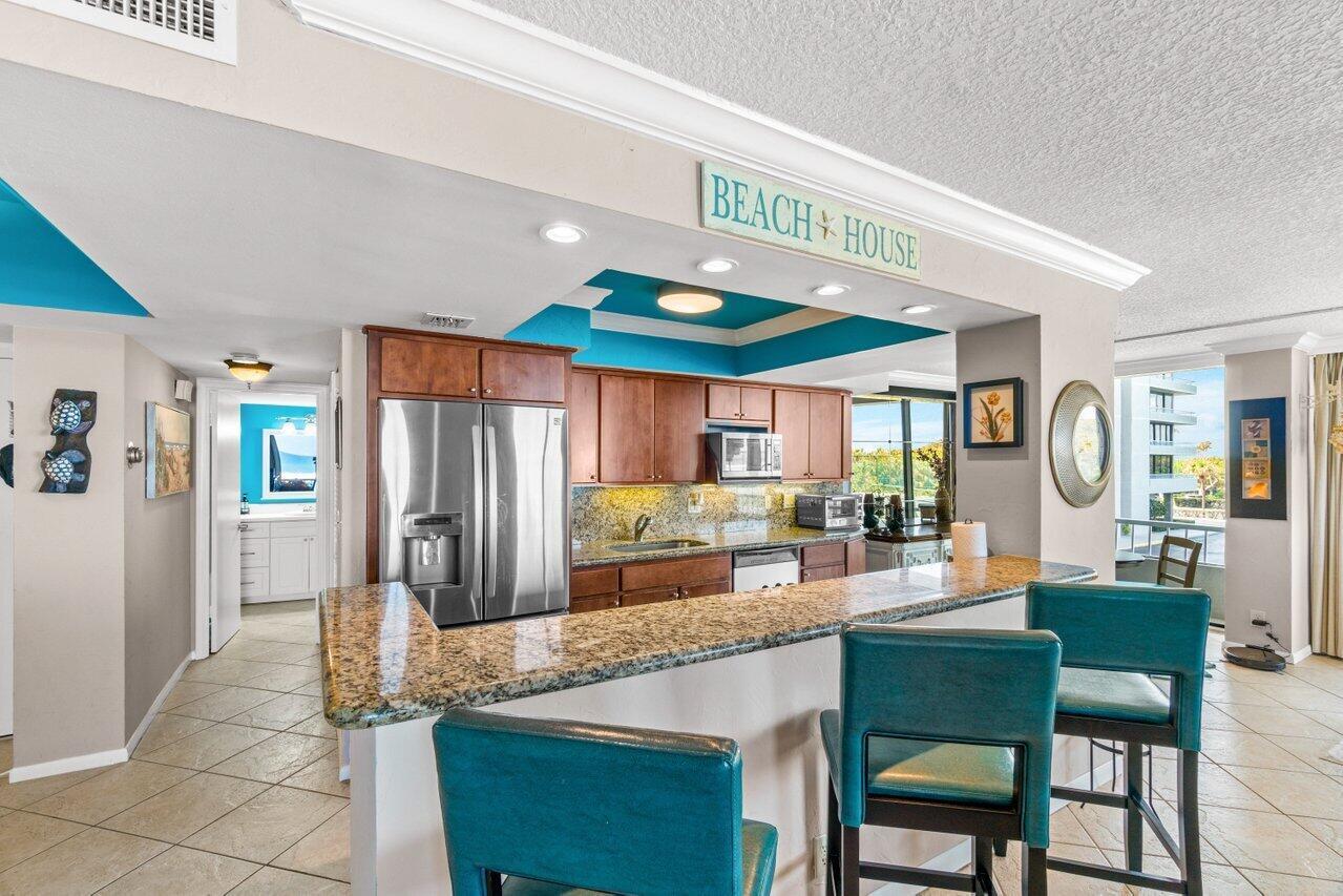 Beautiful 2 BR, 2 BA condo offers an idyllic blend of comfort & coastal charm. Open concept & spacious living areas have ocean view. Granite kitchen, crown molding, impact glass. Nicely remodeled modern lobby. Community has 24 hr manned gate access, new seawall 2022, pool, tennis courts, fitness center, private beach access, shuffle board, putting green & on-site management. Desirable ocean to Intracoastal location close to PGA, Phil Foster Park, Gardens Mall, fine dining, & boutique shopping Embrace the vibrant culture & outdoor adventures making every day feel like a vacation. 1 assigned parking spot, no pets, no time delay for rentals.