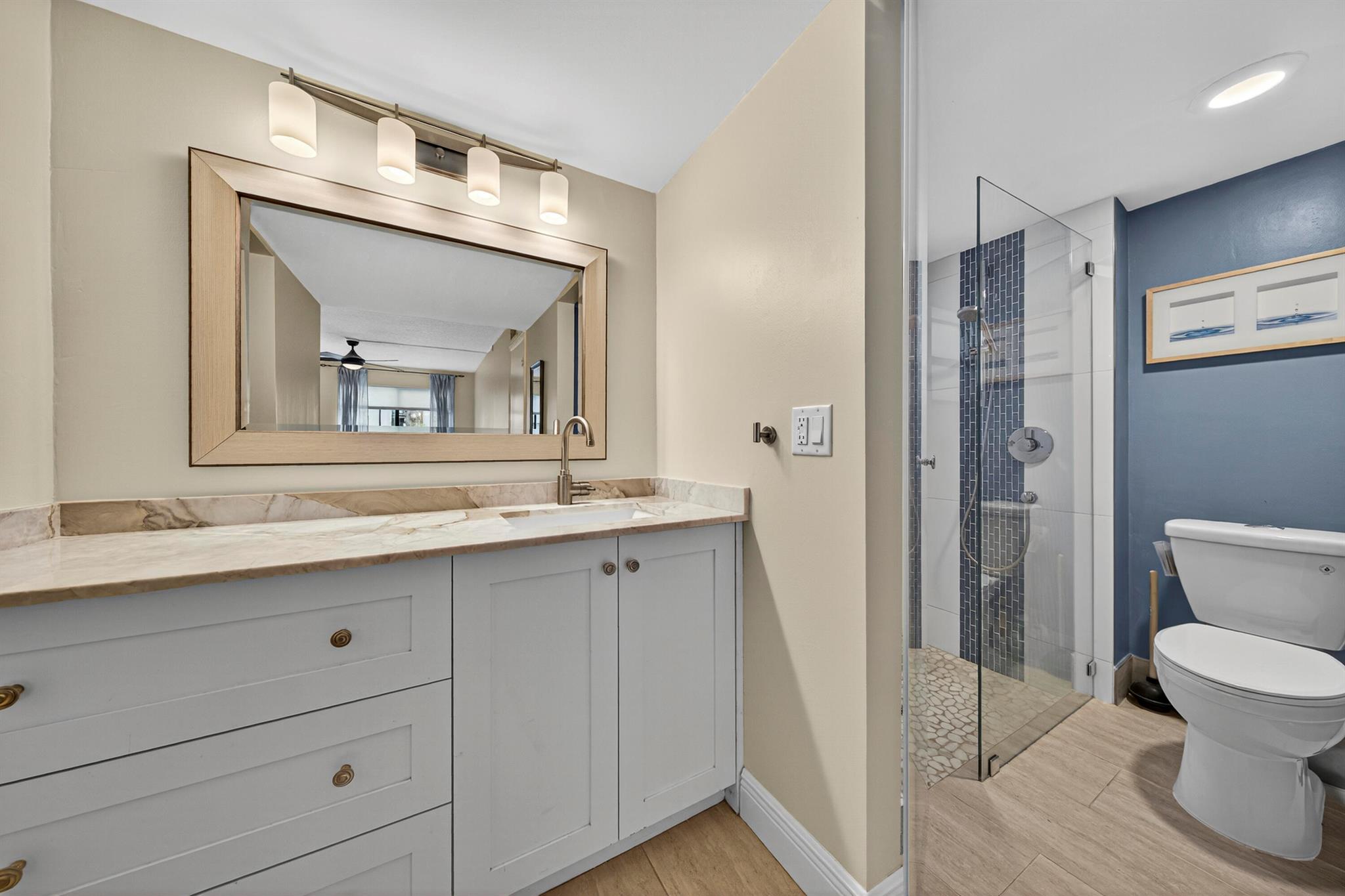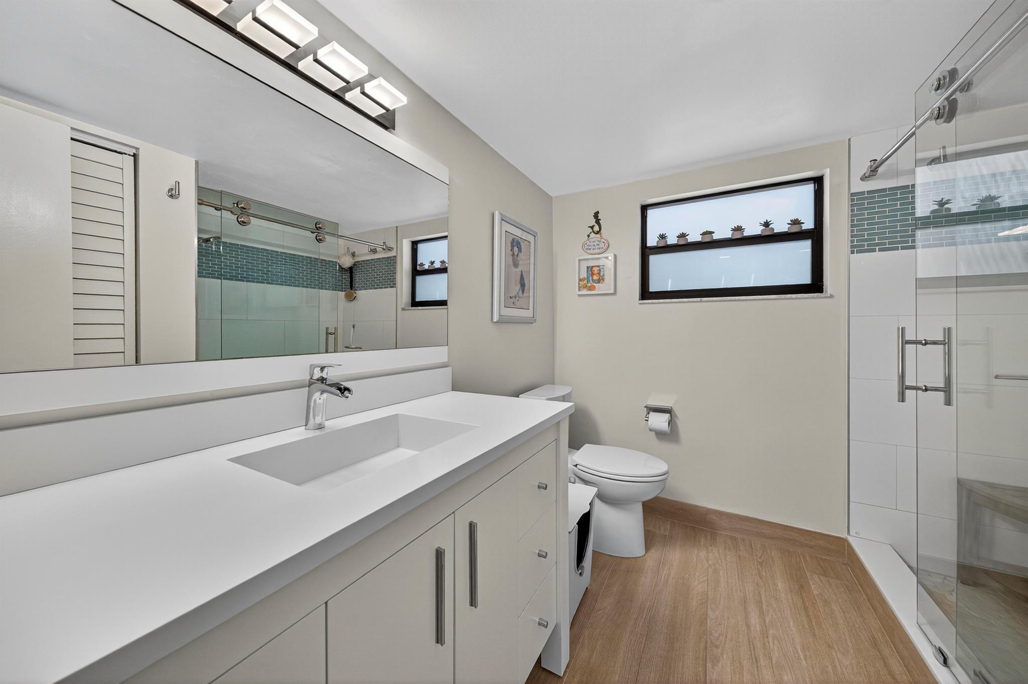East Boca Beauty -- Ground Floor Condo Near Beaches & Entertainment!Live where others vacation! This spacious 2-bedroom, 2-bath ground-floor condo offers 1,286 sq ft of stylish comfort in one of Boca Raton's most desirable locations -- just minutes from Mizner Park, Atlantic Avenue, and pristine beaches.Inside, you'll find expansive bedrooms filled with natural light, a modern kitchen with quartz countertops, and beautifully updated bathrooms. Porcelain tile flooring runs throughout; BRAND-NEW LG washer/dryer, NEW Hot Water Heater. IMPACT-RATED hurricane windows and sliders for added safety and peace of mind. Step outside to your screened-in porch and private patio, with a view of lush greenery and mature trees -- the perfect setting for morning coffee or unwinding in the evening.