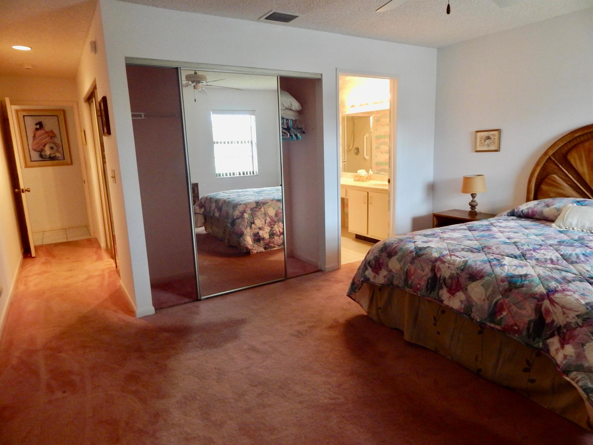 Look No Further as this Condo's East facing Lanai located Mid Lake looking out over the soothing fountain. Vaulted Ceilings, hi-hats, both tile and carpet, A/C 2024, Master has oversized walk in closet plus additional closet, washer/dryer in unit. Walk to All Houses of Worship. Palm Chase lakes offers: Pickleball, Tennis, Walking path, Sauna, Steam, Gym, Outdoor Pool and Spa, Shuffleboard, Billiards, Game Room and Auditorium. Maintenance includes Water, Wi-fi, Cable TV, Landscaping and Amenities.