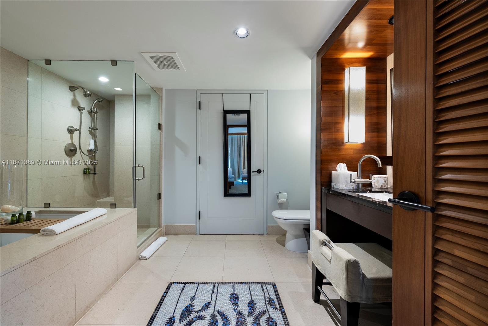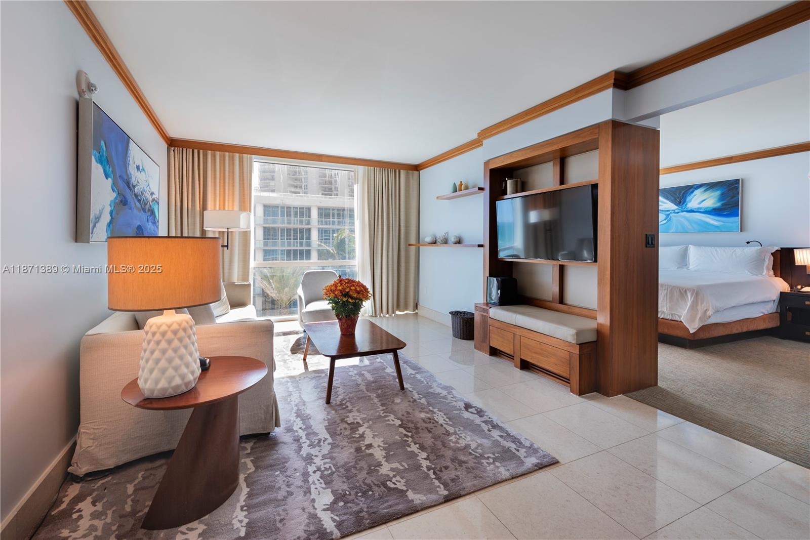 Unique 1 bedroom hotel suite “turn key” ocean view unit with TWO bathrooms at Carillon Miami Wellness Resort, a premier oceanfront luxury property. Unit located on same floor as spa & gym for easy access. Separate bedroom with king bed, living room, kitchenette with 2-burner stove, microwave, dishwasher, washer/dryer combo, under counter refrigerator. Owner receives 8 spaces (names) “resident memberships” for full use of all amenities and classes (offered 7 days a week) at no additional cost. 70,000 sqft fitness/spa center. Concierge; 4 pools; restaurant; pool, beach service, bar, 24hr security, valet, wellness staff. Walking neighborhood with all conveniences-Publix, restaurants, etc. (No balcony.) Live the lifestyle of luxury and wellness that you deserve! Owner financing considered.