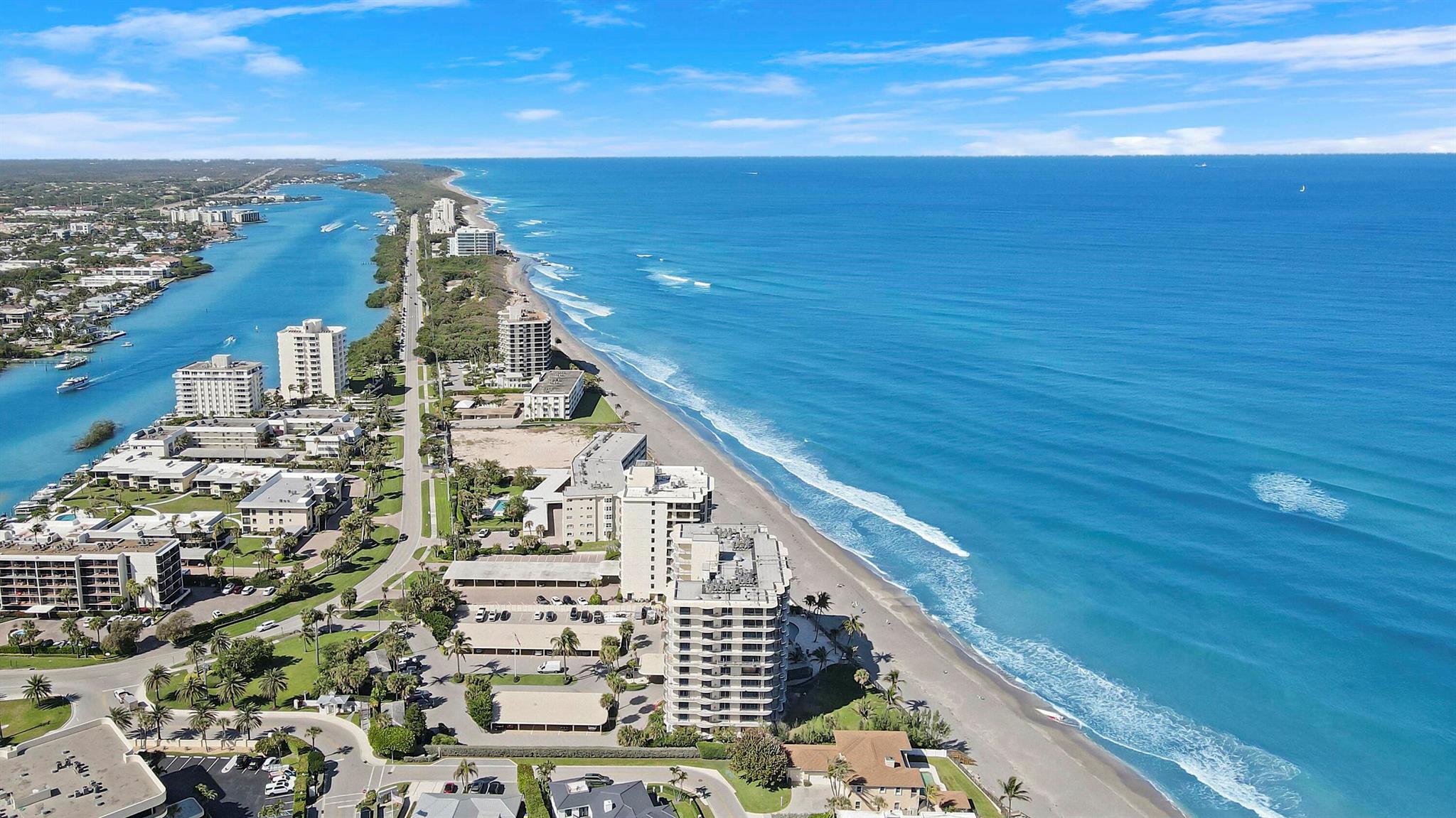This rarely available corner residence on the 8th floor of Ocean Towers South is located in one of Jupiter Island's most highly sought-after buildings. This large split floorpan offers nearly 2,000 sq ft and breathtaking panoramic ocean views . Featuring an expansive wraparound balcony, this condo is filled with natural sunlight and Atlantic Ocean views. Right next to the iconic Jupiter Lighthouse, this residence is part of an exclusive enclave known for its privacy, beauty, and world-class coastal living. With all major assessments fully paid, the building is undergoing a stunning transformation, including brand-new sleek glass balconies that will elevate its modern appeal. This stack has been completed! Now is the perfect opportunity to design this condo to your exact vision.