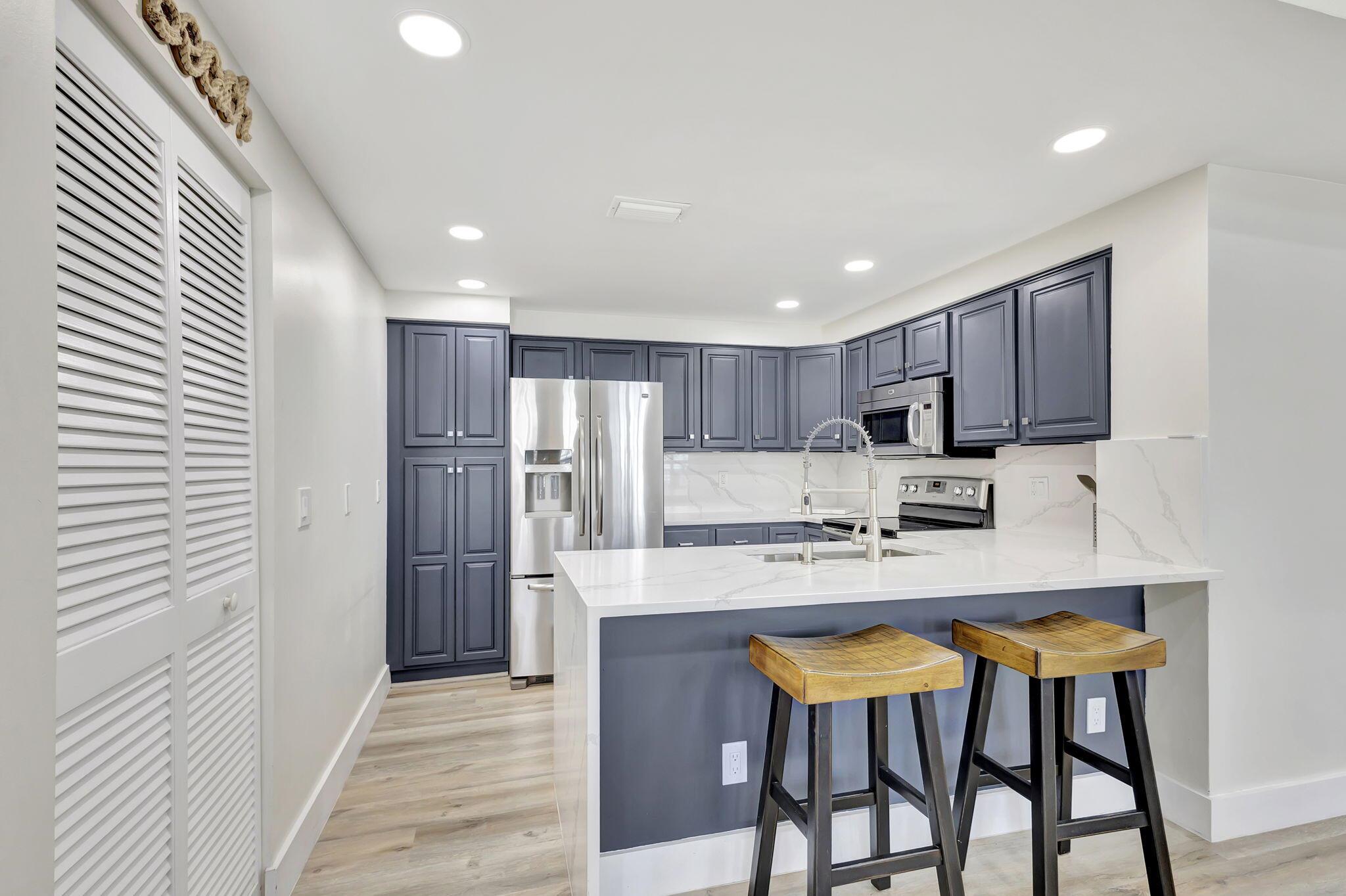 Welcome to Paradise--Just Steps from the Beach! Experience beachside bliss in this beautifully renovated fully furnished condo in the gated, dog-friendly community of Sea Colony. Just a short stroll to Jupiter's pristine, pet-friendly beaches, this bright and airy 2-bedroom, 2-bathroom home features vaulted ceilings, abundant natural light, a spacious open floor plan, private balcony, and 1-car garage. Renovated in Spring 2023, the main living space includes a cozy fireplace, while the dining area opens to the balcony--perfect for morning coffee or evening breezes. The stylish kitchen showcases quartz waterfall countertops, and the primary suite offers balcony access, an ensuite bath, and a custom walk-in closet.