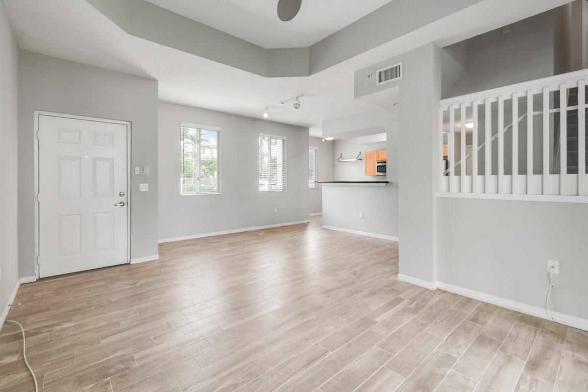 Newly available 3 bedroom2.5 bath condo with ONE CAR ATTACHED GARAGE in the heart of PBG in Legacy Place. The condo offers tile plank flooring on first floor, corner unit custom closets, granite counters & stainless steel appliances.You will love the ammenties that include pool, tennis, pickelball, gym & club house. Centrally located to shopping, I-95, restaurants and much more.