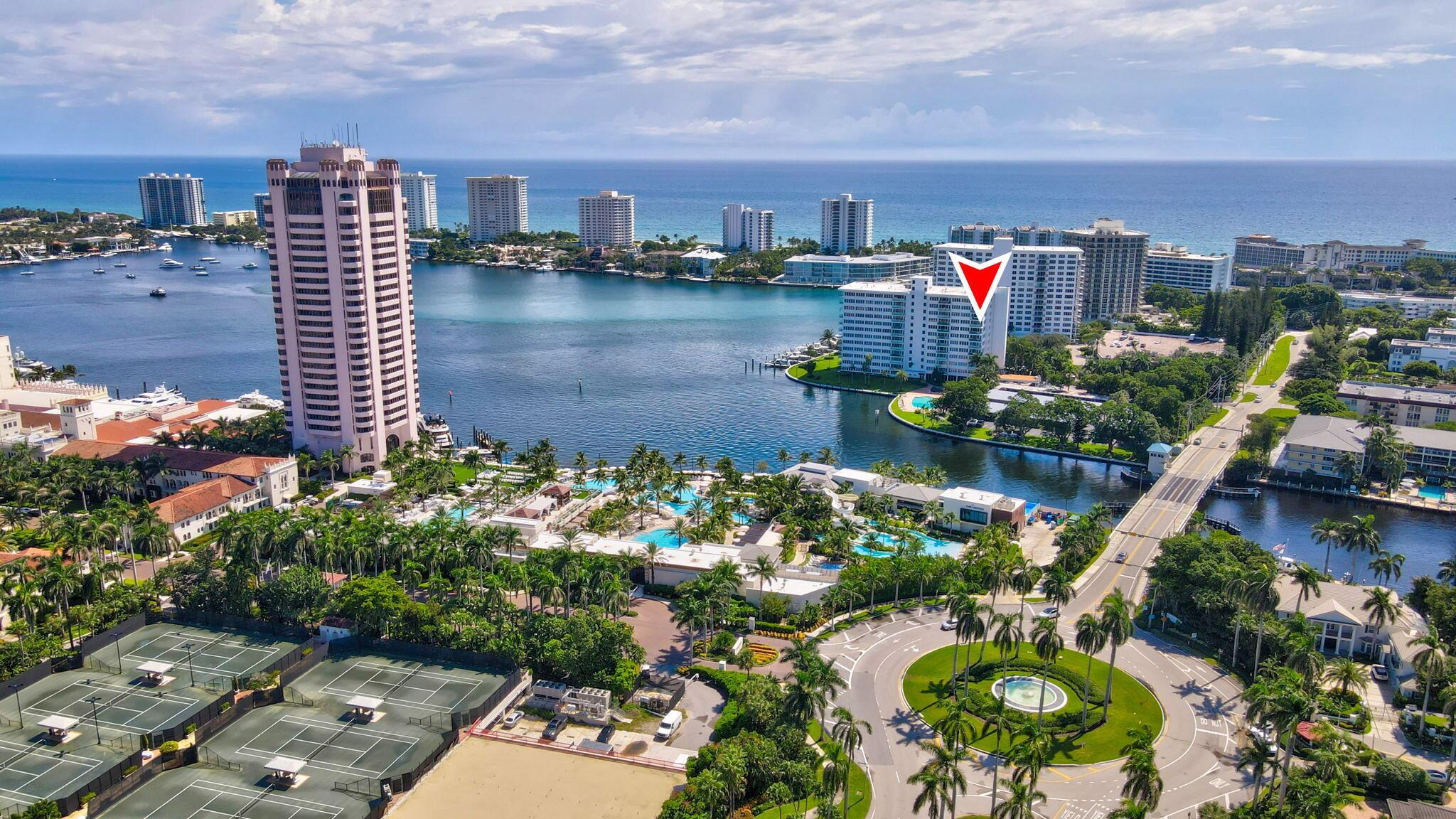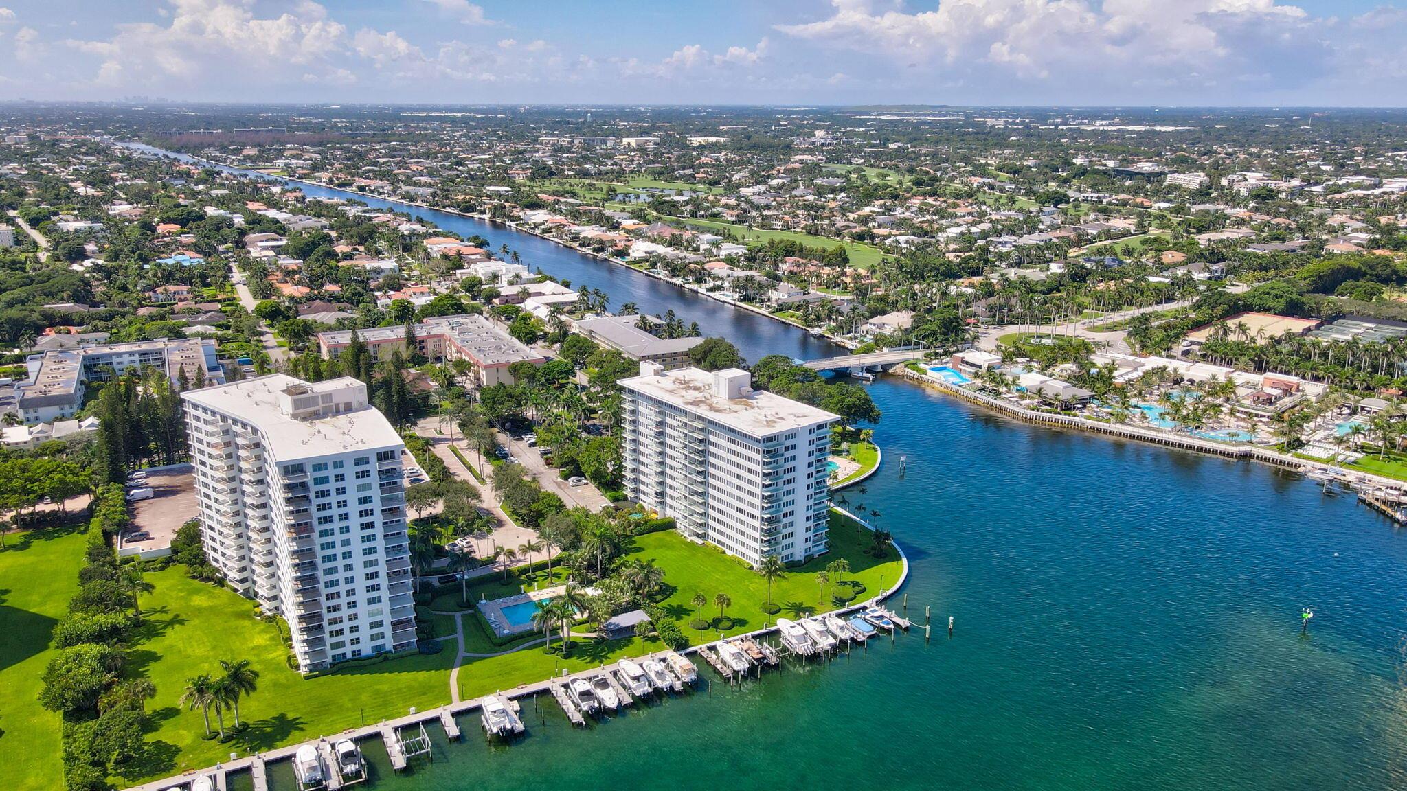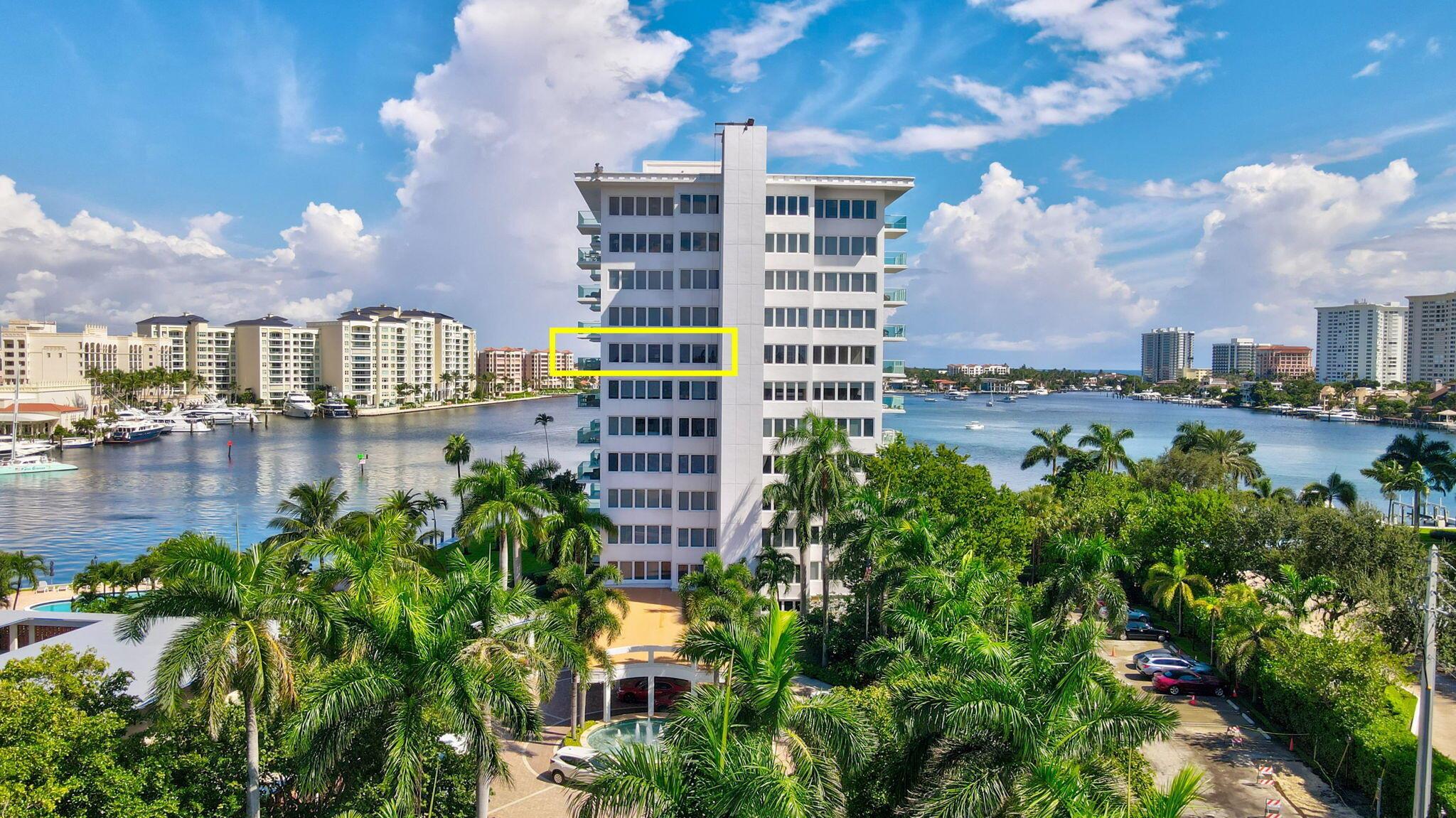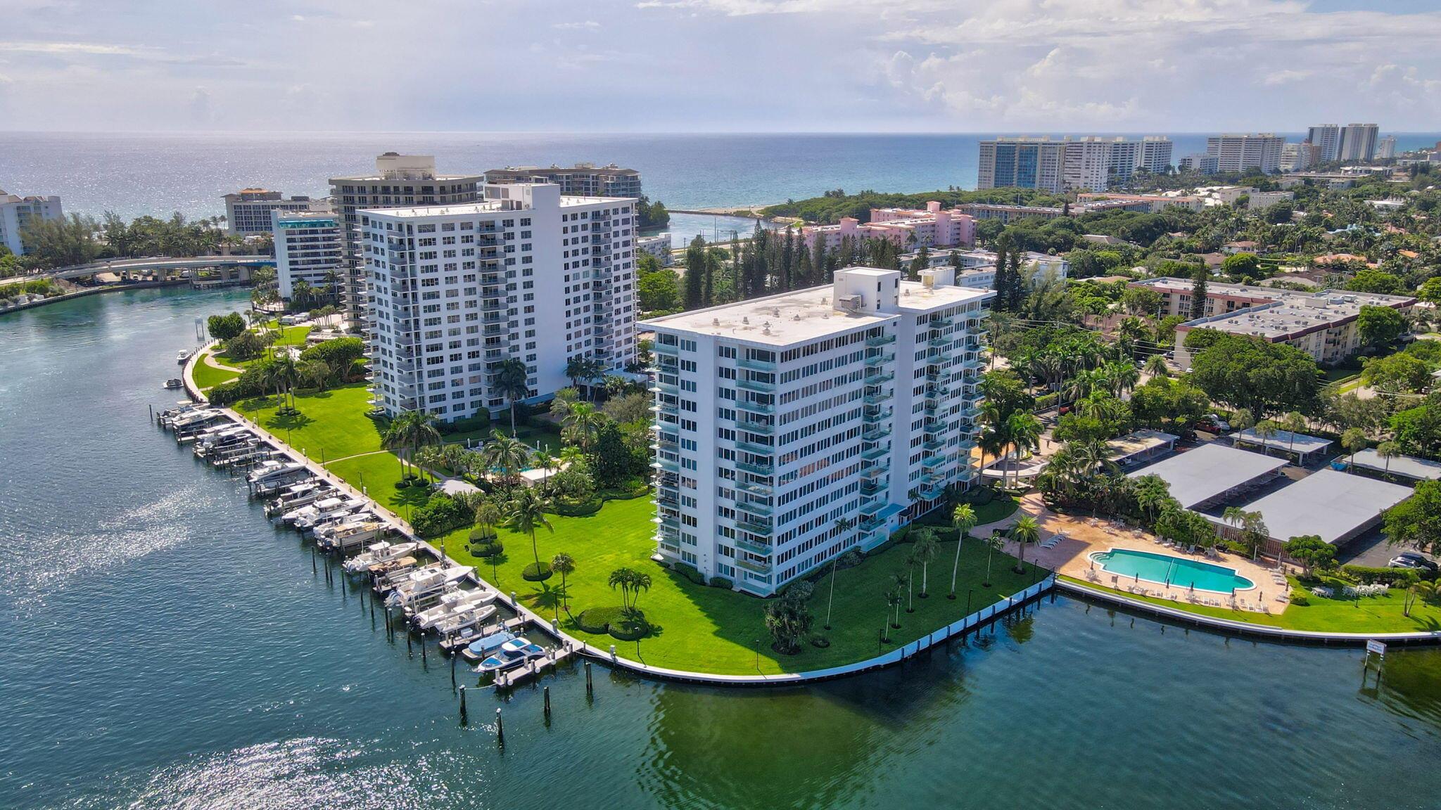 Boca Inlet - Refined Waterfront Living.Residence 8F is a rare high-floor corner apartment in one of Boca Raton's most iconic buildings. This 2-bedroom, 2-bath home offers sweeping southwest views of Lake Boca, the Intracoastal, The Boca Raton resort, and the Atlantic Ocean. Bright and spacious, the residence features open living and dining areas filled with natural light. Boca Inlet has recently completed extensive renovations, including a redesigned lobby, updated hallways, and a grand fountain entry. Amenities include a waterfront pool, community room, two barbecue areas, covered parking, and on-site management, with boat slips available when offered. Ideally located near The Boca Raton Resort and Beach Club, South Inlet Park, Mizner Park, and Royal Palm Plaza.