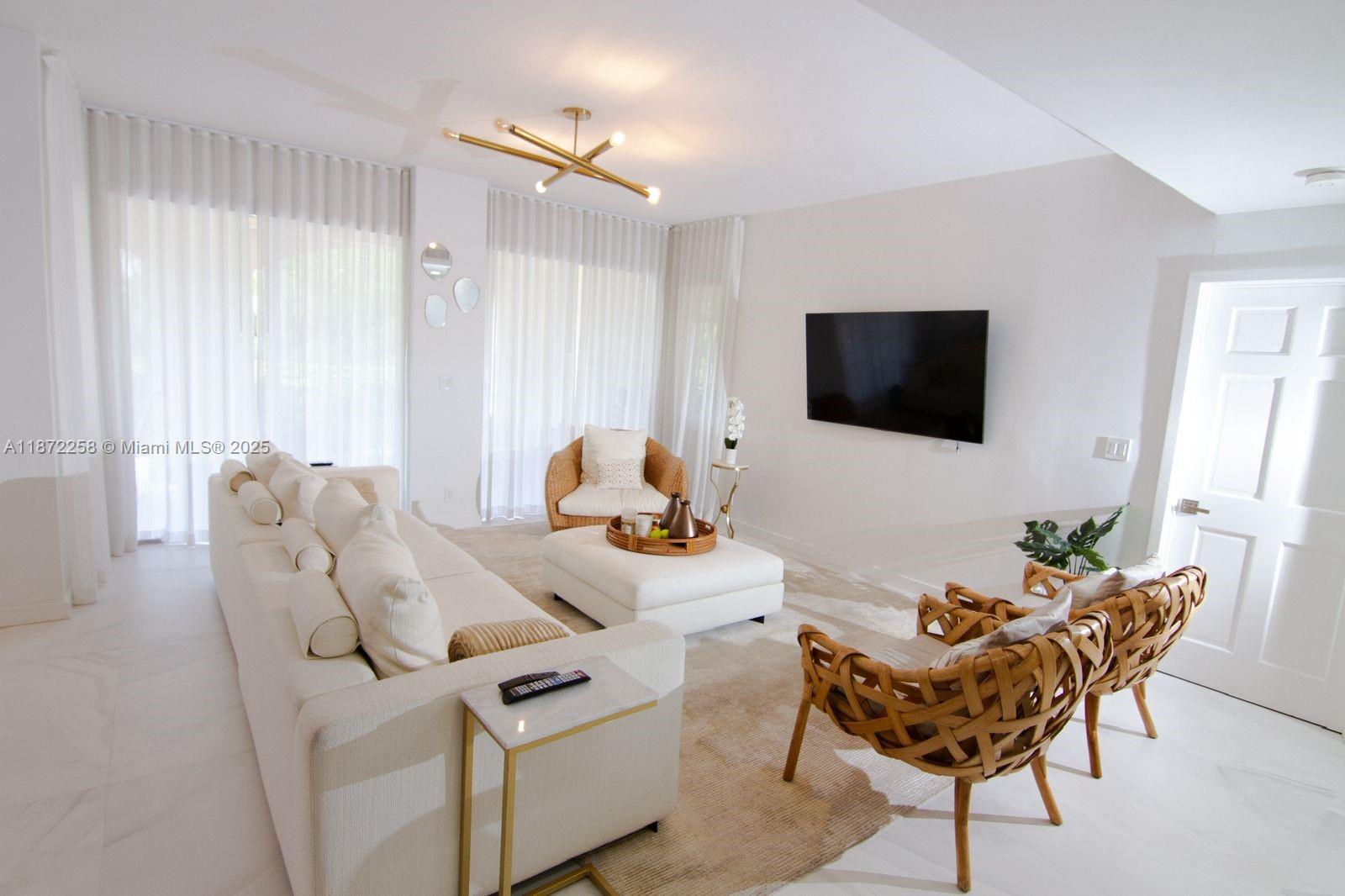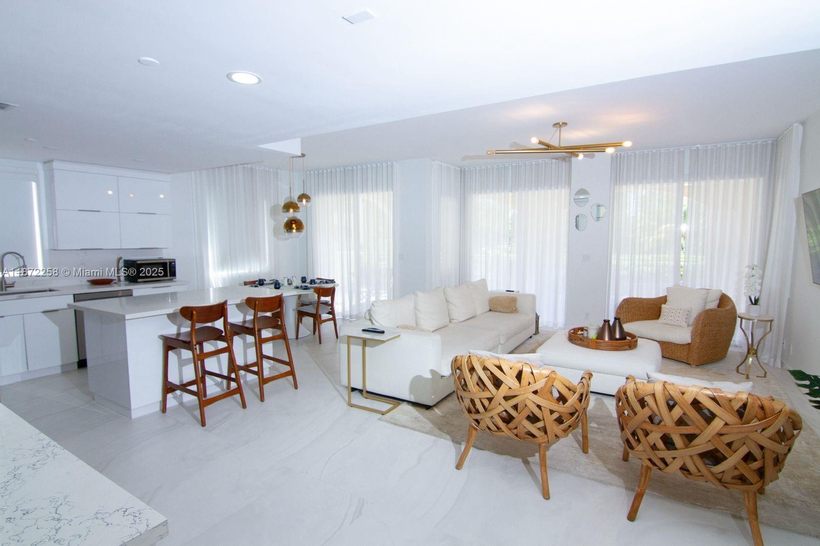 Discover Fisher Island living in this exquisite renovated Seaside Village Condo located on the ground floor. This exceptional residence offers 2 spacious bedrooms, expansive terrace, marble floors, integrated kitchen elegantly finished in white with top-of-the-line appliances. New Hurricane windows and patio door were installed on Sept 2025 for added security on hurricane threats. Walking distance to Fisher Island's world class Racquet Club, private beach, the Beach Club, and the best oceanfront pool on Fisher Island. World-class like the historic Vanderbilt Mansion Clubhouse, seven restaurants, the P.B. Dye Jr. Golf Course, & Gourmet Market is also at walking distance. Short Term rental on this unit is permitted.