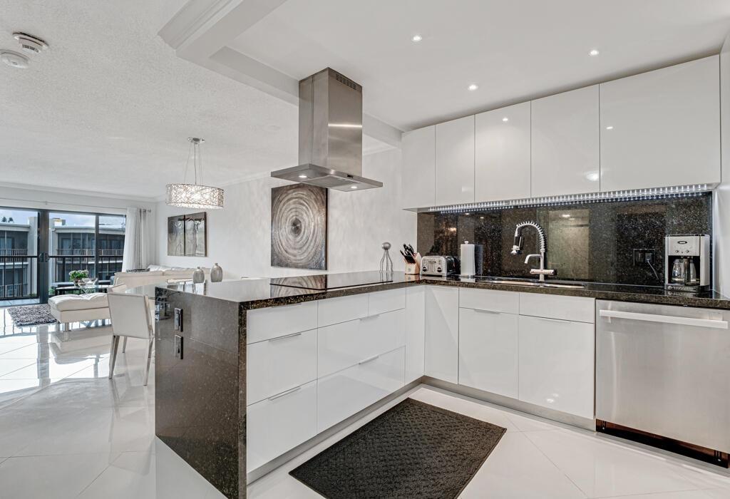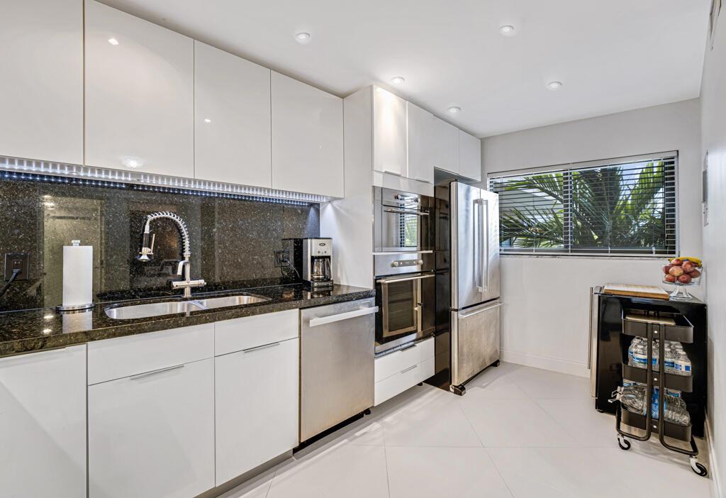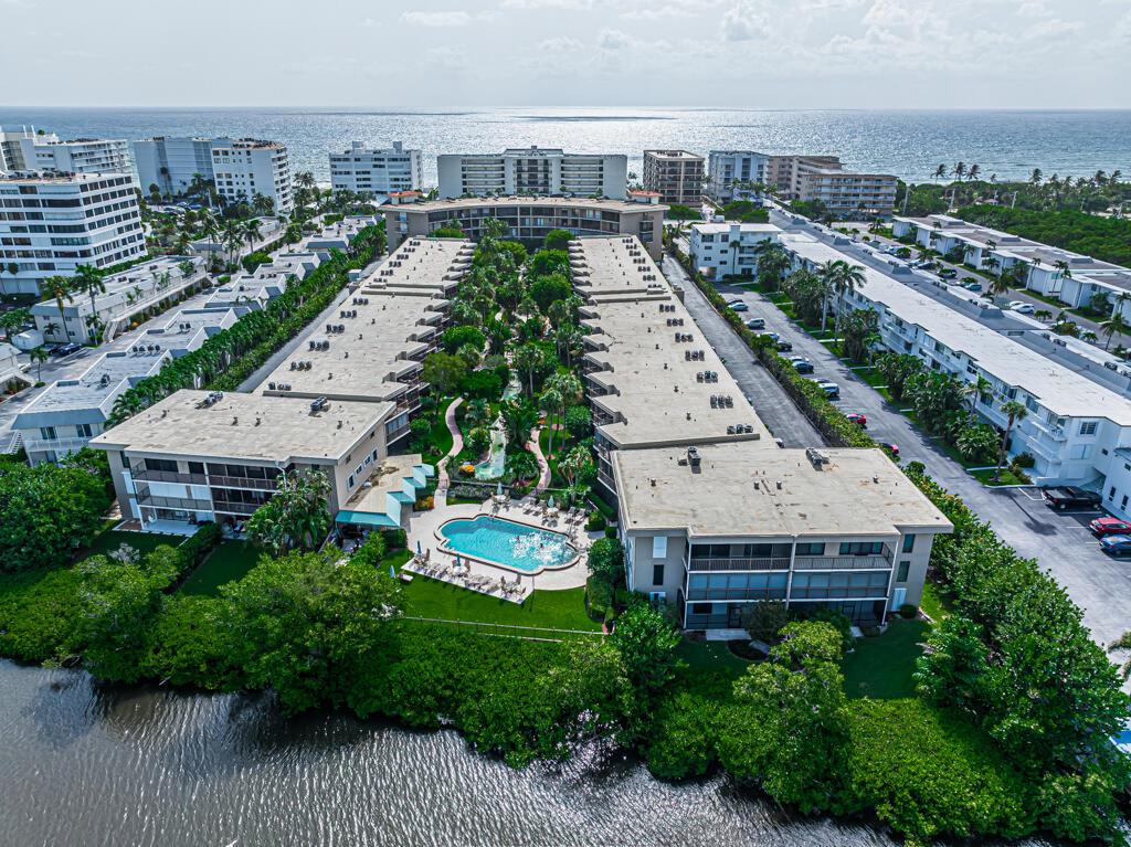 Spectacular, Fully Renovated & Immaculate Unit with Stunning Southern Views! Enjoy breathtaking views of the water, pool, and lush gardens from the expansive screened-in balcony of this beautifully upgraded unit. Completely remodeled in 2023 with high-end finishes, this home features a brand-new AC, impact windows, and elegant diagonal tile flooring. The light, modern kitchen boasts sleek cabinetry, new appliances, a granite backsplash, and a wine cooler. Spacious Scandinavian-inspired bathrooms and a full-size washer and dryer add both style and convenience. A true must-see! This well-maintained Soutgate community offers a serene garden retreat, an Intracoastal-front pool, a sauna, and BBQ area. Enjoy deeded beach access just across the street and shopping and dining close by.