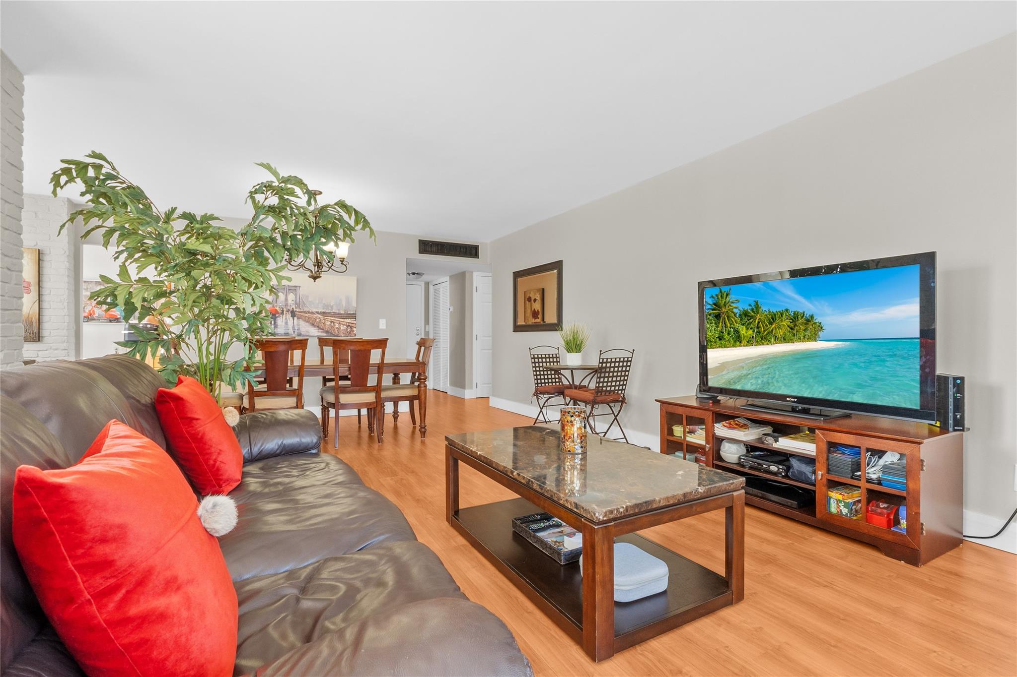 Perfectly positioned across from the beautiful Oceanfront Park and pristine sandy beaches, this spacious 1,500 sq. ft. corner residence embodies coastal living at its finest. With 2 bedrooms and 2 bathrooms, the home offers a bright, open living space enhanced by wood and tile flooring throughout. A wrap-around balcony invites you to relax and enjoy sweeping views, while the renovated kitchen features sleek cabinetry, modern appliances, and central A/C for comfort year-round. Set within a fully renovated community with a new roof and fresh exterior paint, the building has already passed its 50-year inspection—giving you peace of mind for years to come. This is truly the best value in the area—and it’s easy to show. Don’t miss this opportunity to live the beachside lifestyle!