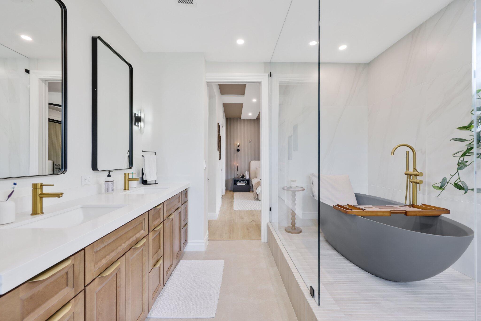 The crown jewel of downtown Delray Beach, this stunning top-floor corner unit in the prestigious luxury building of City Walk is more than a residence, it's a lifestyle. Completely reimagined from the ground up, every detail has been thoughtfully designed to create a light-filled sanctuary that blends modern luxury with zen-inspired sophistication. Raised ceilings, wide-plank blonde hardwood floors, and strategically opened walls provide an airy, open flow, while the concrete construction ensures privacy and peace with no neighbors above.At the heart of the home is a chef's dream kitchen, showcasing custom soft-close slatted cabinetry, a waterfall quartz marble island, and a seamless quartz backsplash that exudes sophistication. Premium appliances, including a built-in ice maker with