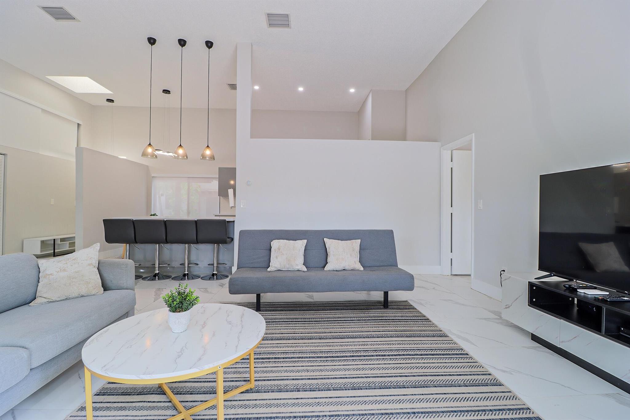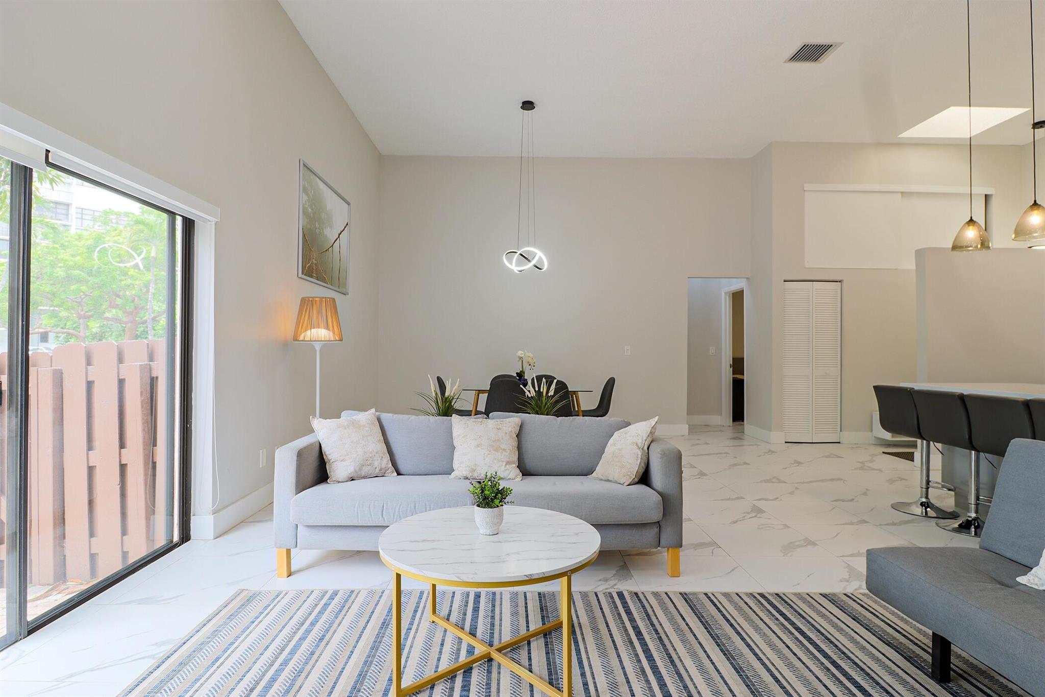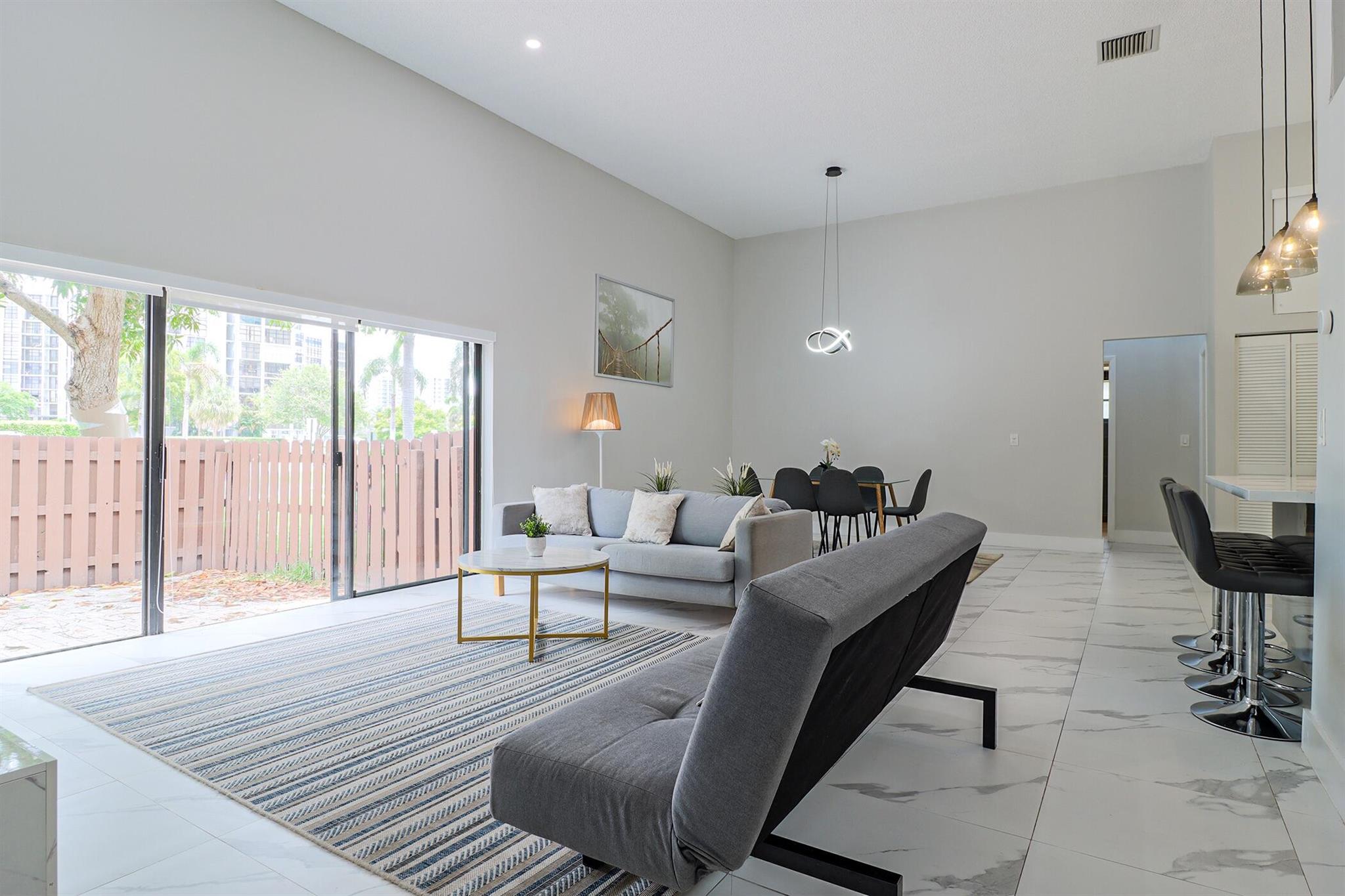 Based in the highly desirable boating community of Harbourwood Villas in Hallandale Beach, this fully renovated 3-bedroom, 2-bath villa blends modern design with coastal lifestyle. Just minutes from the beach, dining, shopping, golf, and Gulfstream Park Casino. It features an open, light-filled layout with sleek ceramic flooring, a stylish new kitchen, updated bathrooms, and all-new appliances. With two parking spaces, a private backyard with a fruit tree, and a charming walkway. The standout feature is a private boat dock and slip for up to a 45-foot vessel in the community marina, offering direct access to the Intracoastal and ocean. Offered fully furnished for turnkey convenience, with water and internet included in the HOA. This is effortless, upscale living by the water. Negotiable!