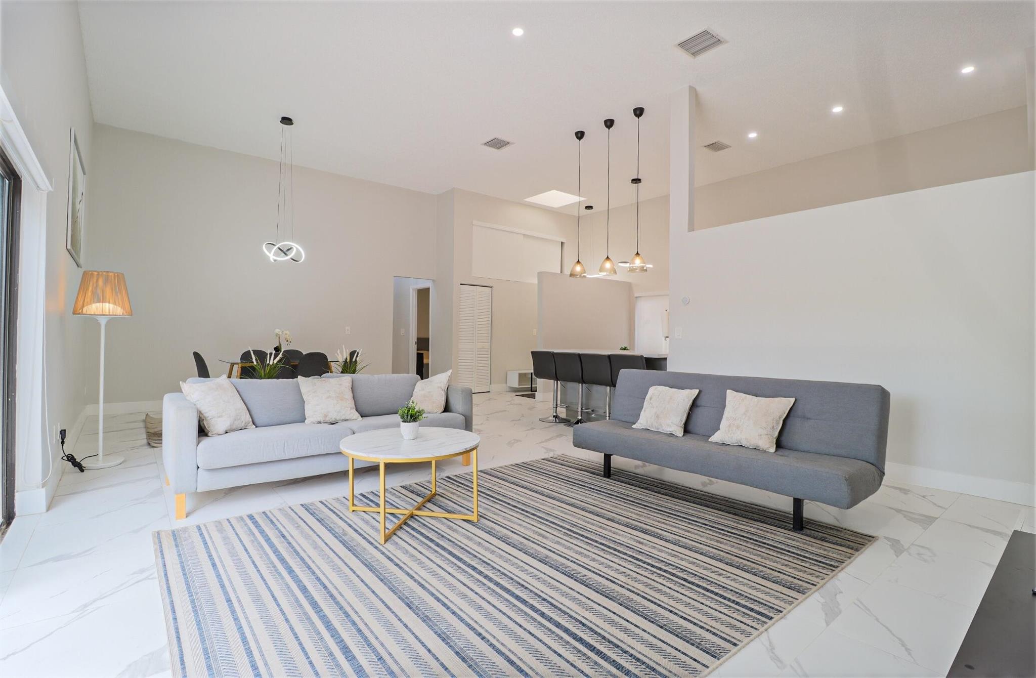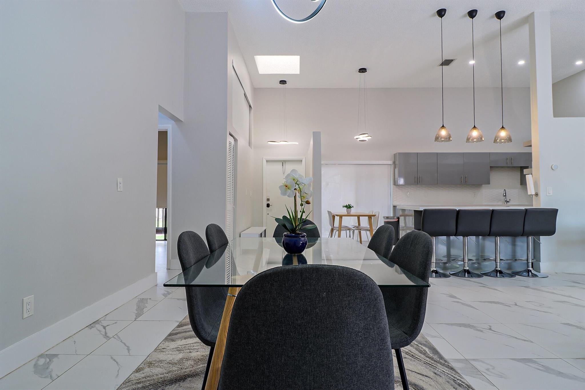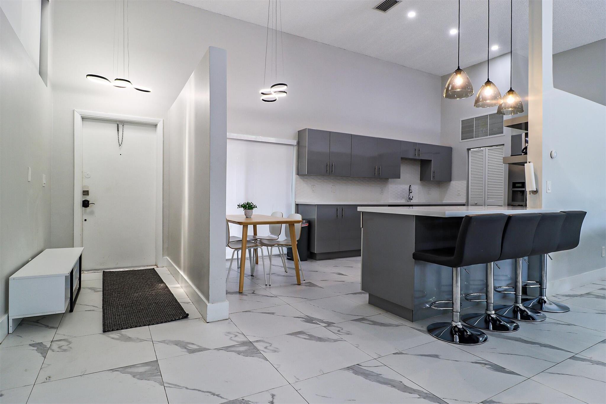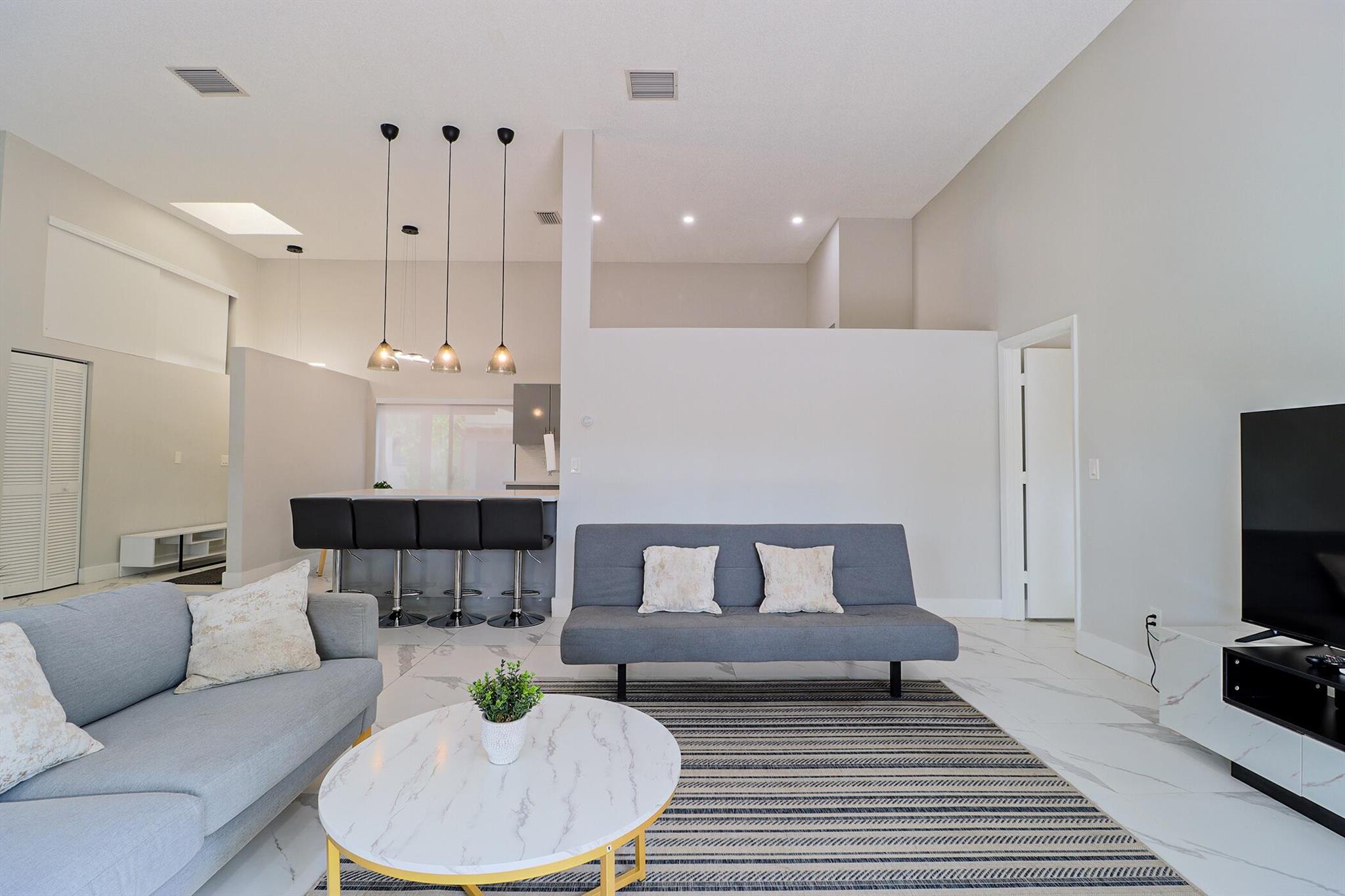 Based in the highly desirable boating community of Harbourwood Villas in Hallandale Beach, this fully renovated 3-bedroom, 2-bath villa blends modern design with coastal lifestyle. Just minutes from the beach, dining, shopping, golf, and Gulfstream Park Casino. It features an open, light-filled layout with sleek ceramic flooring, a stylish new kitchen, updated bathrooms, and all-new appliances. With two parking spaces, a private backyard with a fruit tree, and a charming walkway. The standout feature is a private boat dock and slip for up to a 45-foot vessel in the community marina, offering direct access to the Intracoastal and ocean. Offered fully furnished for turnkey convenience, with water and internet included in the HOA. This is effortless, upscale living by the water. Negotiable!