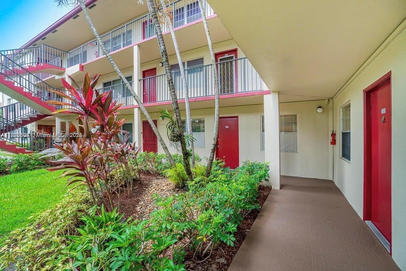 Corner Beautiful Remodeled Ground Floor Unit at New Hampton in Century Village, Large 2 bedrooms, NEW bathrooms, Large Kitchen, Large Walk-In-Closets, NEW AC, Patio overlooking Pool and Garden. Community with wonderful amenities, clubhouse, gym, pool and more. Close to the mall, restaurants, hospitals and I-75. **Investors the unit has NO Rental Restrictions! Great investment opportunity! **