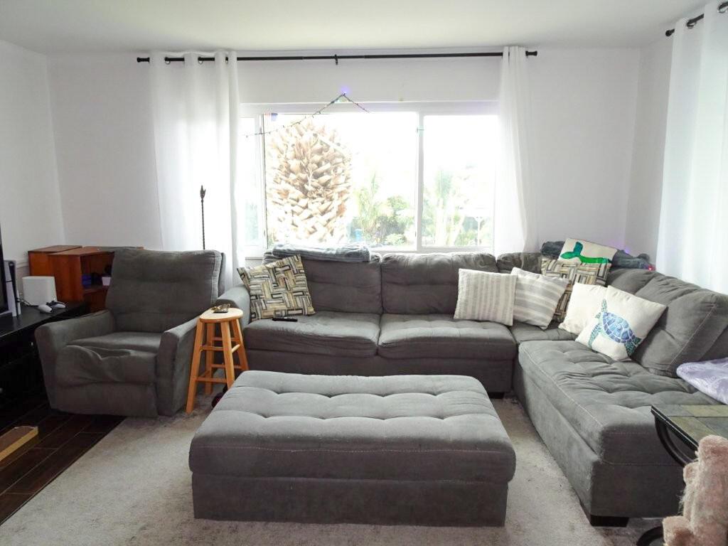 Desirable 2/1.5 top floor corner unit in quaint 2-story building. Brick wall in kitchen provides old world charm. Pass thru to living/ dining for easy entertainment. Primary bed has walk-in closet with all-in-one washer/ dryer. Convenient half bath for guests. Wood look tile throughout. Brand new HVAC. New roof 2024. Assessment paid in full. Southeast Park Condo is ideally situated in the center of all the action. Walk to Ocean Ave and bike to beach.