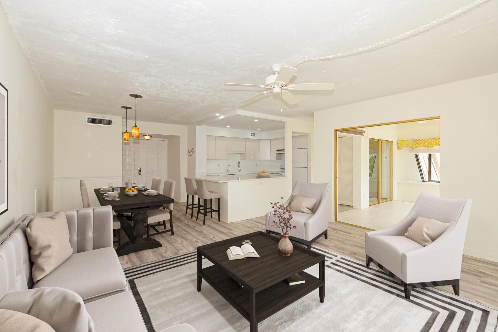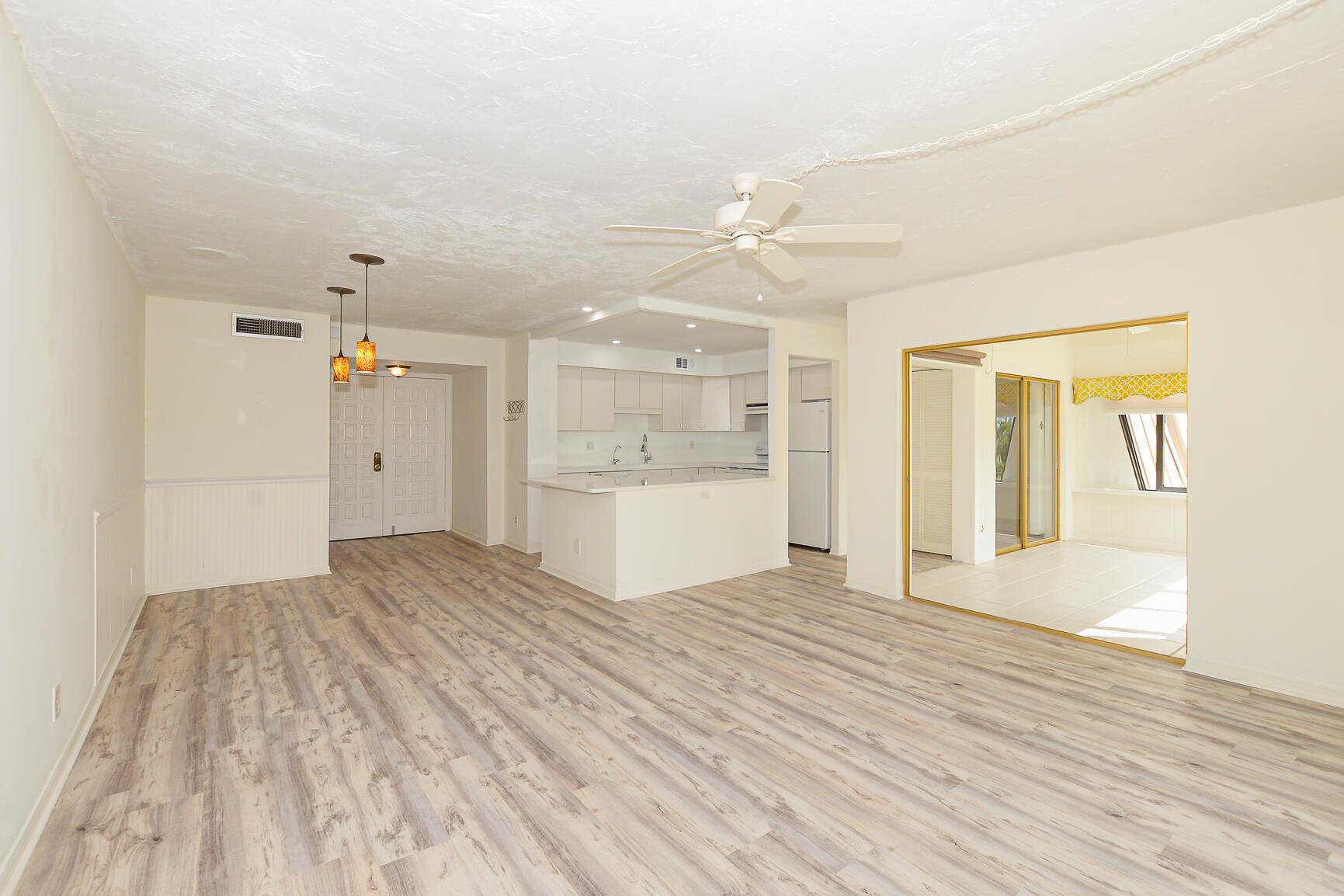 Location, location - Conquistador is a sought after adult condominum community nestled in the prestigious area of Stuart. This 3rd floor unit gets you golf views you can't get from the 1st or 2nd floor. It's added value! The elevator makes it easy. Partially renovated unit with new floor in main living area. Kitchen with LED lights, and quartz island countertop, was opened up to allow an open floor plan and view of the golf course. Virtual Staging Photography has been used. The community has a clubhouse, pool, tennis, pickleball, and shuffleboard. Enjoy fishing off the dock. Close to downtown Stuart, with the best restaurants and quaint shops. Beaches are less than a mile away. Cleveland Clinic Hospital and all the doctors and their specialies are minutes away