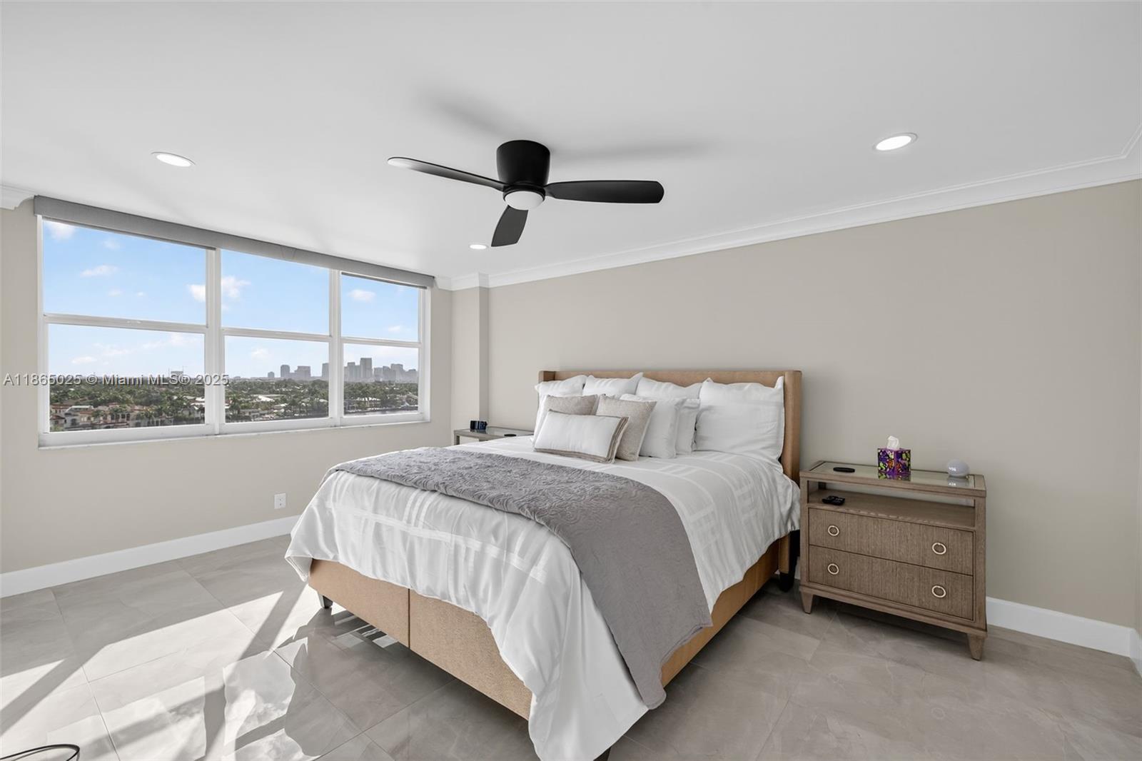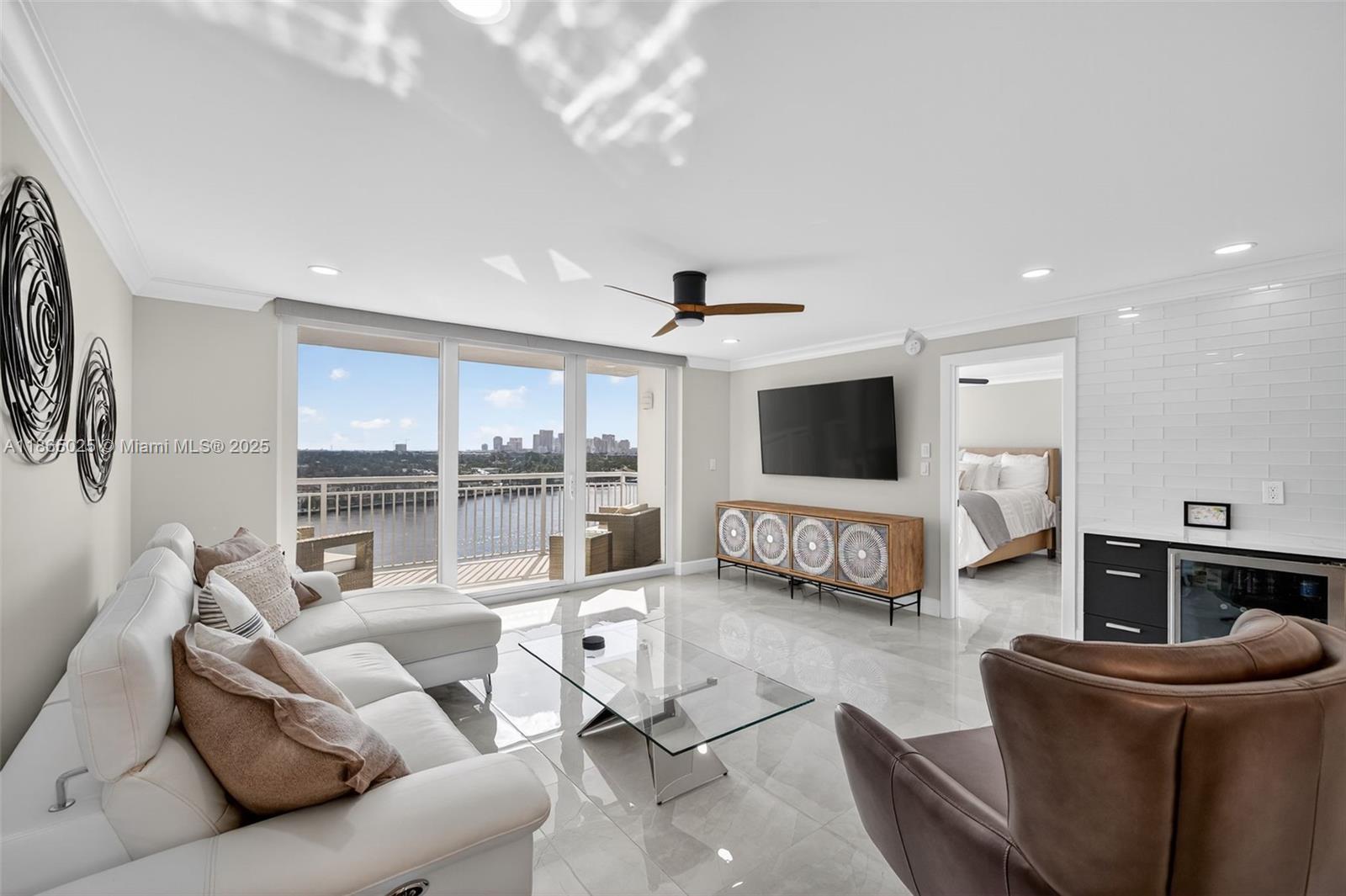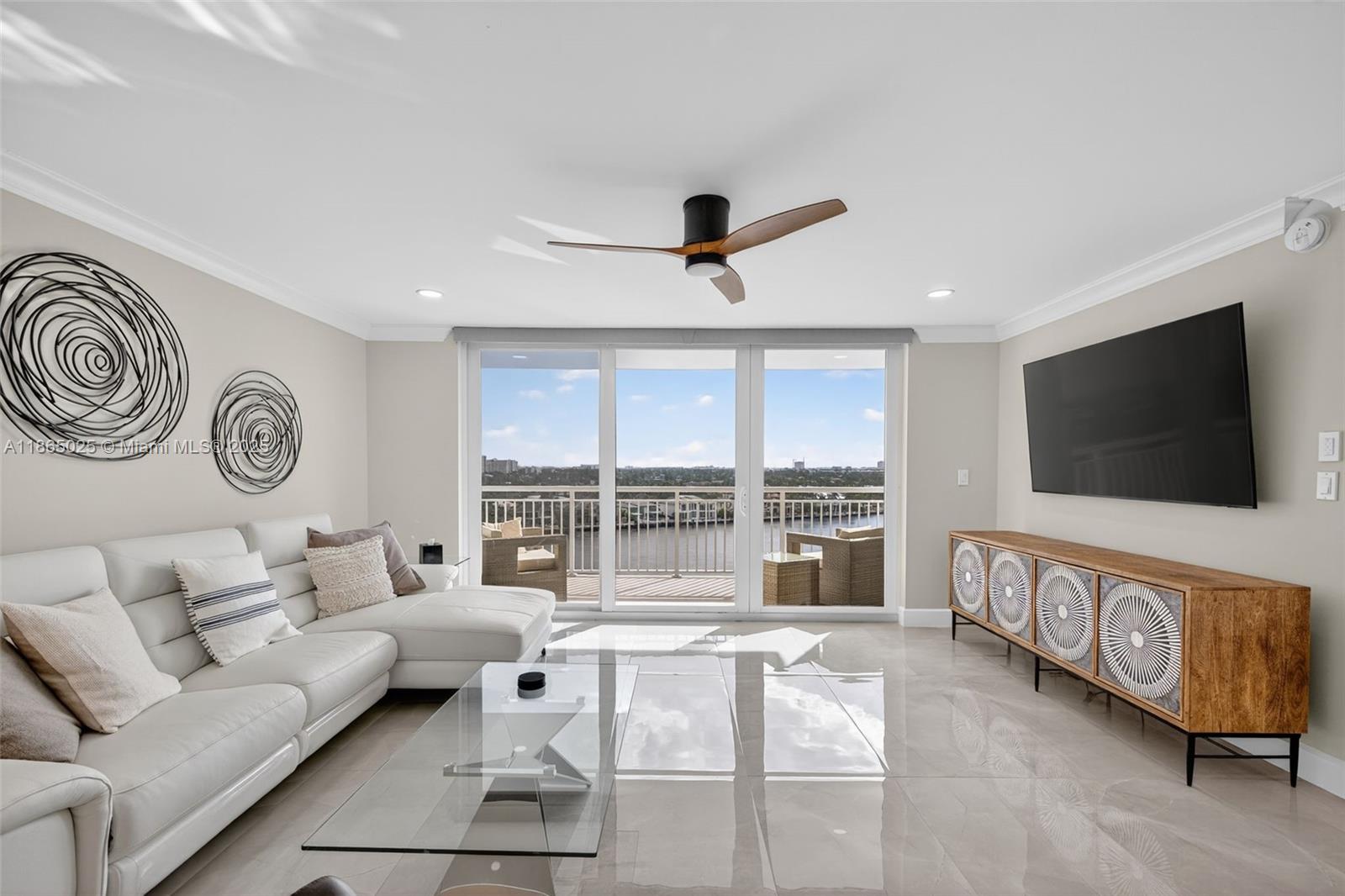 Beautifully updated 2/2 on the Intracoastal in the heart of Central Fort Lauderdale Beach. Open-concept living area w/ neutral porcelain floors, impact windows & beautiful light. 2022 kitchen renovation w/ stainless appliances, quartz counters, Fisher & Paykal drawer dishwasher, wet bar w/ wine cooler & gorgeous cabinets w/sweeping 10th-floor waterfront views. Both bathrooms updated in '22 w/ high-end finishes & barn door in primary. New electric, flat ceilings, crown molding, Miele washer/dryer & LED lights. Building passed 50-year recert, w/ HOA covering reserves, insurance & water. Amenities: gym, heated pool, 2 community rms, secure covered parking for 1 car (& 1 extra spot outside ok) & common areas. View sunsets from the Rooftop Deck or stroll to the beach, dining & Birch State Park.