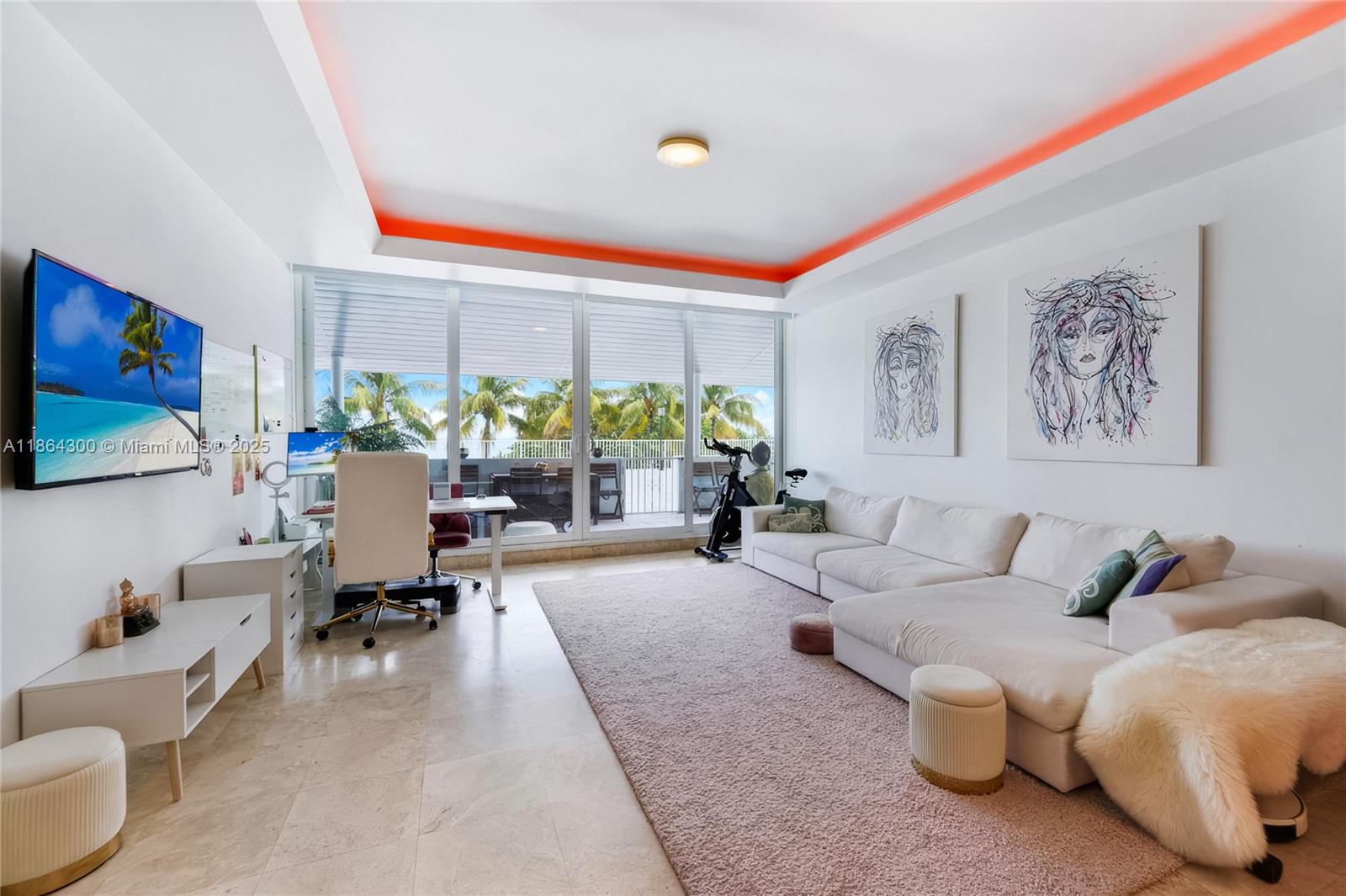 Rare oceanfront lanai at The Pavilion, Miami Beach. Seller uses it as a 2-bedroom, Oversized 1BR+den/2BA, 1,335 SF with private terrace and direct beach walk access. Renovated: quartz kitchen, brass fixtures, marble floors. Den functions as 2nd bedroom/office. Washer/dryer, storage room. Full-service building: pool, gym, 24/7 security, valet. 1 assigned parking. Minimum 1-month rentals. Pet-friendly. Prime Mid-Beach location near Faena, Edition, Soho House