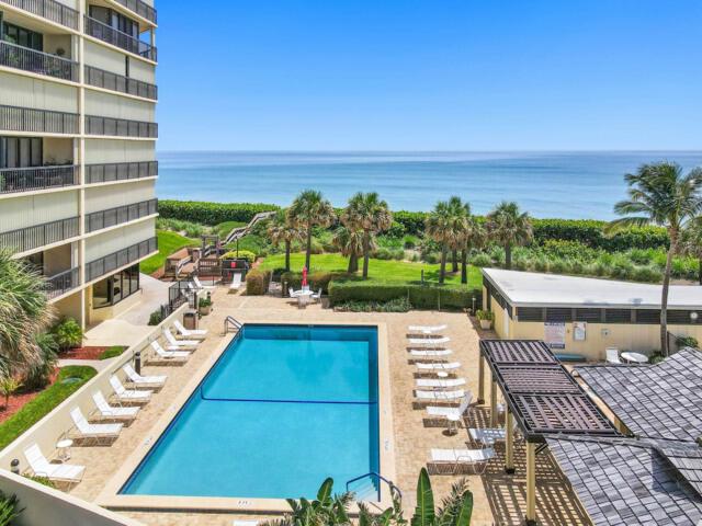 ISLANDIA II ON HUTCHINSON ISLAND - Beautiful condominium on the 4th floor overlooking Ocean and Pool. Features include: replaced AC system (August 2025), repainted (September 2025), replaced water heater (2023), replaced garbage disposal (2023), replaced kitchen faucet (2023), replaced accordion shutters (2019), replaced pipes in both bathrooms, textured ceilings and so much more! Community amenities include: guard at gate, social room with kitchen, billiards, fitness room, sauna, pool, pickleball/tennis, golf practice area, bike storage, storage of first floor, BBQ grills, dune walk with secure beach access, car wash and boat trailer/RV parking. One pet up to 30lbs allowed and building allows rentals of 3 month minimum, two times per year. MIRS and SIRS have both been completed.