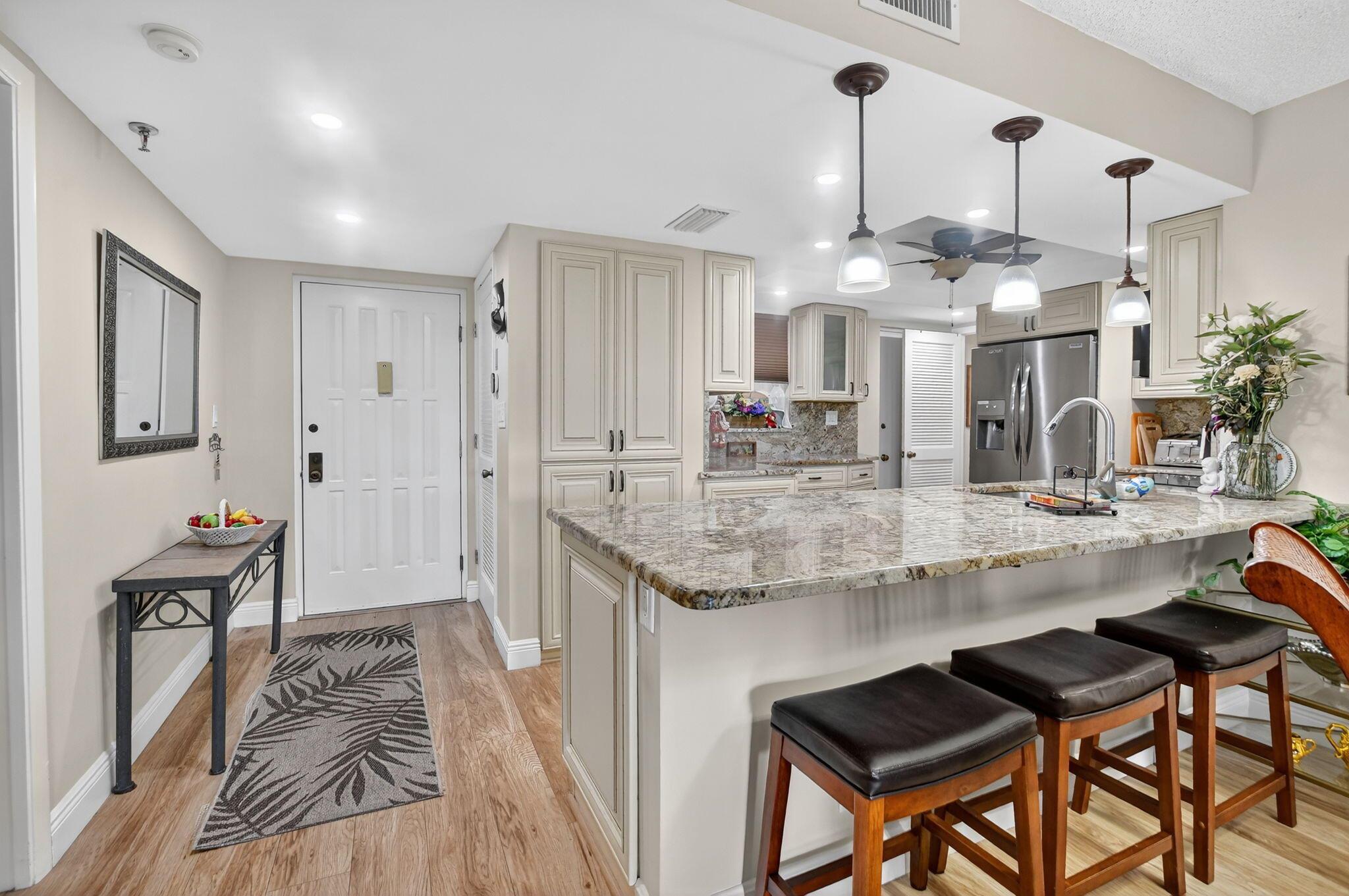 A East Boca Gem. A Beautiful, renovated unit that is move-in ready. The custom designed kitchen was designed with attention to every detail. Very large split bedroom plan with 2 full bathrooms. The area is one of the most desirable, Only 1 mile from beach, East of 95 off Yamato Road exit. The unit is facing East on the new proposed Boca Raton parks & recreational area . Beautiful extra large heated swimming pool, tennis courts, pickleball ,barbecue area and a club house for parties or events. This is a must see! Bike to beach ,location 5 min to Mizner Park and to Delray's Atlantic Ave, location is great!! close to all shopping and night life, and to all top rated schools and restaurant's. you will love this upgraded place to call home. Great location. beautiful Lobby & elevator