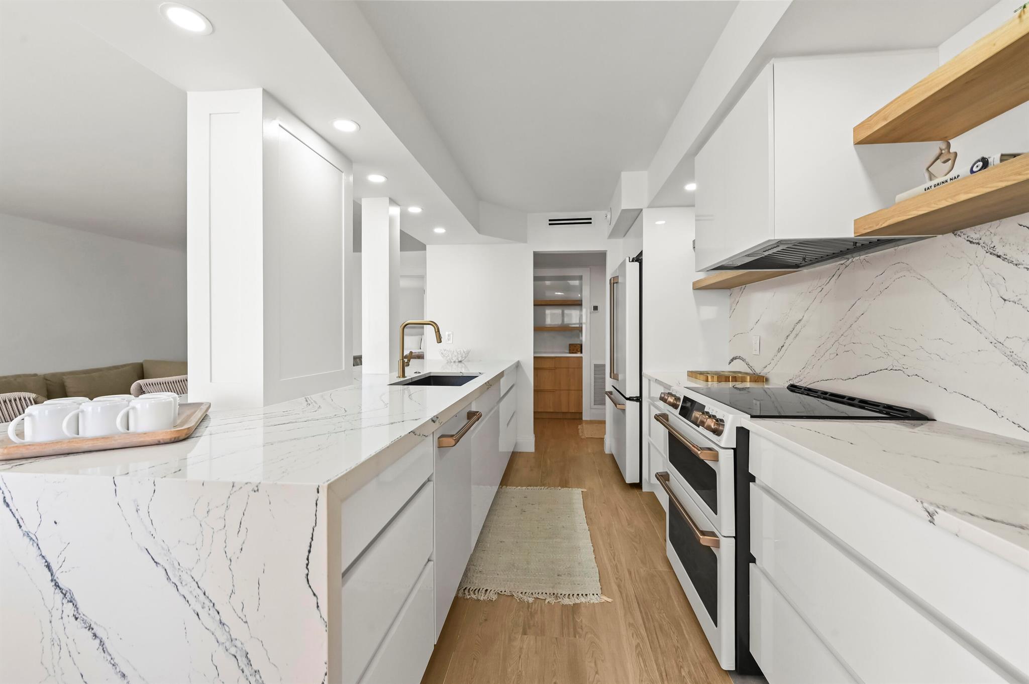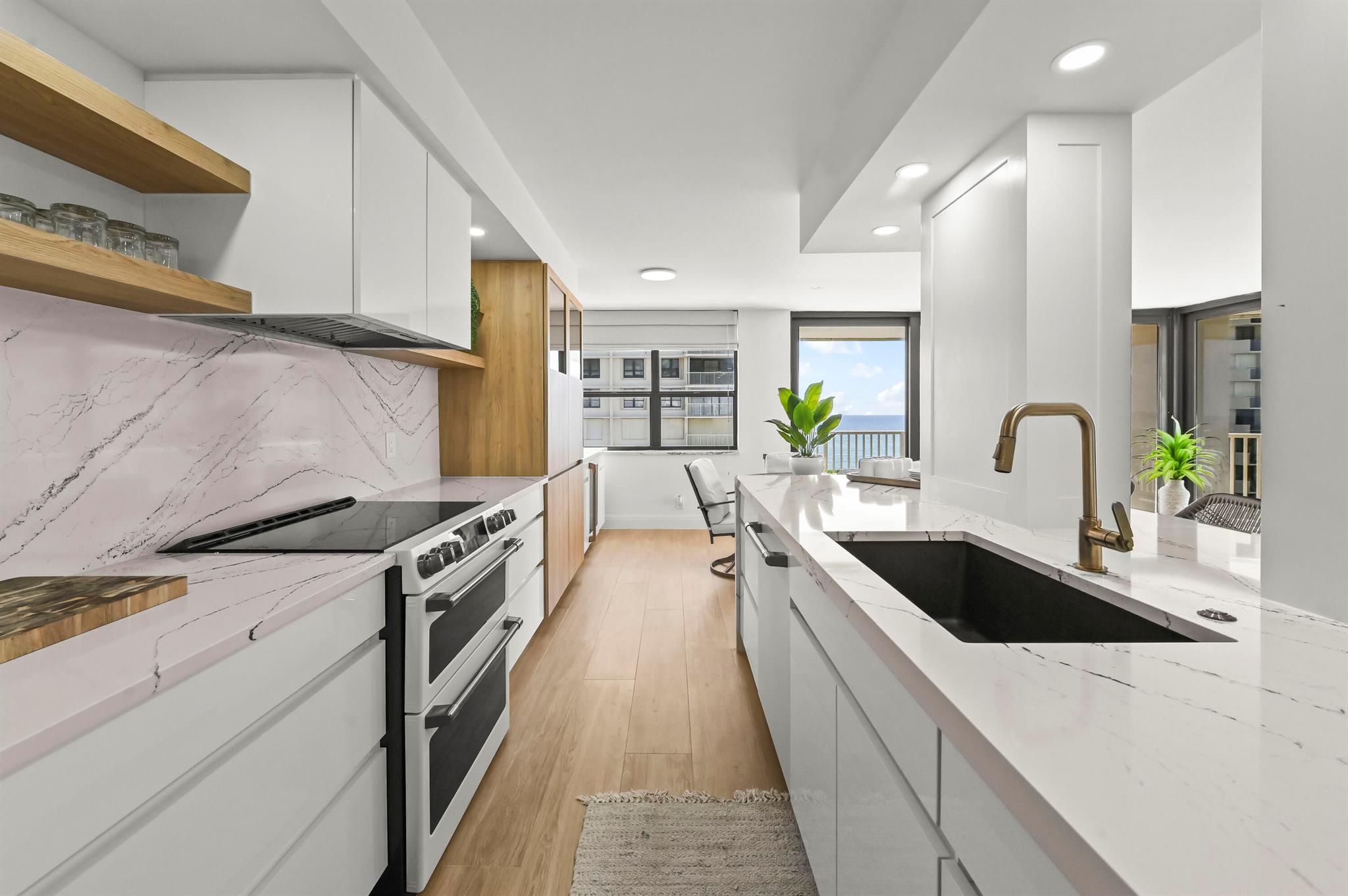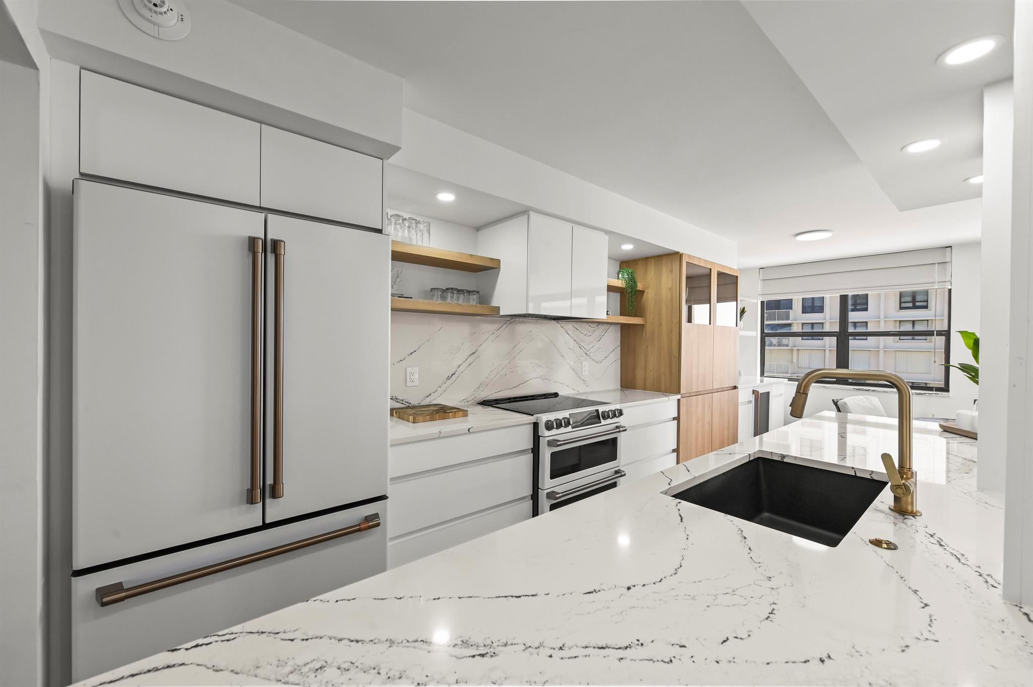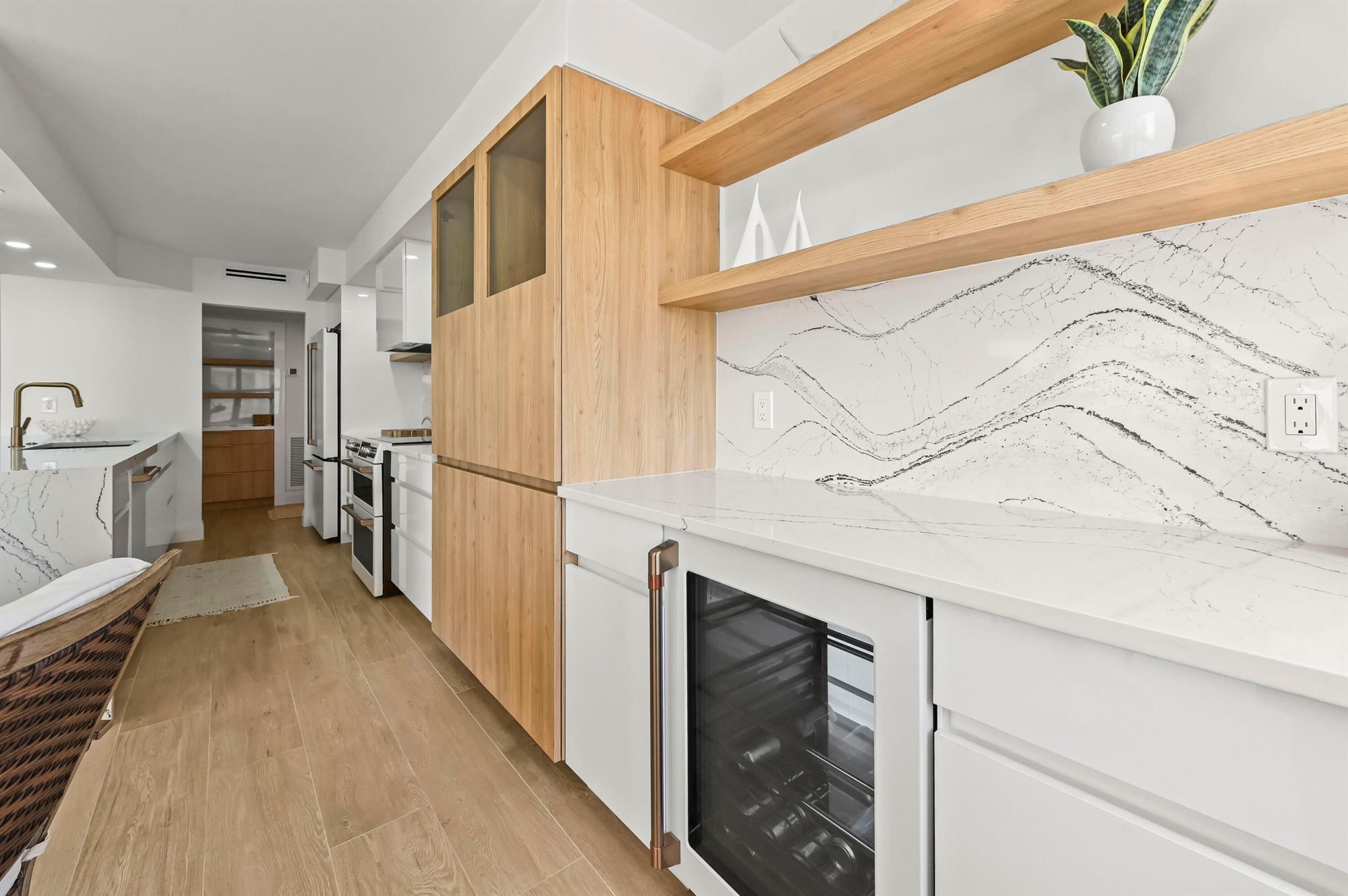 NO SPECIAL ASSESSMENTS ON UNIT!!! Step into a world of high-end, state-of-the-art luxury with this exquisitely detailed two-bedroom, two-bath condo. The minute you walk in, you'll be captivated by the seamless fusion of design and function. The elegant Italian wood-look tile flooring sets a sophisticated tone, beautifully complemented by a custom millwork throughout. Every fixture speaks of quality, with highly upgraded Brizo and Riobel faucets and plumbing fixtures that add a touch of modern elegance.