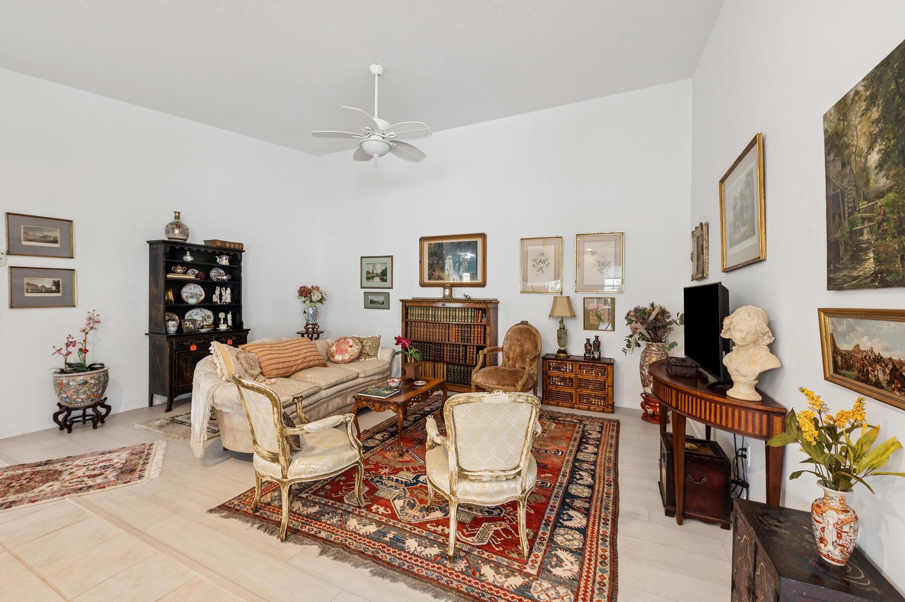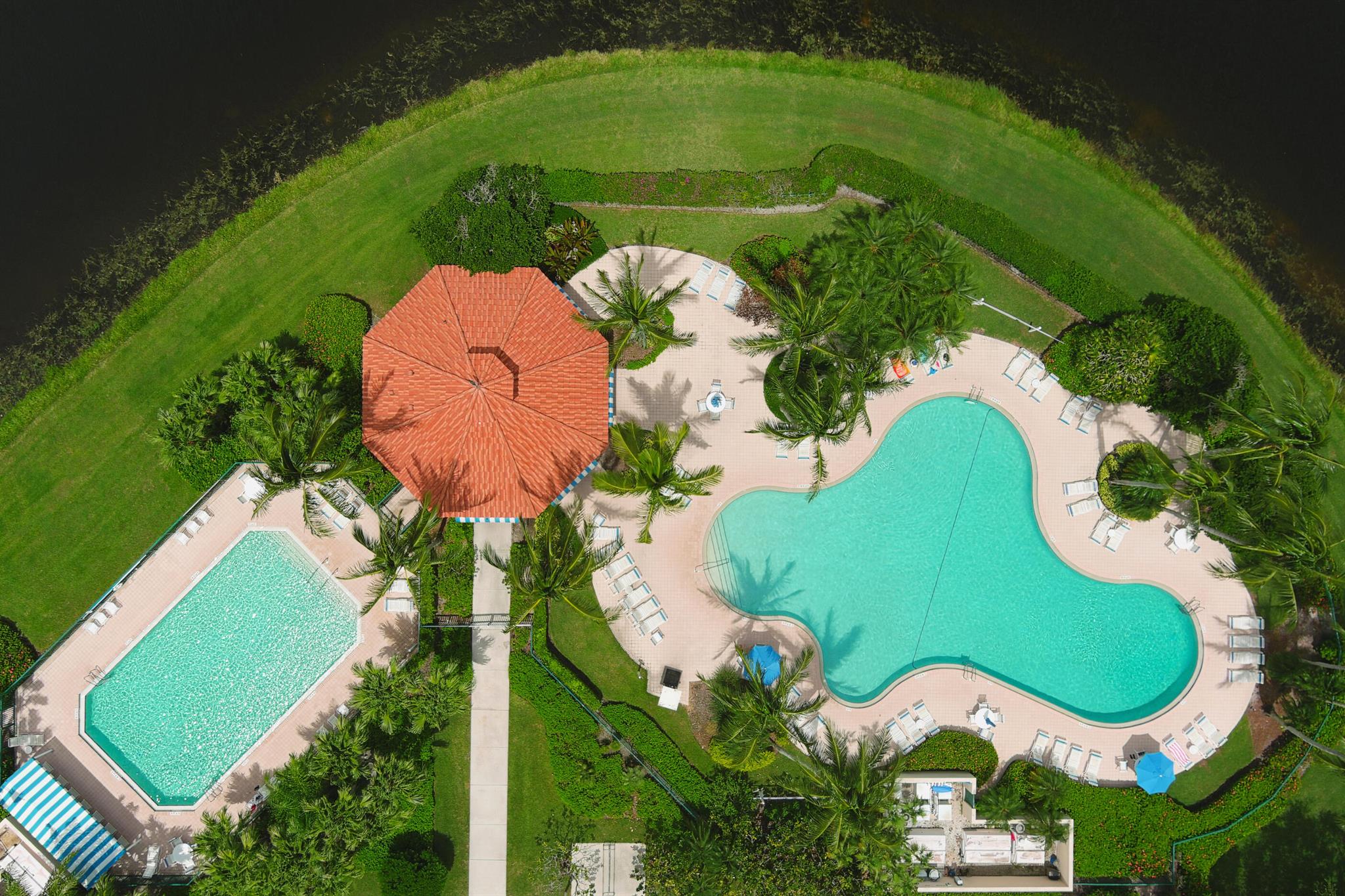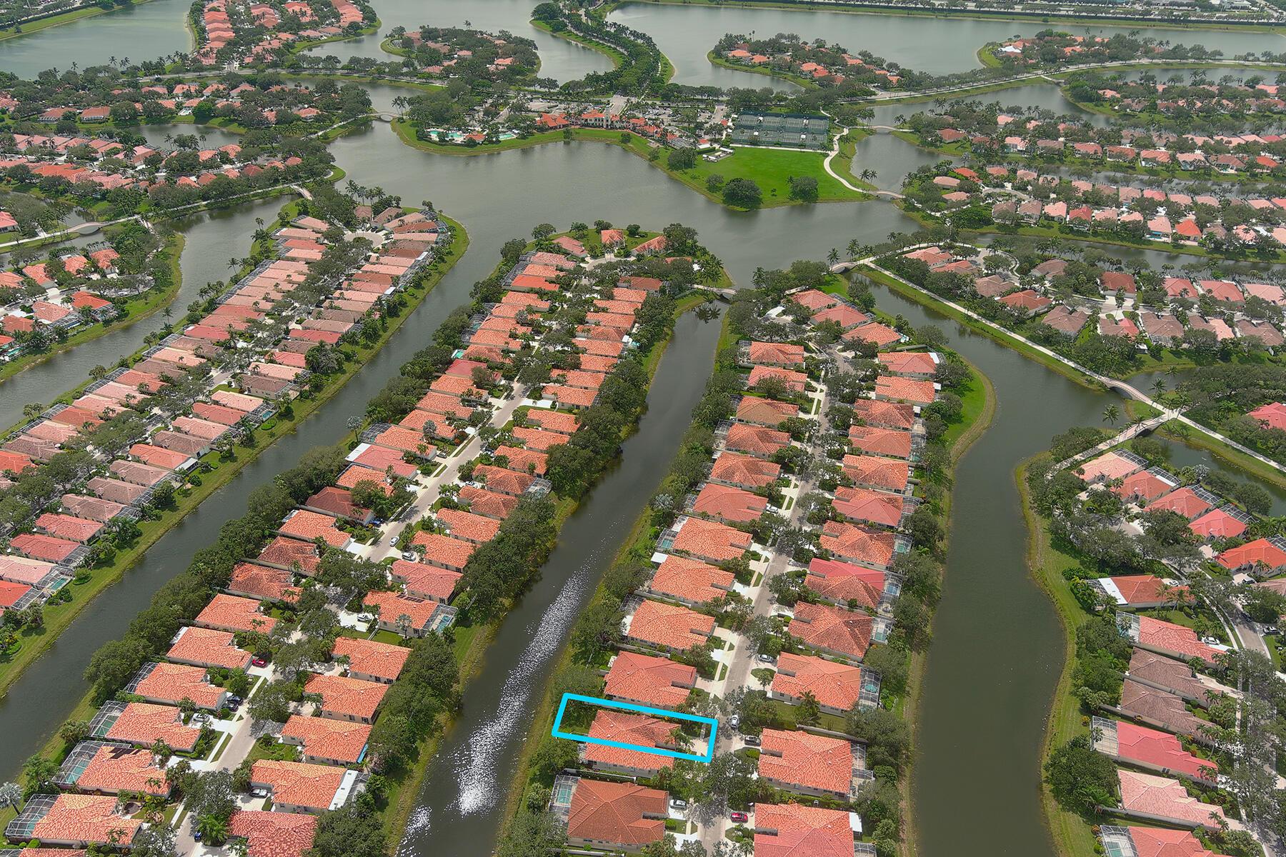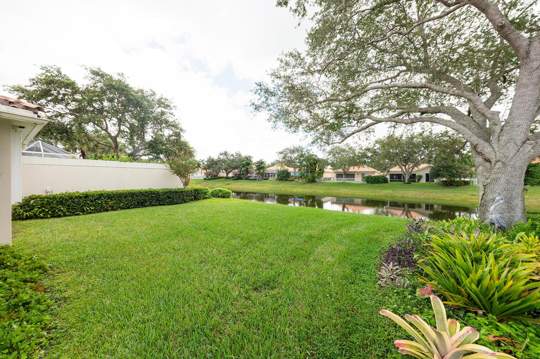 A Wide, Tropically Landscaped, Lakeside, Lot with Views of the Azure Blue Lake, is Just One of the Attributes that makes this Capri, Truly Unique! In RiverWalk, A 24 Hour Manned Gated Community in One of the Best Locations in Palm Beach County, 15-20 minutes to Everything including Palm Beach, the Ocean & Airport! This is Only the Beginning! The Lush & Inviting Entry Courtyard leads to the Foyer with a Charming Fixture & a Gleaming White Ceramic Tile Floor, that Opens to the Great Room with a Newer Faux Bleached Wood Floor & a Newer Ceiling Fan! The Ceramic Tile Kitchen, the Hub for Everyday Living & Casual Entertaining has Stunning Quartz Countertops, Ceramic Tile Backsplashes, All of the Appliances including a Newer Frigidaire Refrigerator, GE Ceramic Top Range, Dishwasher & Microwave