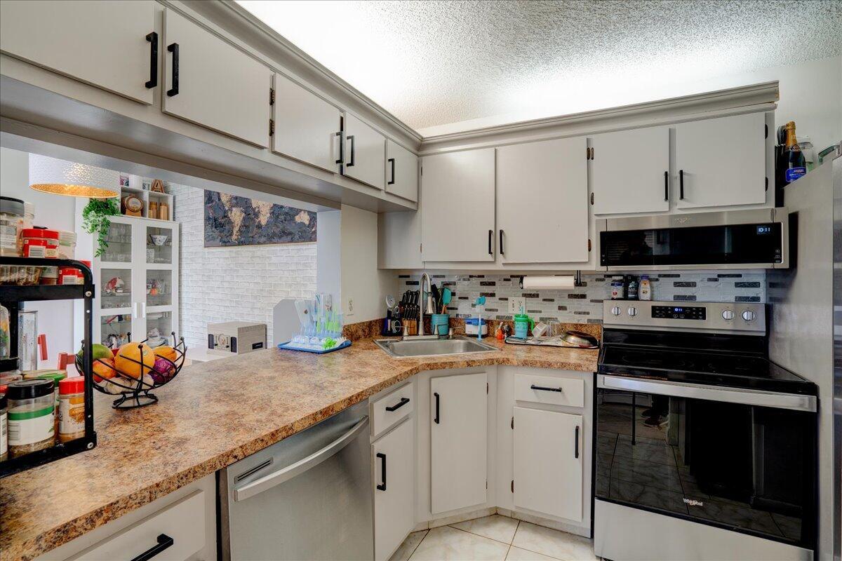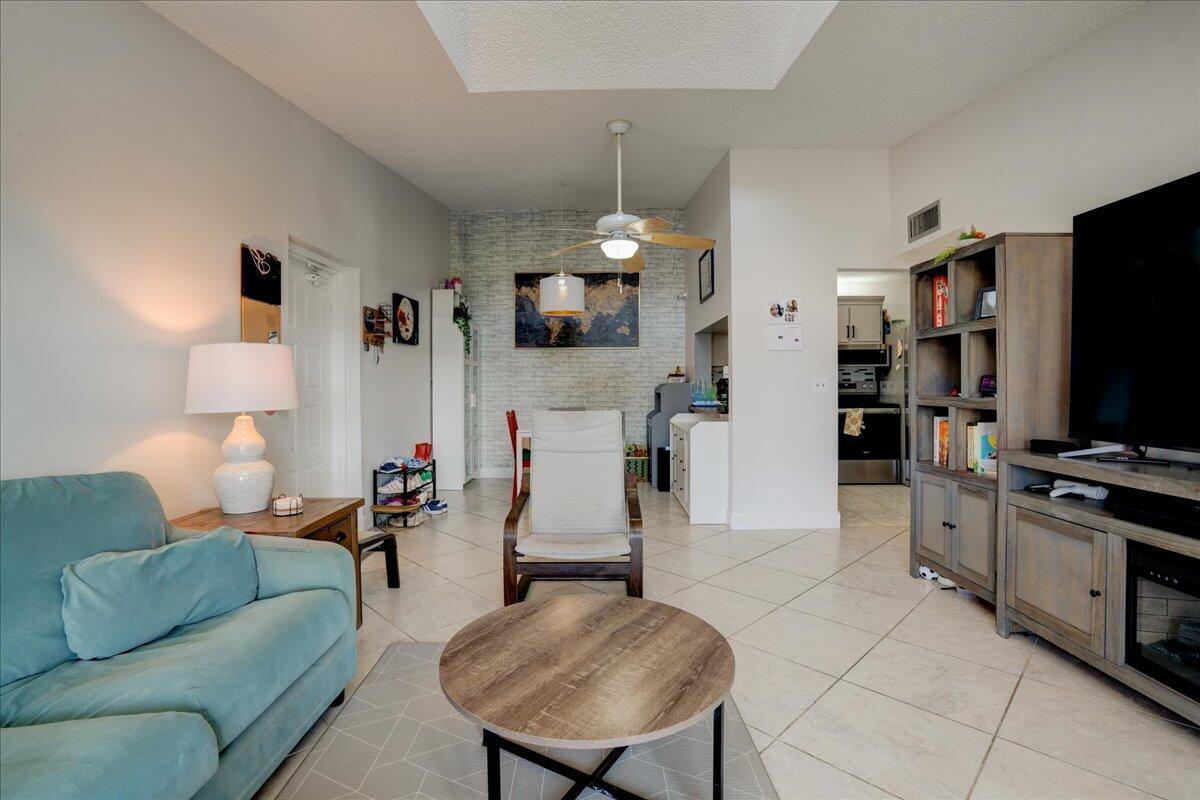 Lovely 2 bed/2 bath condo, located on the 3rd floor with vaulted ceiling, lots of natural bright lighting, tile throughout, and stunning views of the serene lake with fountain in an all age community. AC 2023, Kitchen Appliances 2022, Water Heater 2019, roof 2023. This gated community has a fenced in pool, clubhouse, tennis/pickle ball court, and tons of guest parking. (1) assigned parking space and guest spaces available. No Lease first 2 years. Great central location close to I95, turnpike, outlet mall, downtown, and the beach. Monthly HOA fee includes basic cable, internet, and water.